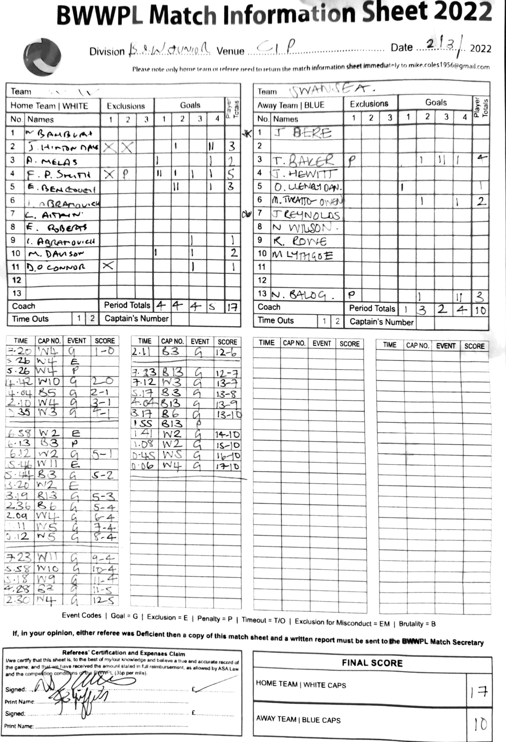 • 2021 BWWPL 27/28 Nov Tournament
