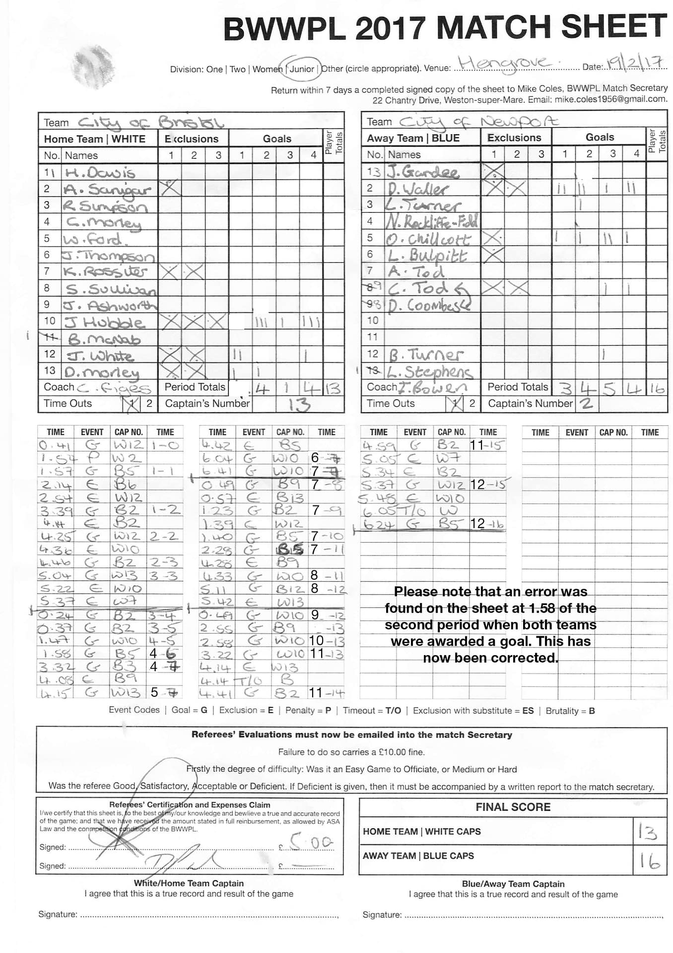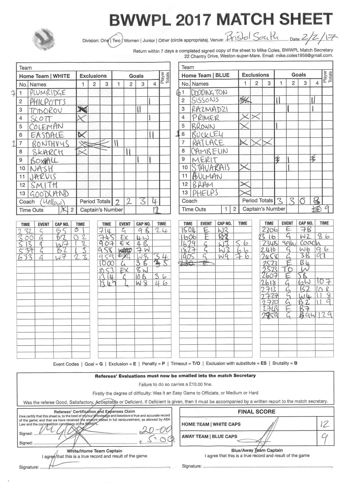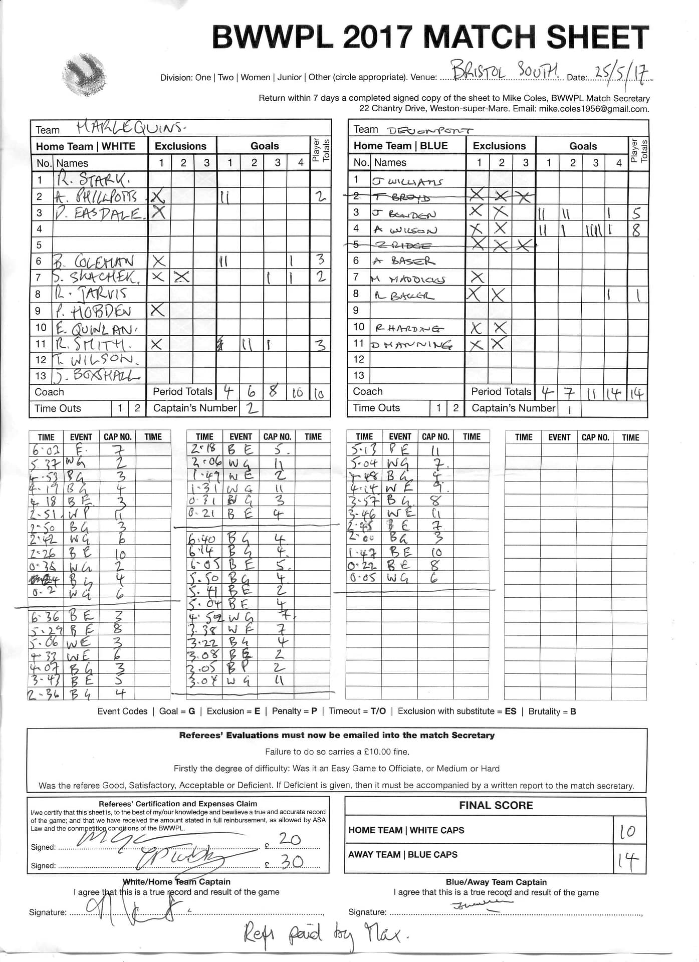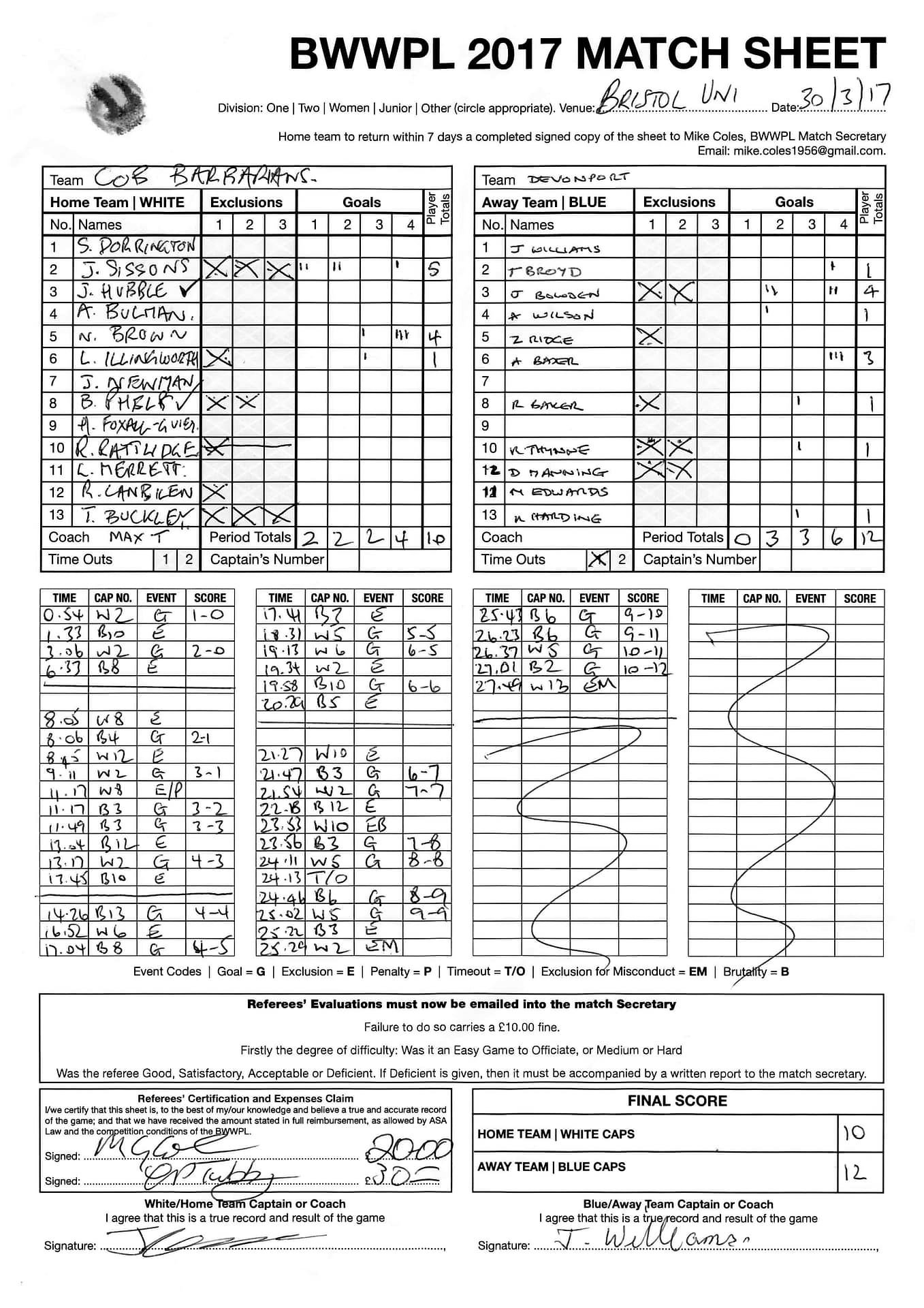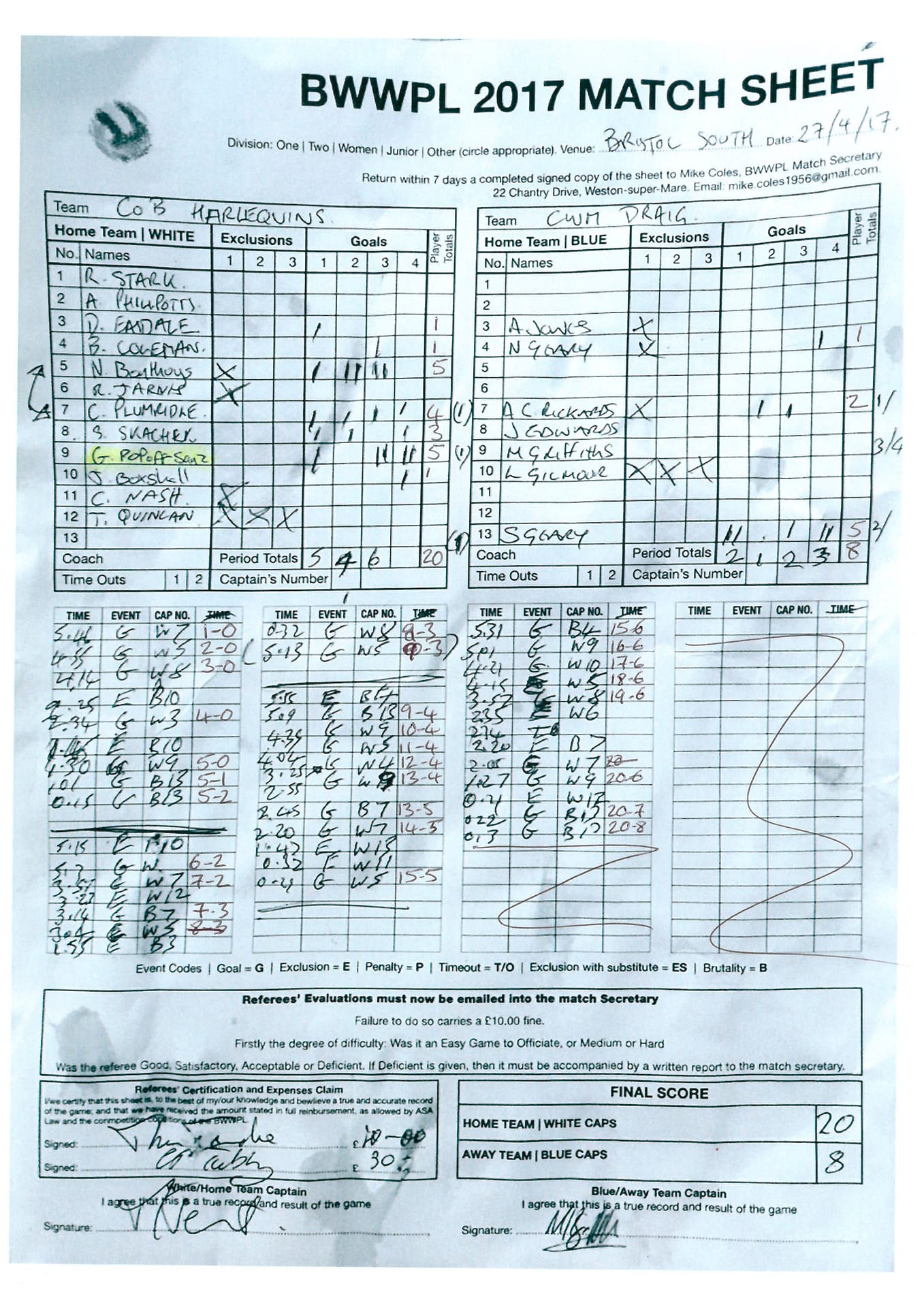 Devonport postponed for the second time away to City of Bristol, therefore points and 2-0 win to City of Bristol