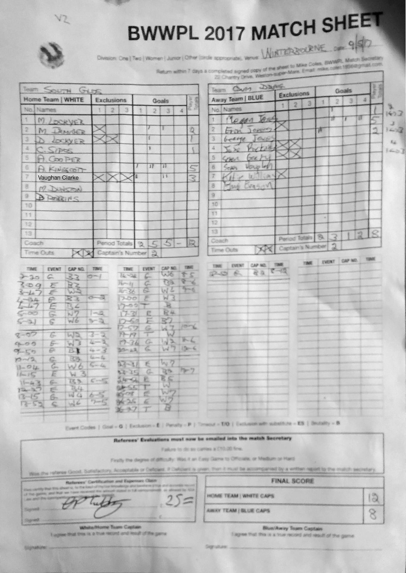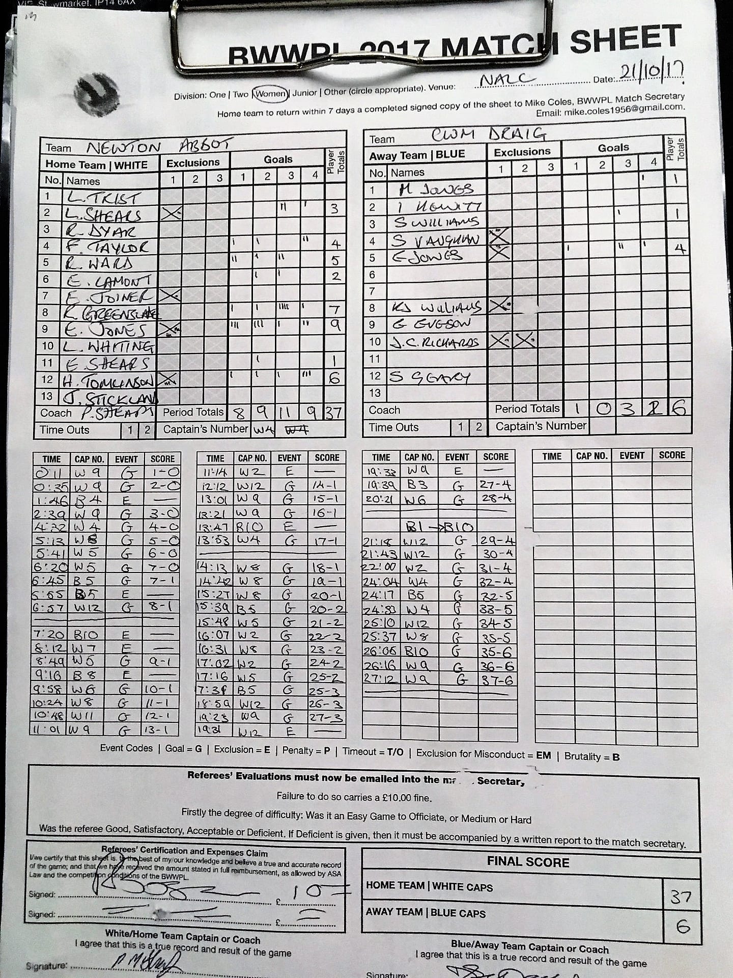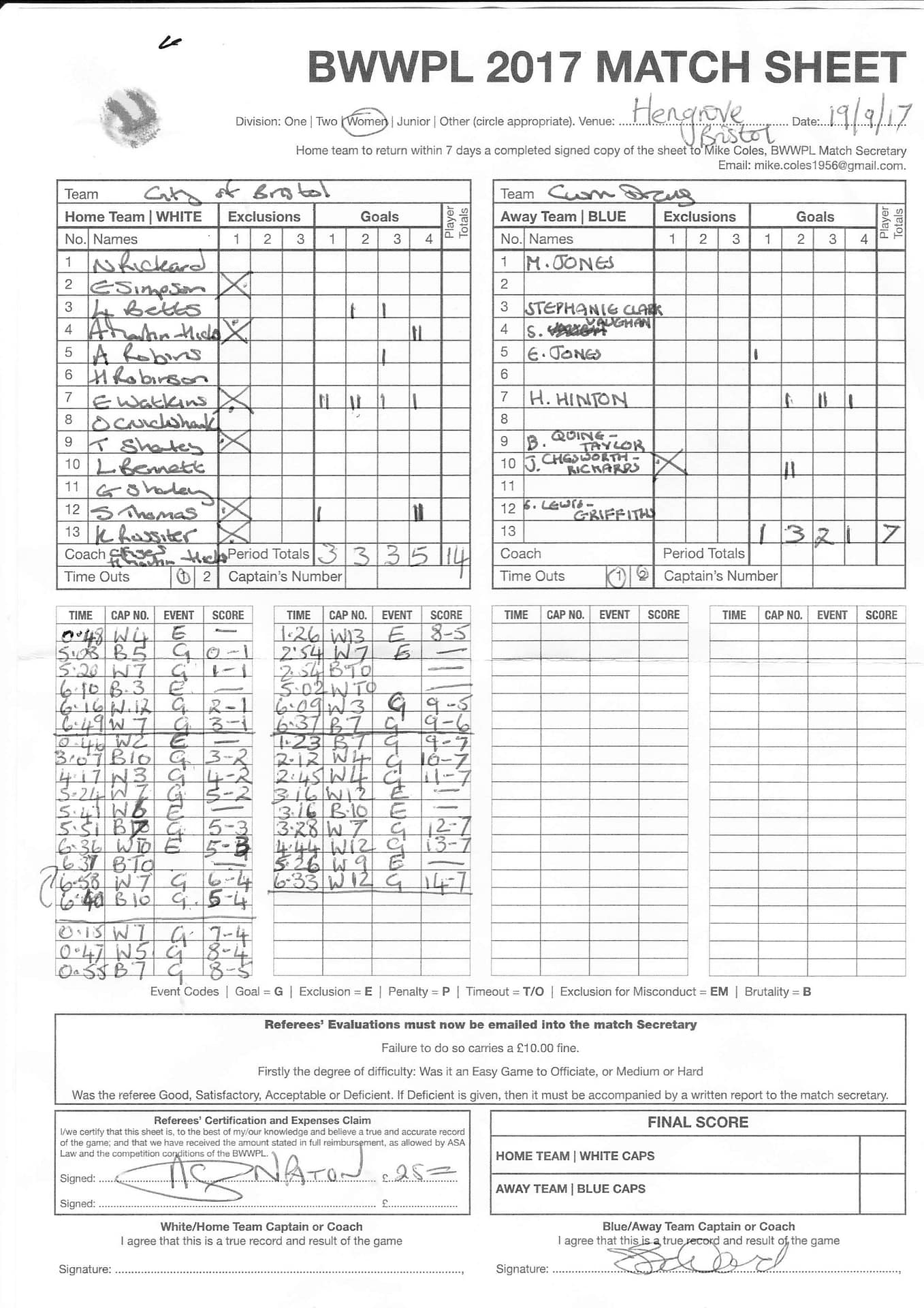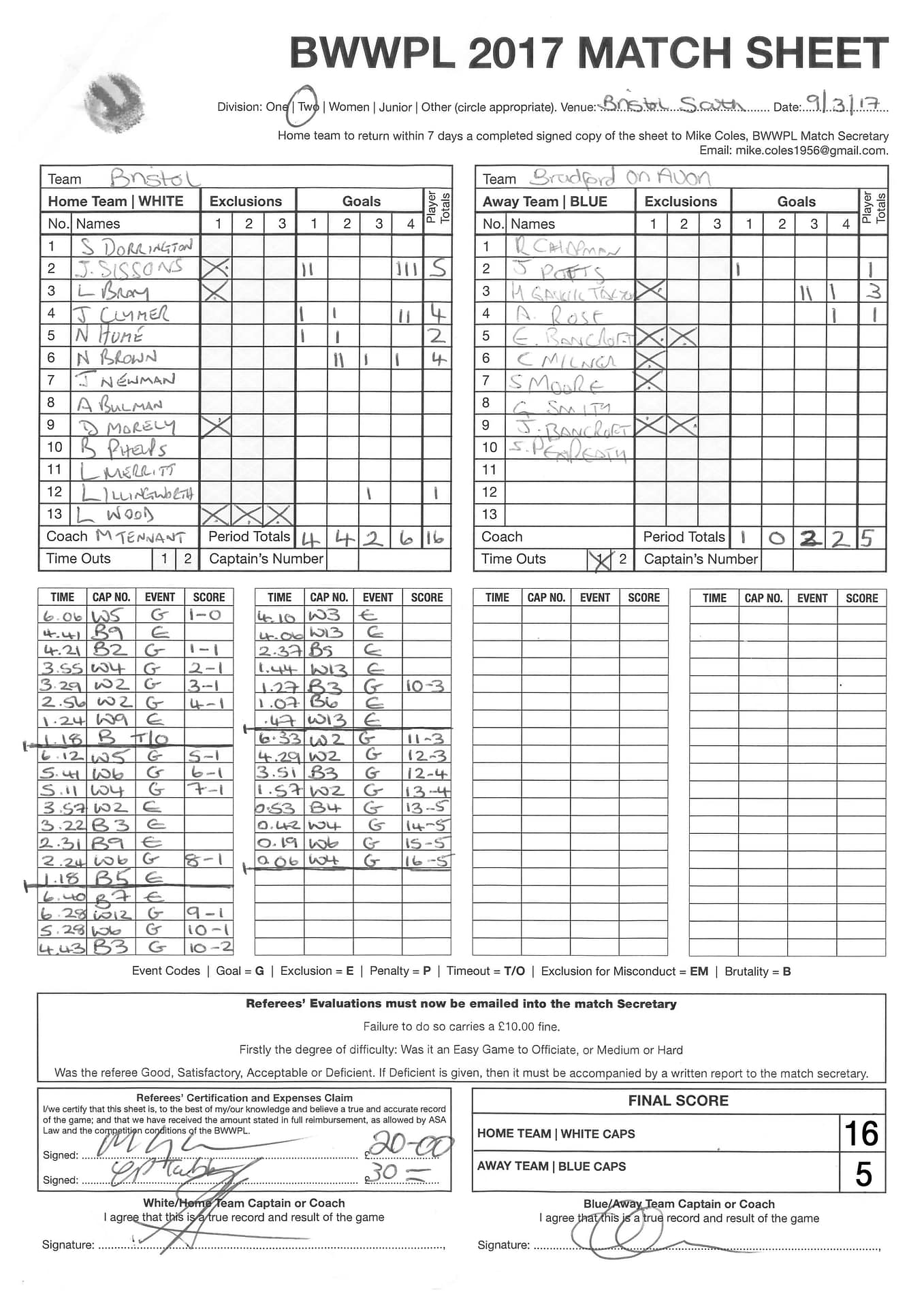 *Newton Abbot played an unregistered player during the fixture Newton Abbot v City of Bristol, 8th September 2017. Newton Abbot fined £10 but the score remains the same.