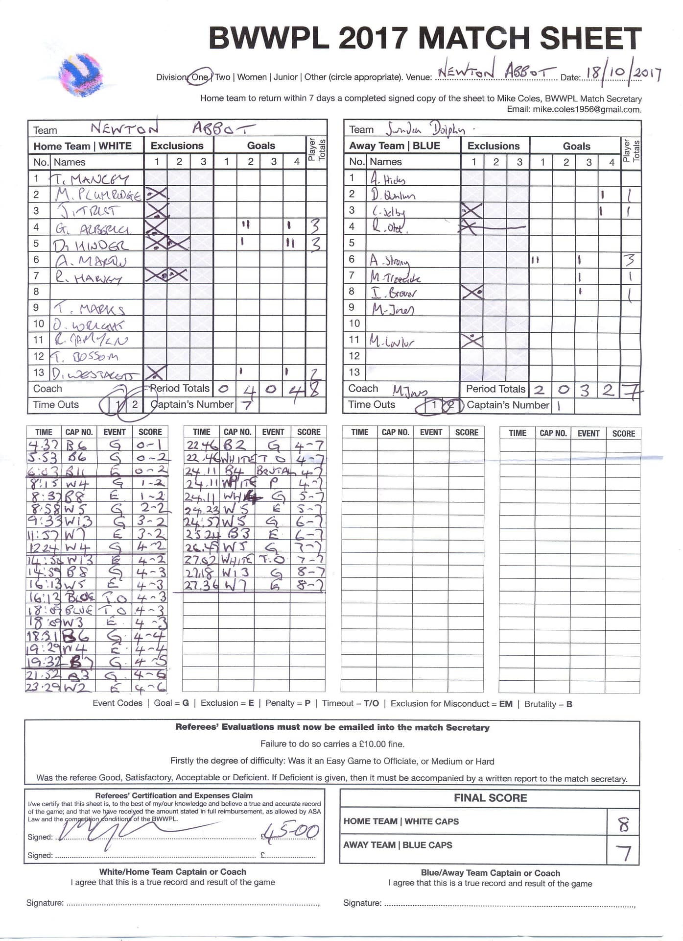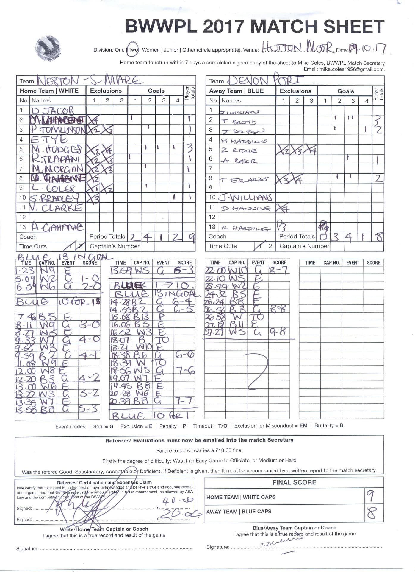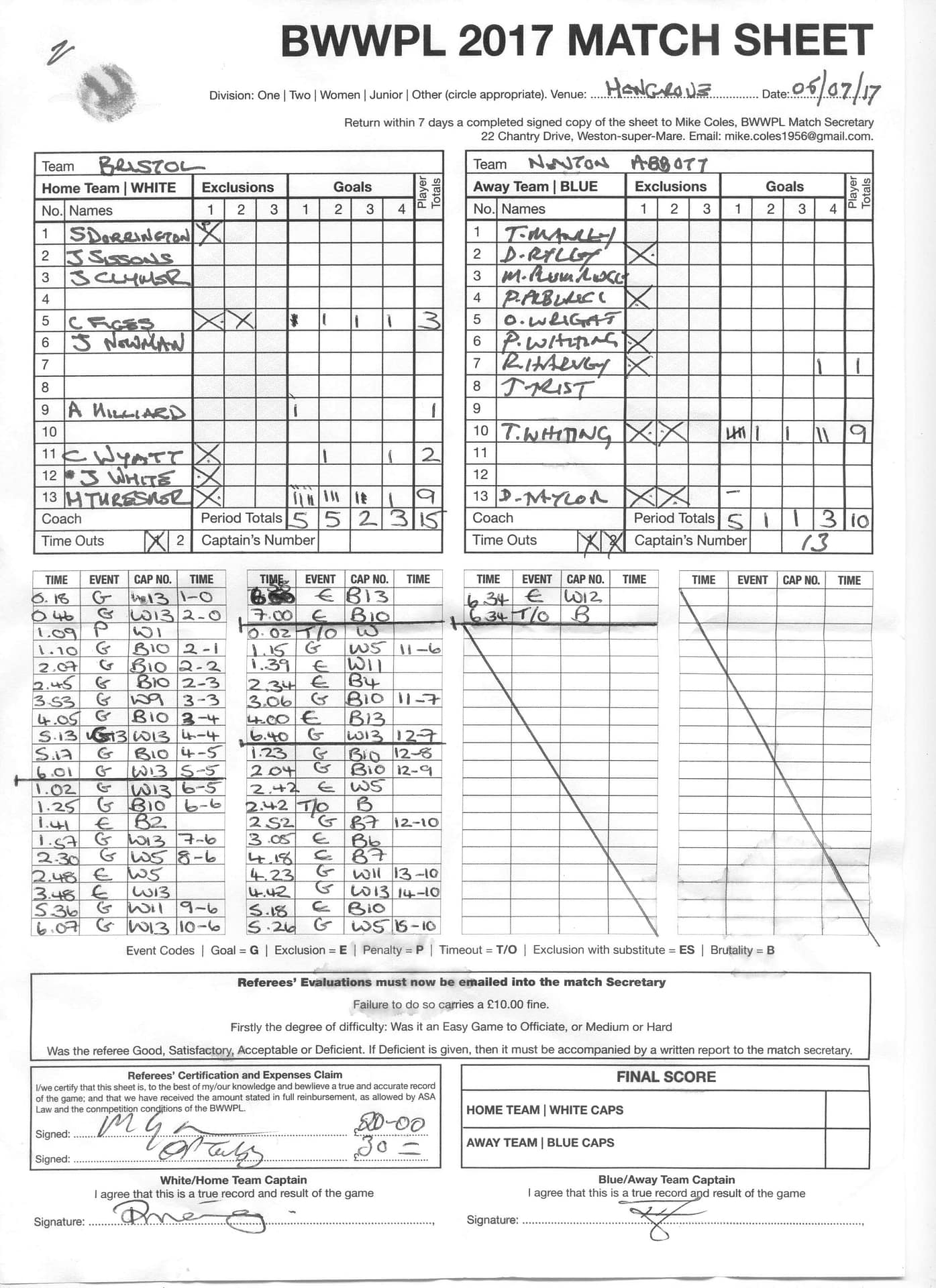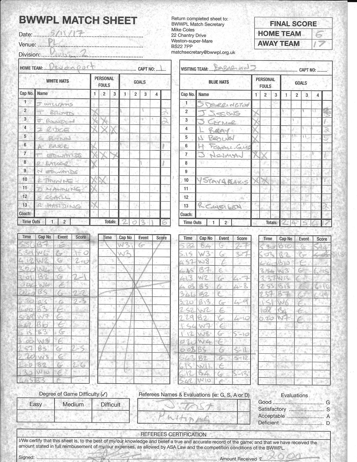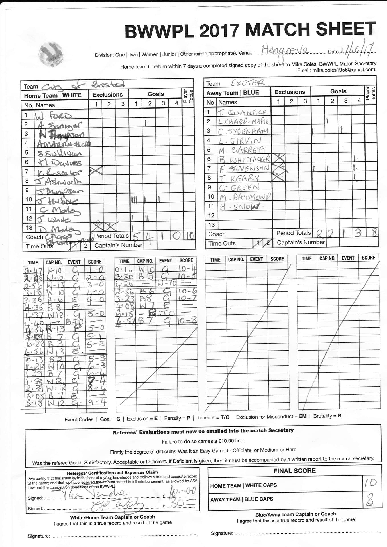 *Newton Abbot played an unregistered player during the fixture Newton Abbot v City of Bristol, 8th September 2017. Newton Abbot fined £10 but the score remains the same.