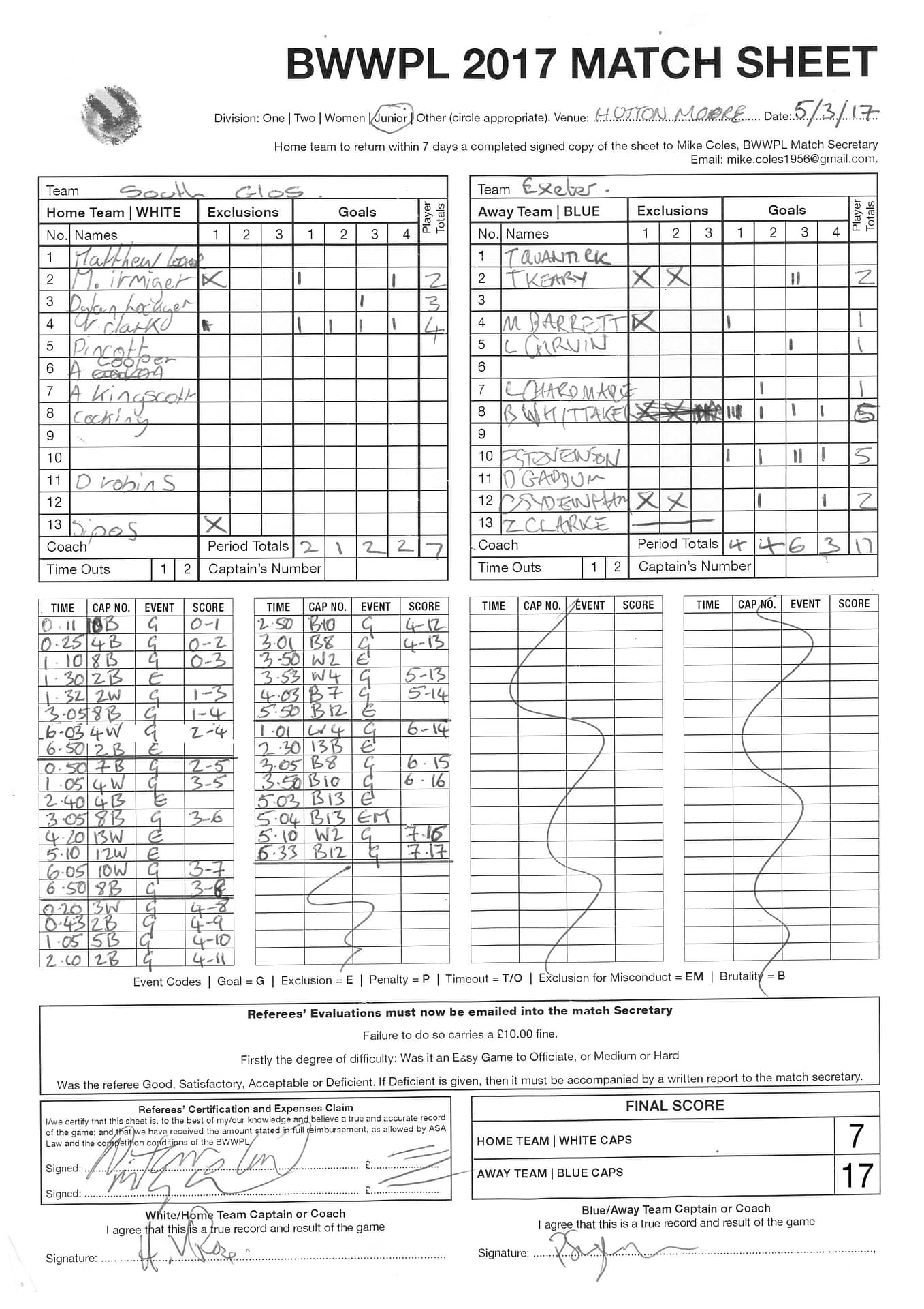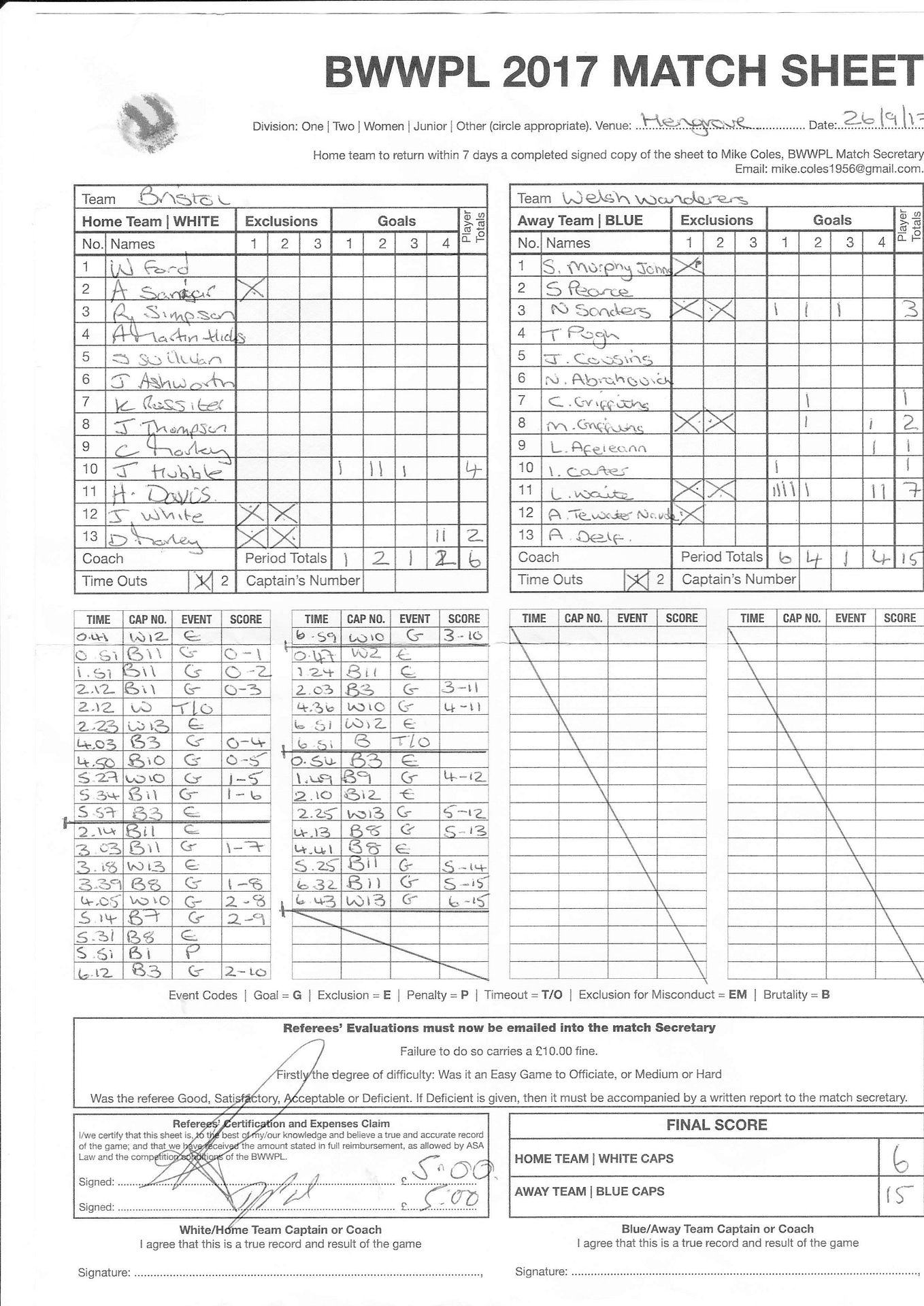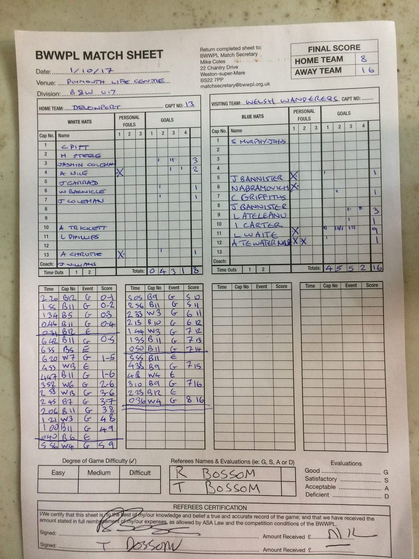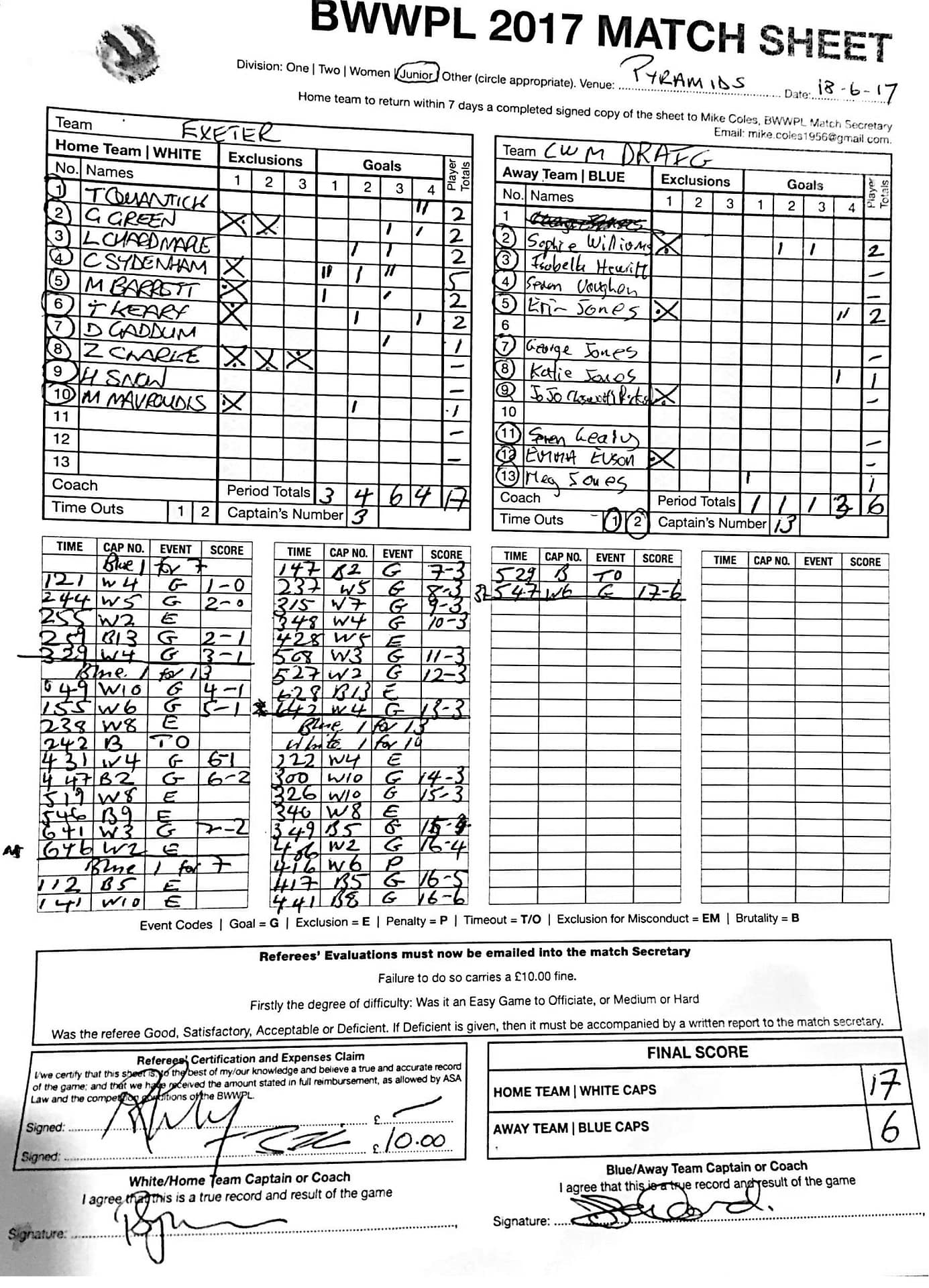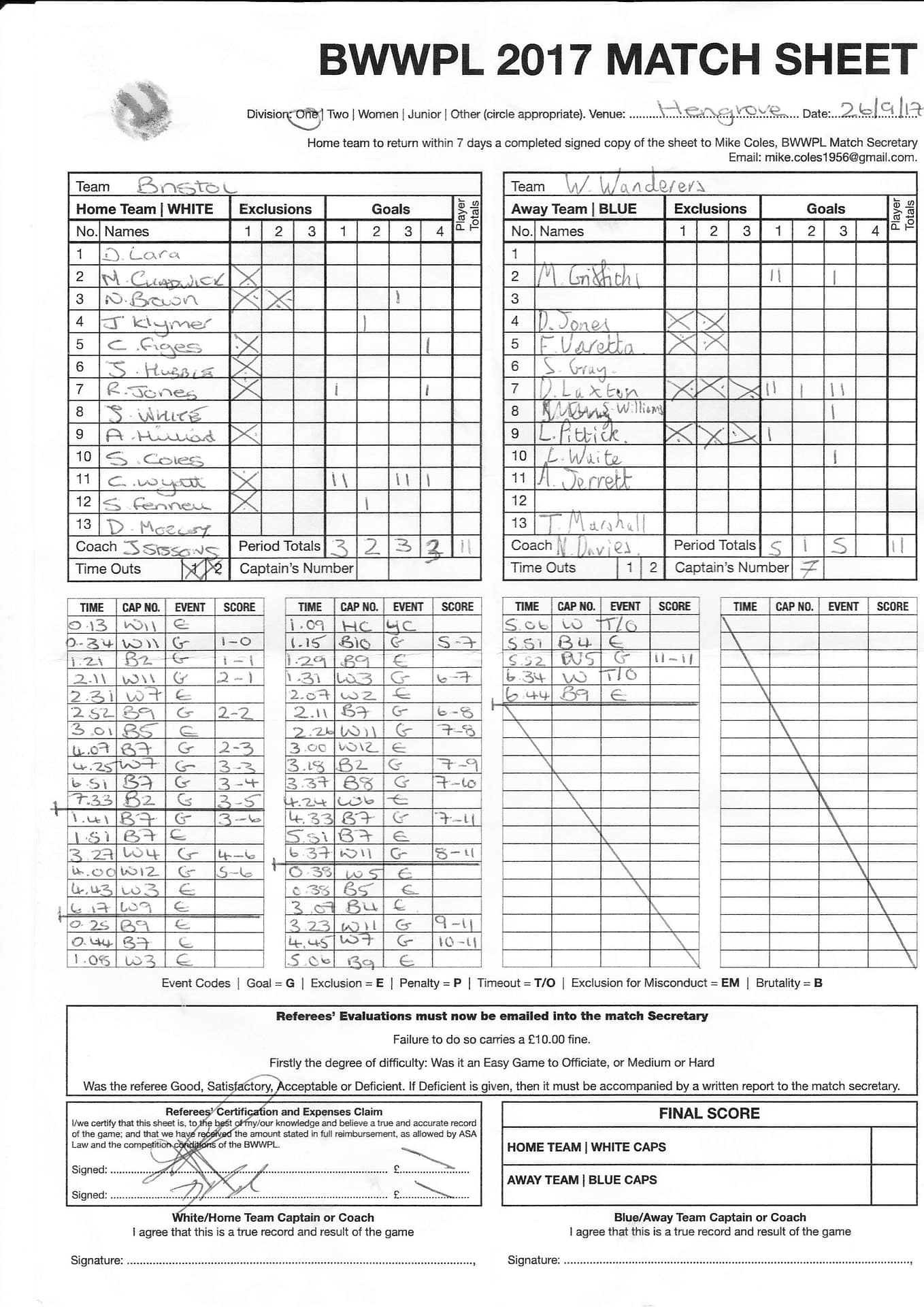 *Newton Abbot played an unregistered player during the fixture Newton Abbot v City of Bristol, 8th September 2017. Newton Abbot fined £10 but the score remains the same.