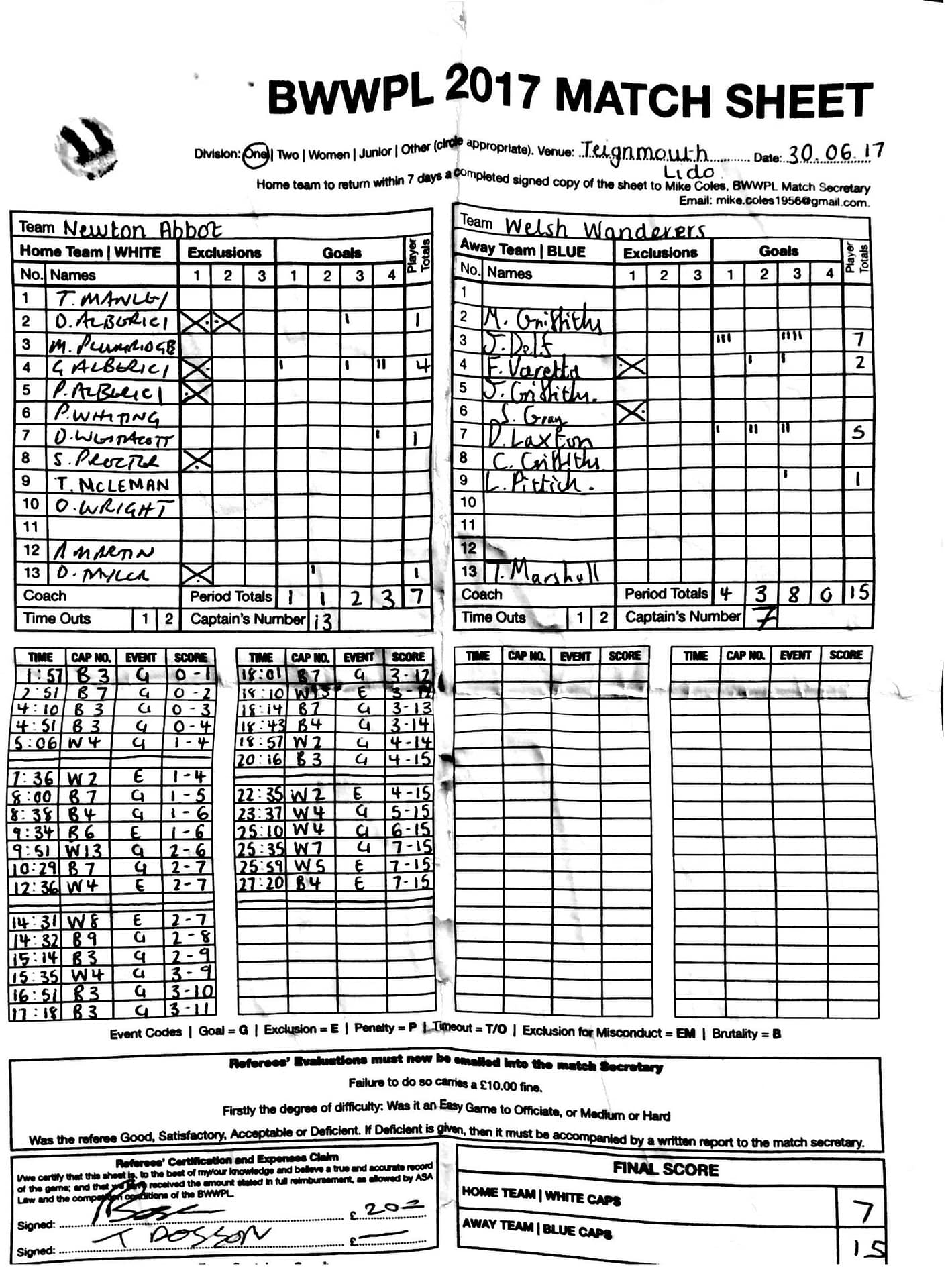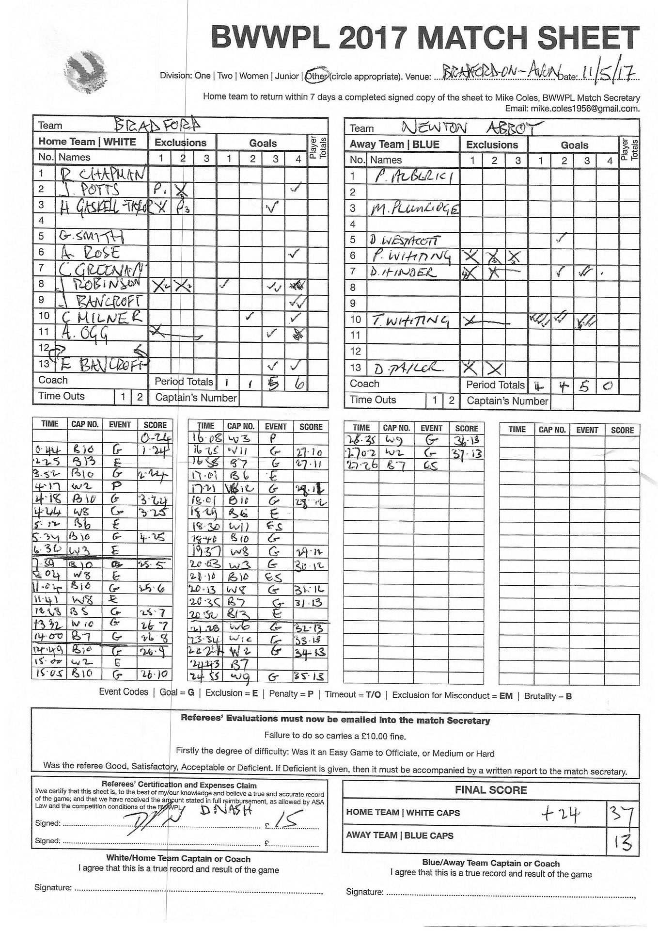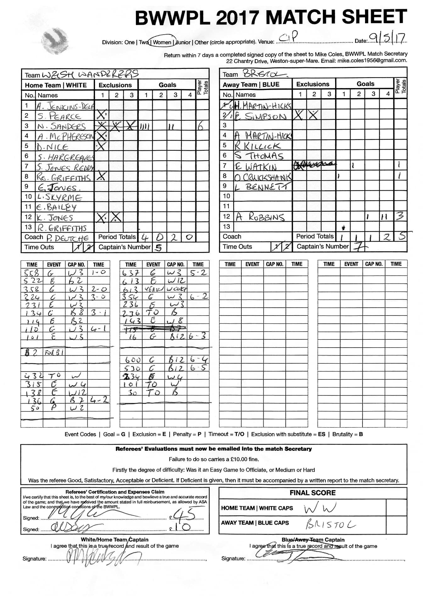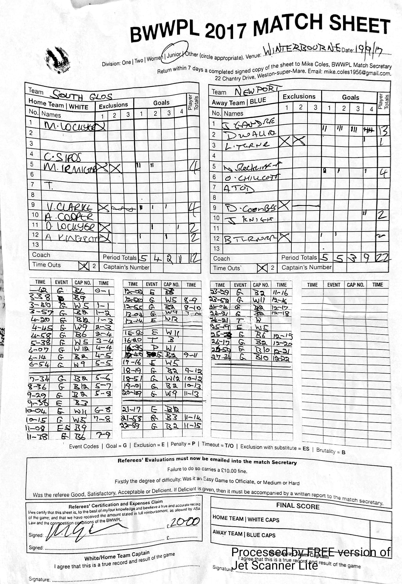 *Newton Abbot played an unregistered player during the fixture Newton Abbot v City of Bristol, 8th September 2017. Newton Abbot fined £10 but the score remains the same.