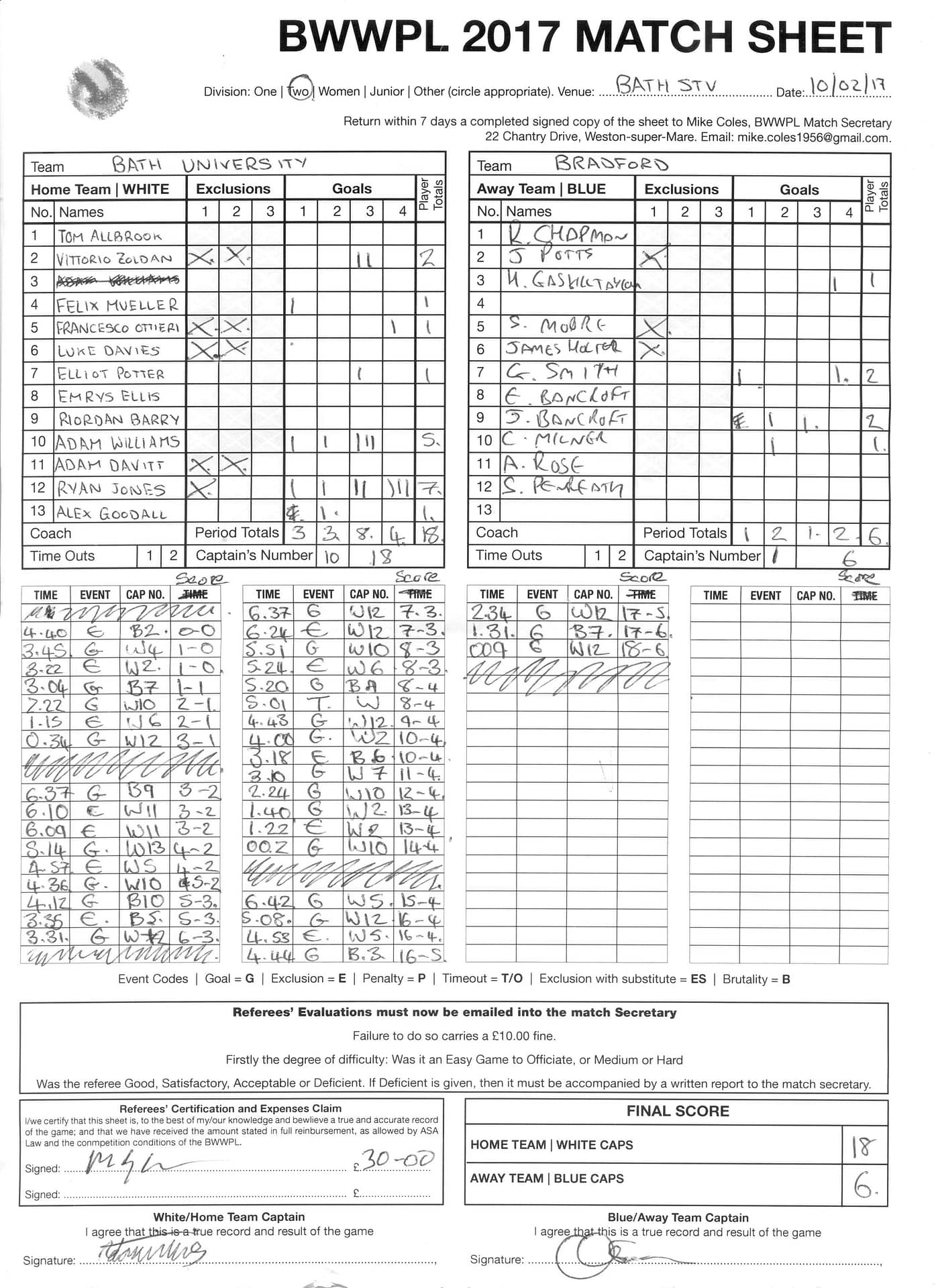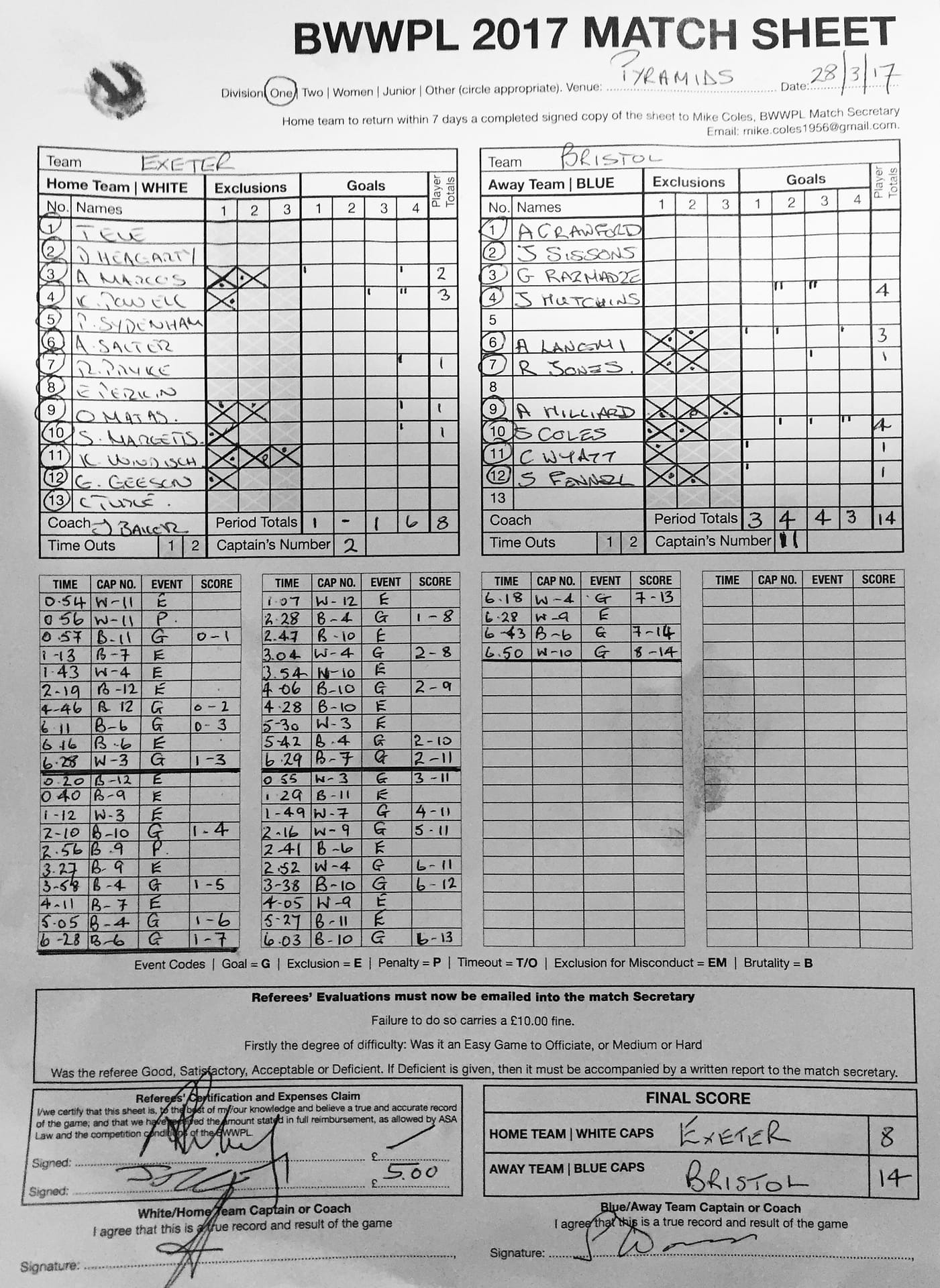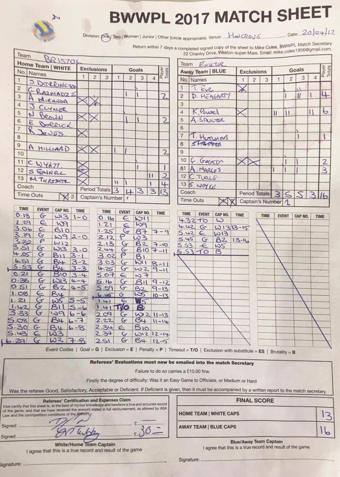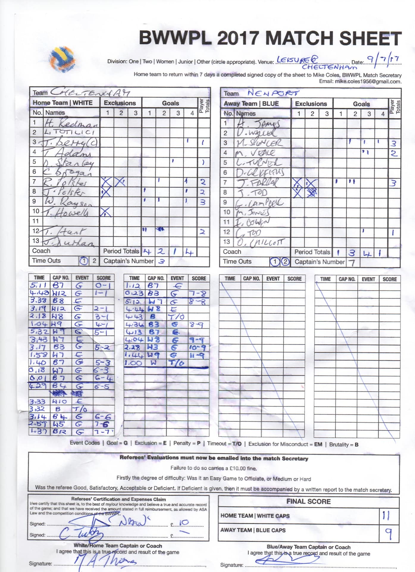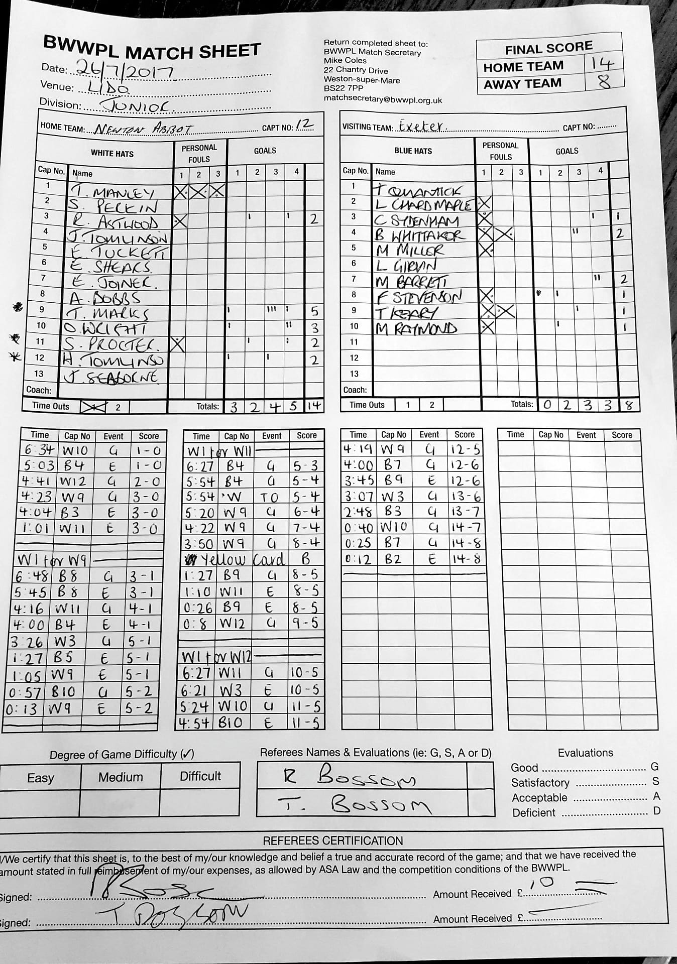 *Newton Abbot played an unregistered player during the fixture Newton Abbot v City of Bristol, 8th September 2017. Newton Abbot fined £10 but the score remains the same.