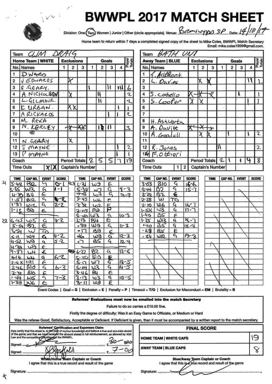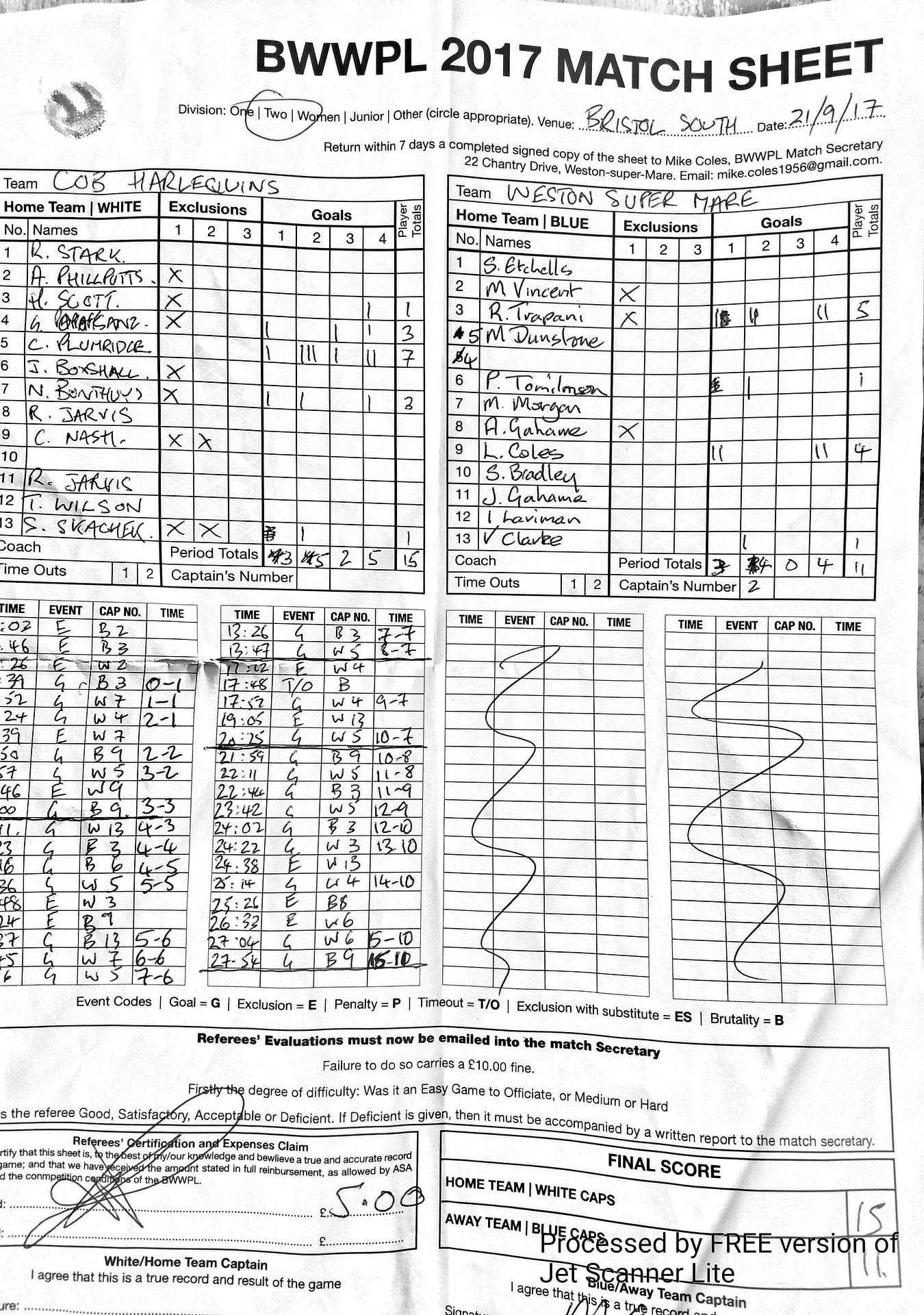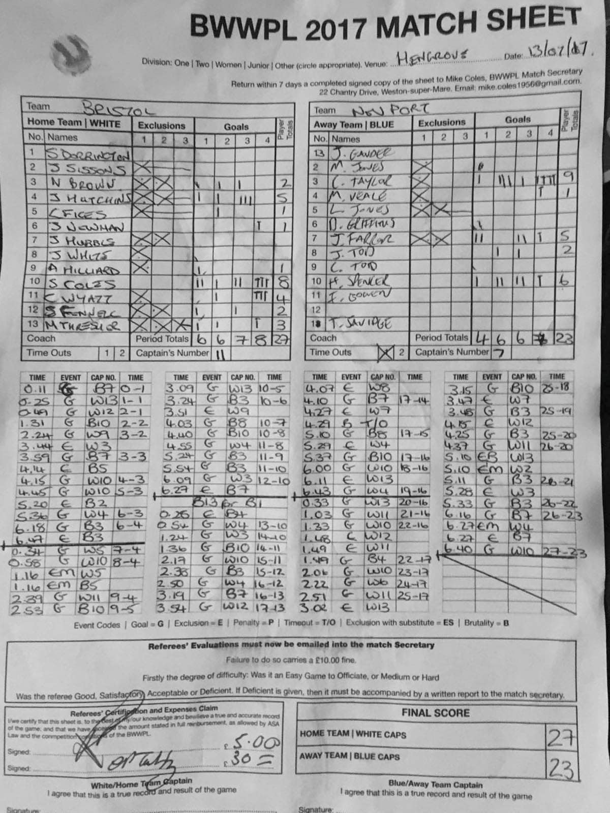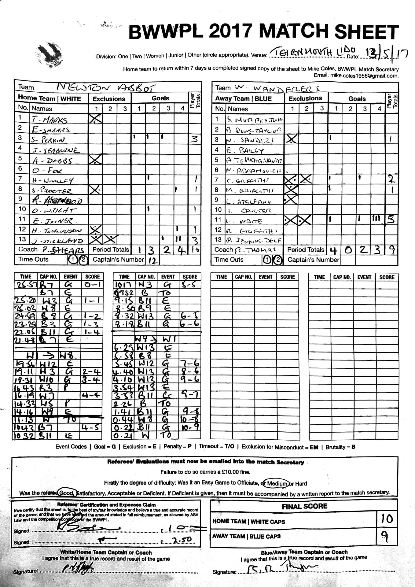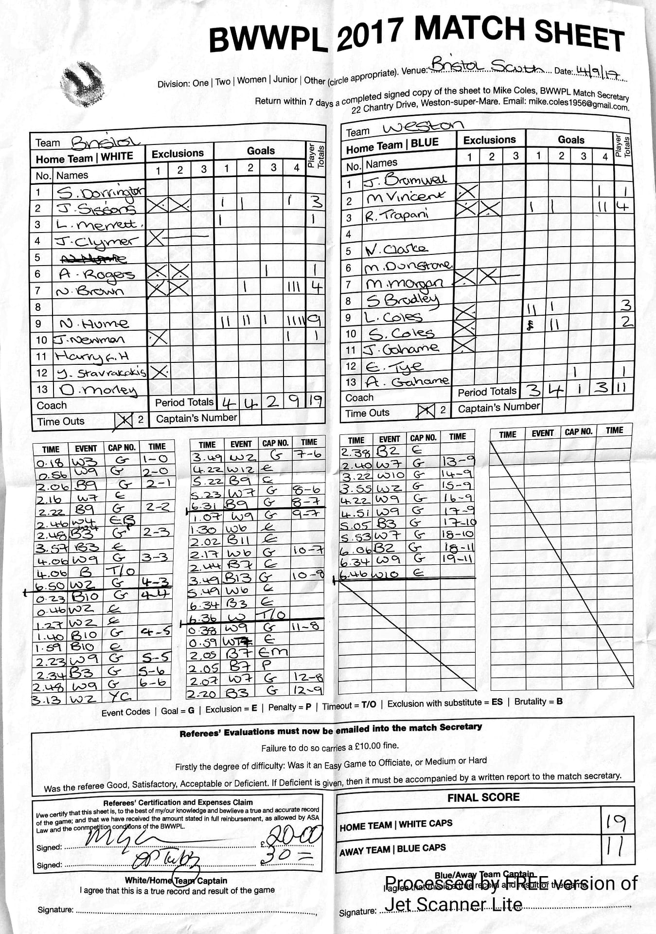 *Newton Abbot played an unregistered player during the fixture Newton Abbot v City of Bristol, 8th September 2017. Newton Abbot fined £10 but the score remains the same.