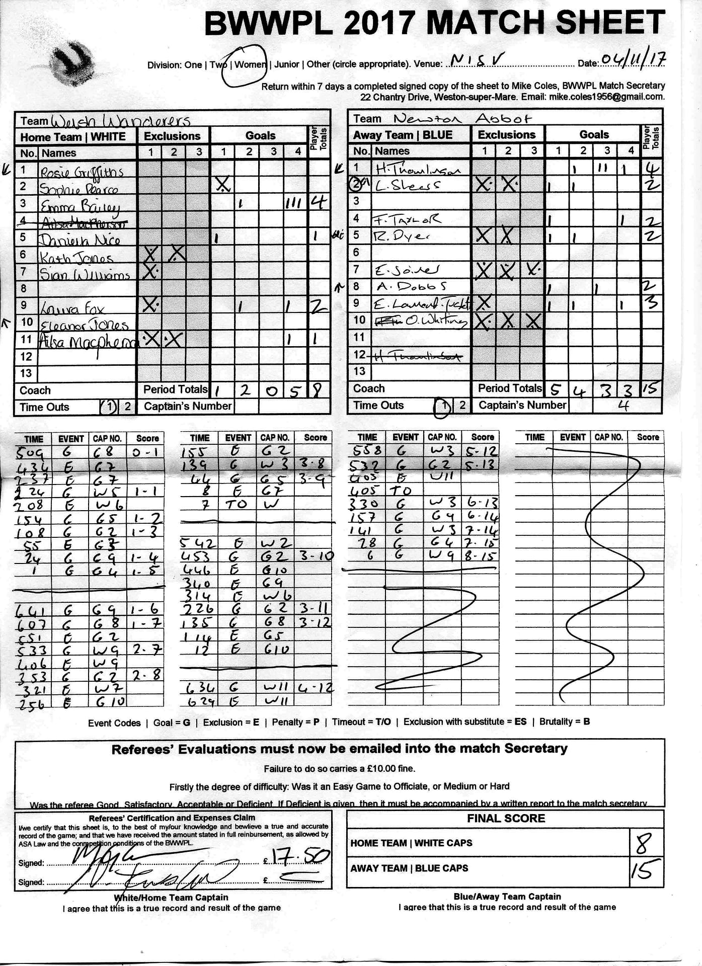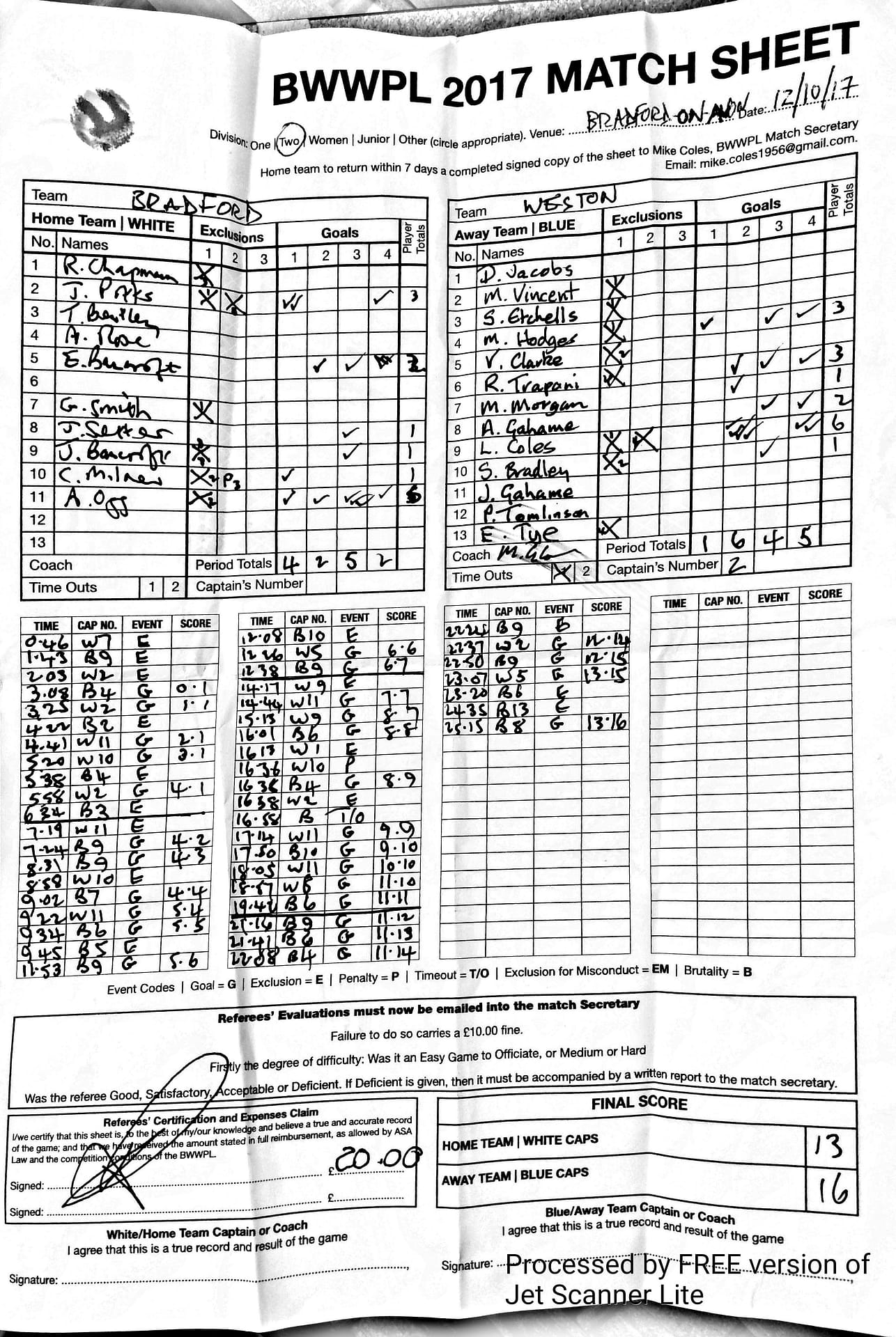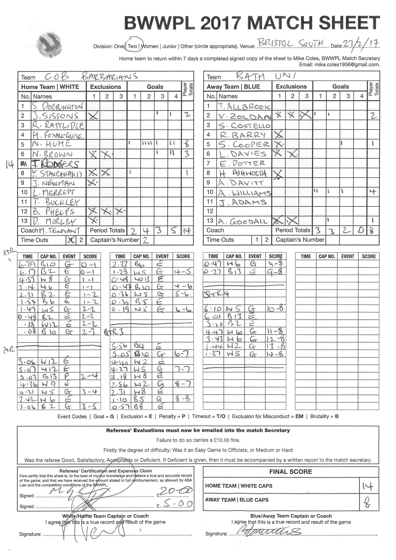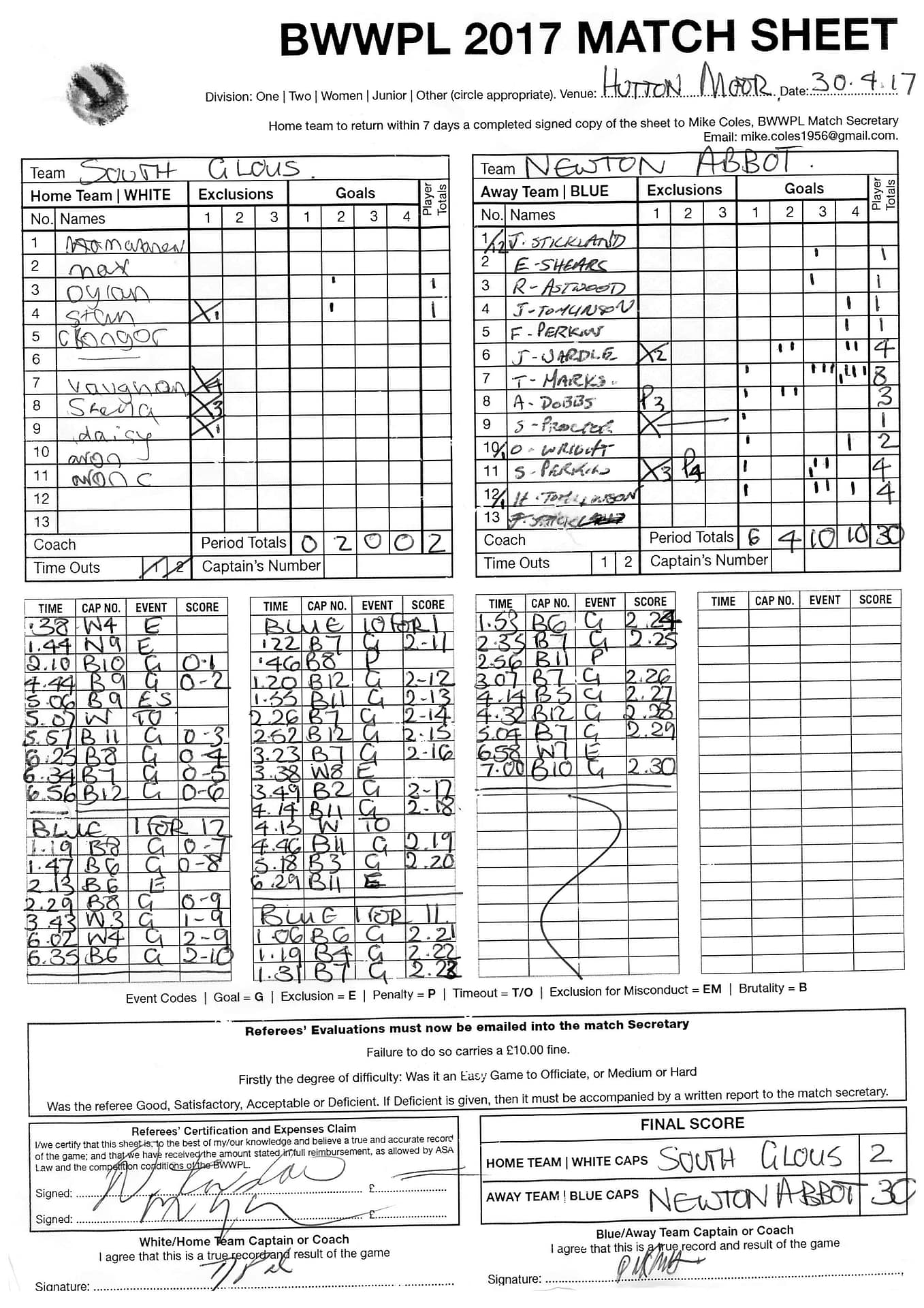 *Newton Abbot played an unregistered player during the fixture Newton Abbot v City of Bristol, 8th September 2017. Newton Abbot fined £10 but the score remains the same.