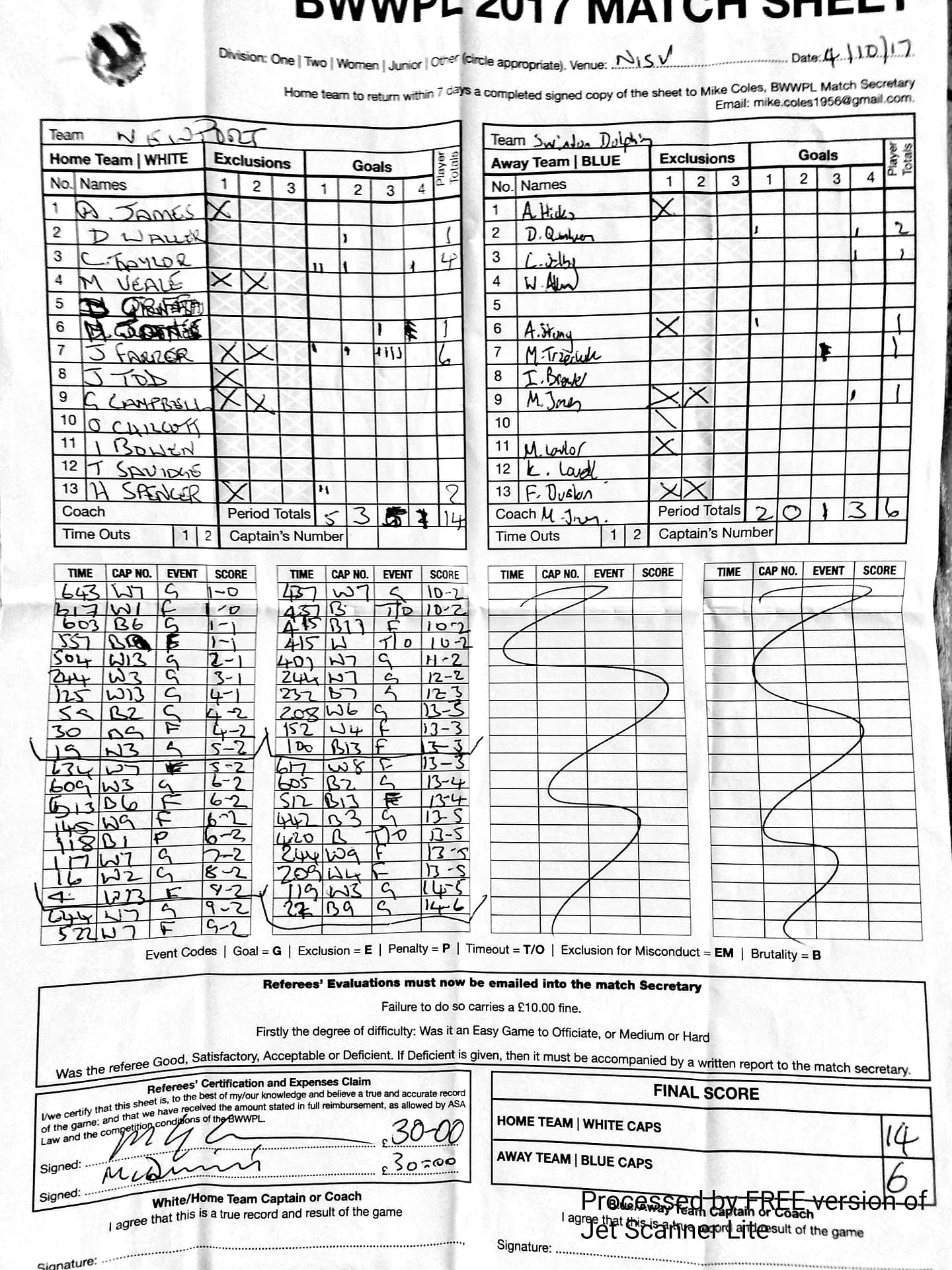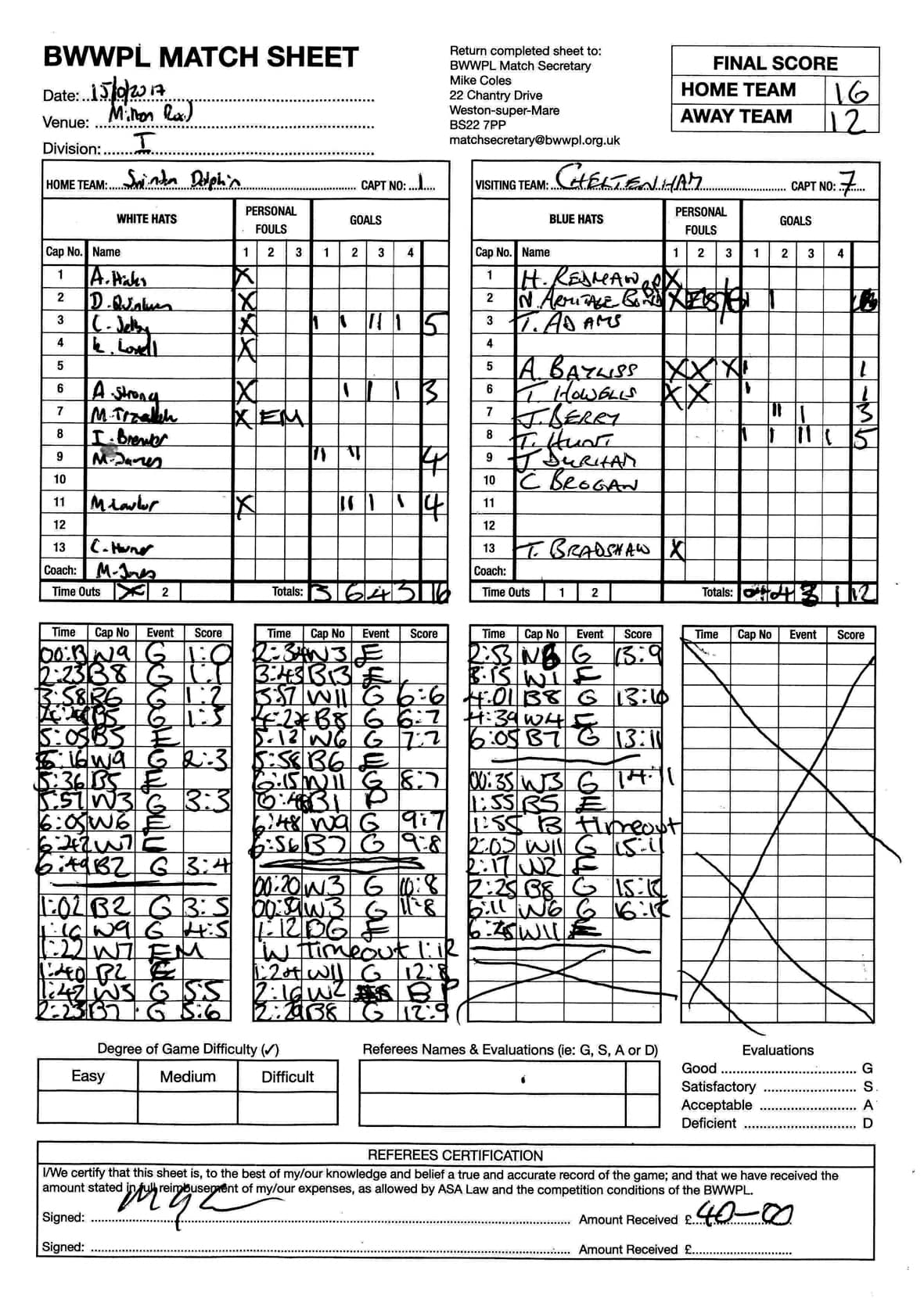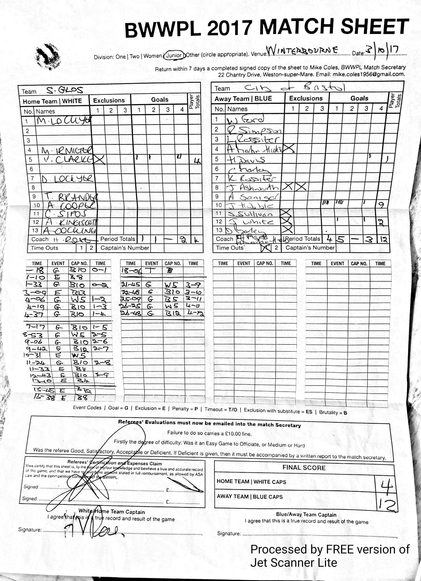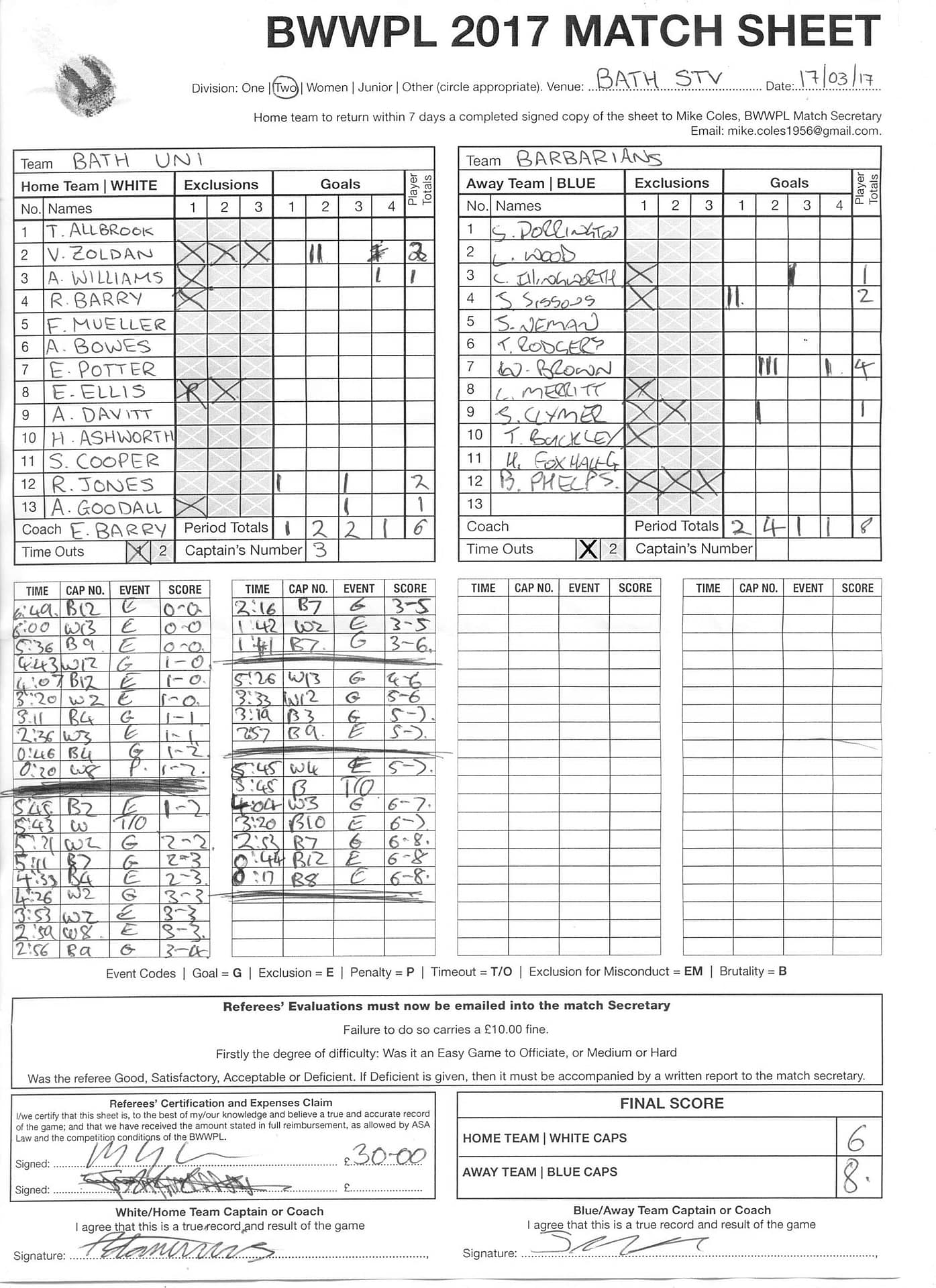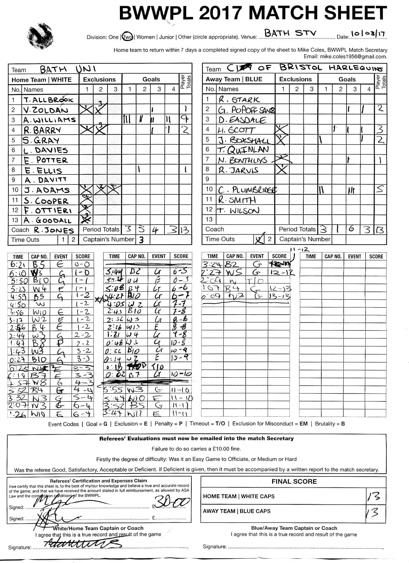 *Newton Abbot played an unregistered player during the fixture Newton Abbot v City of Bristol, 8th September 2017. Newton Abbot fined £10 but the score remains the same.