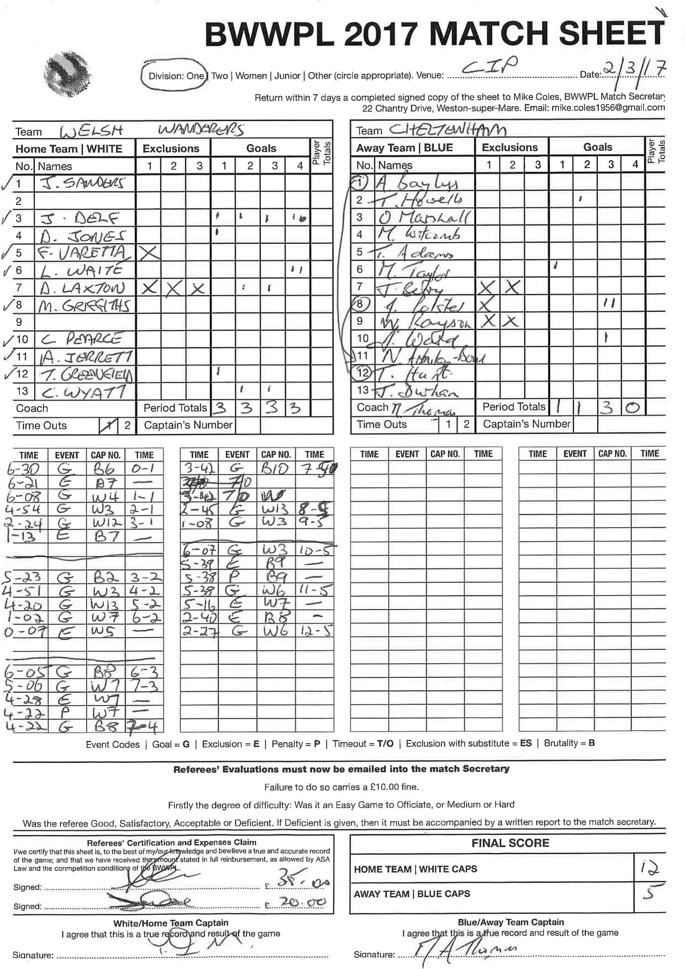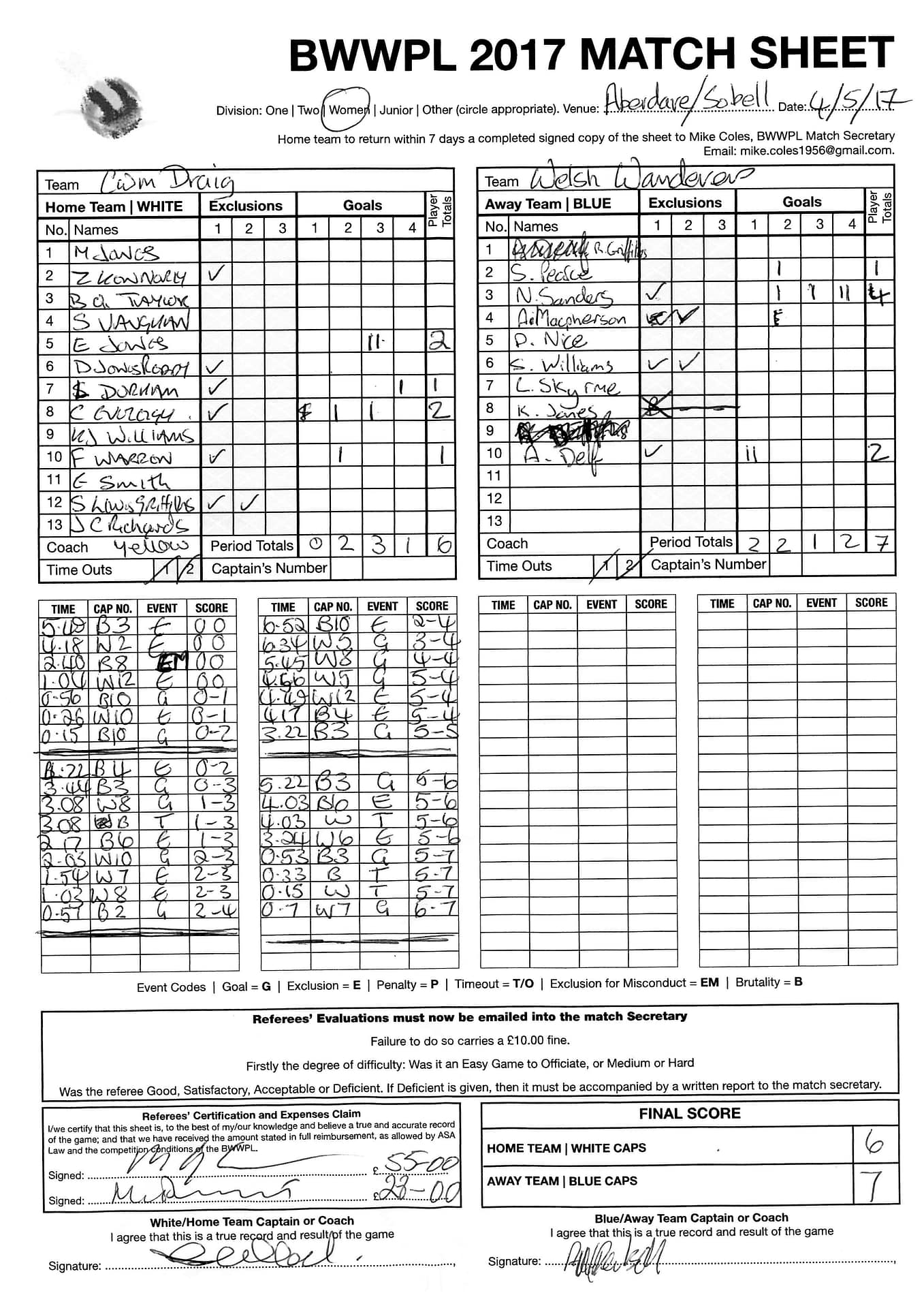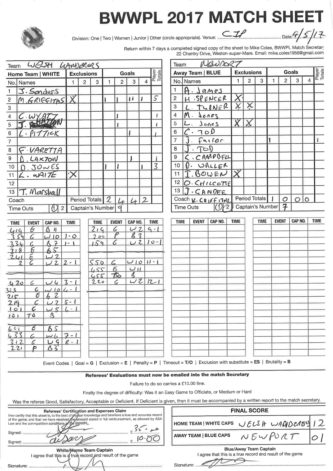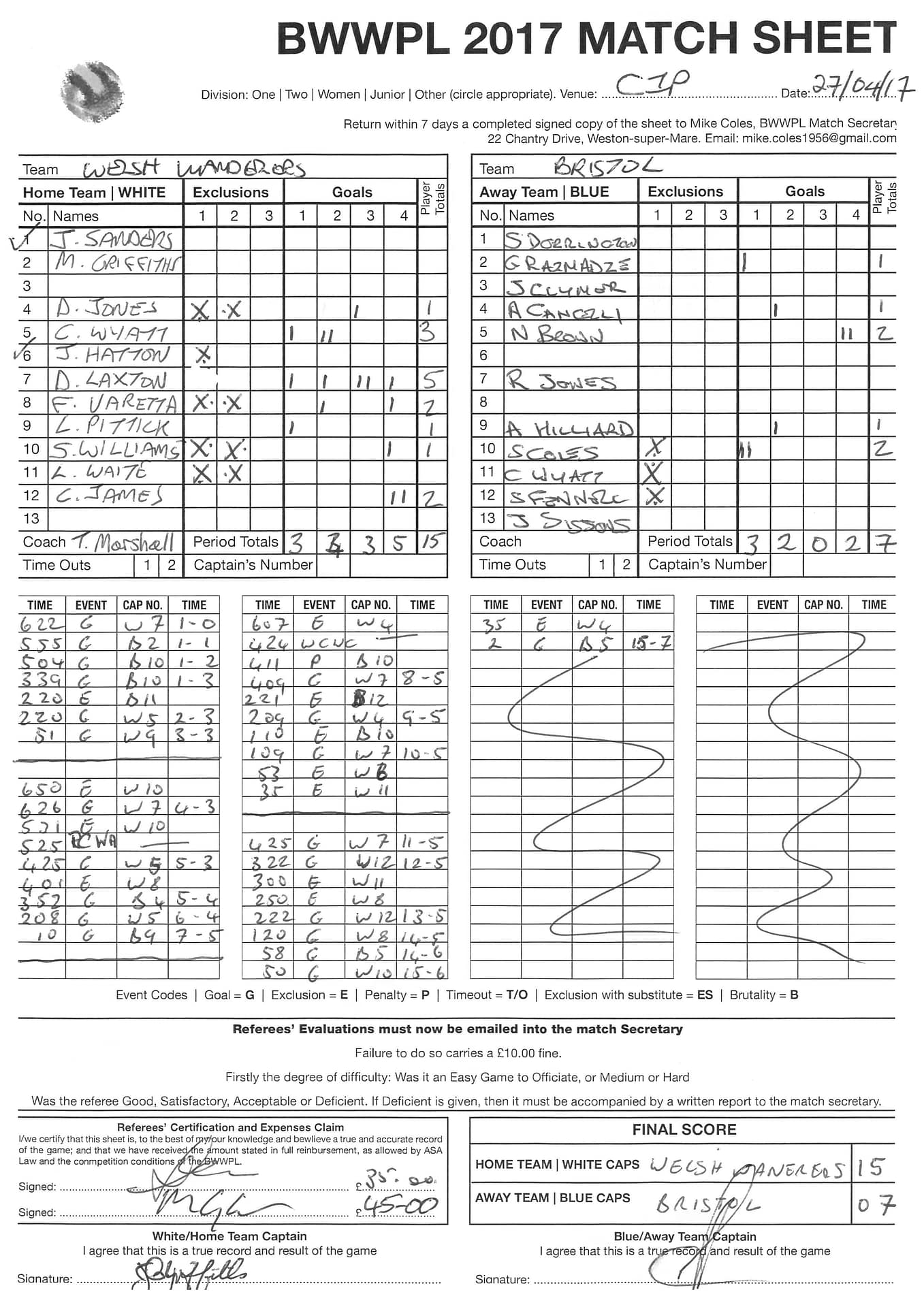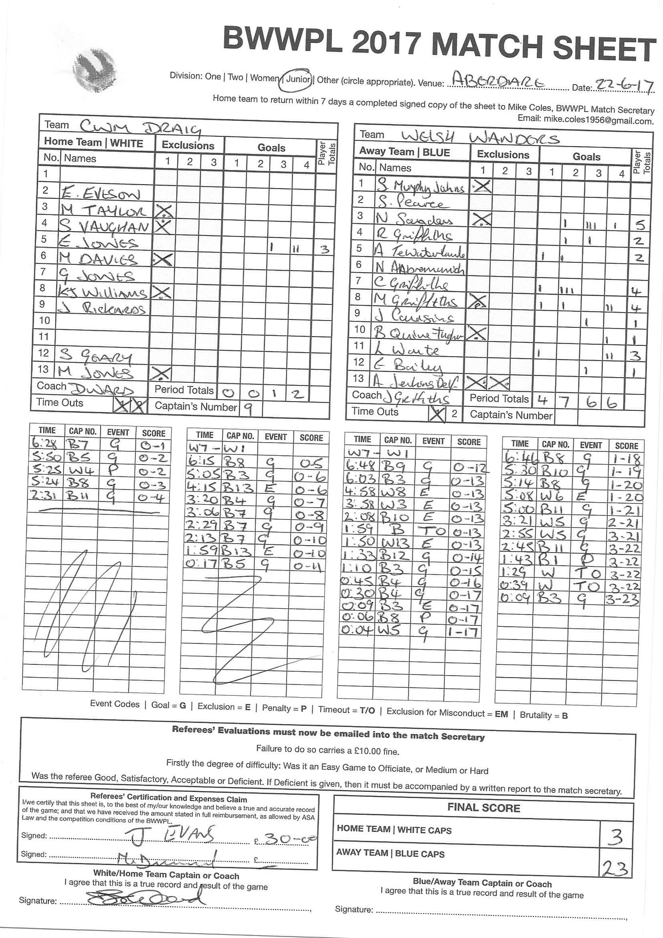 *Welsh Wanderers played an unregistered player in the game Welsh Wanderers v Cwm Draig.