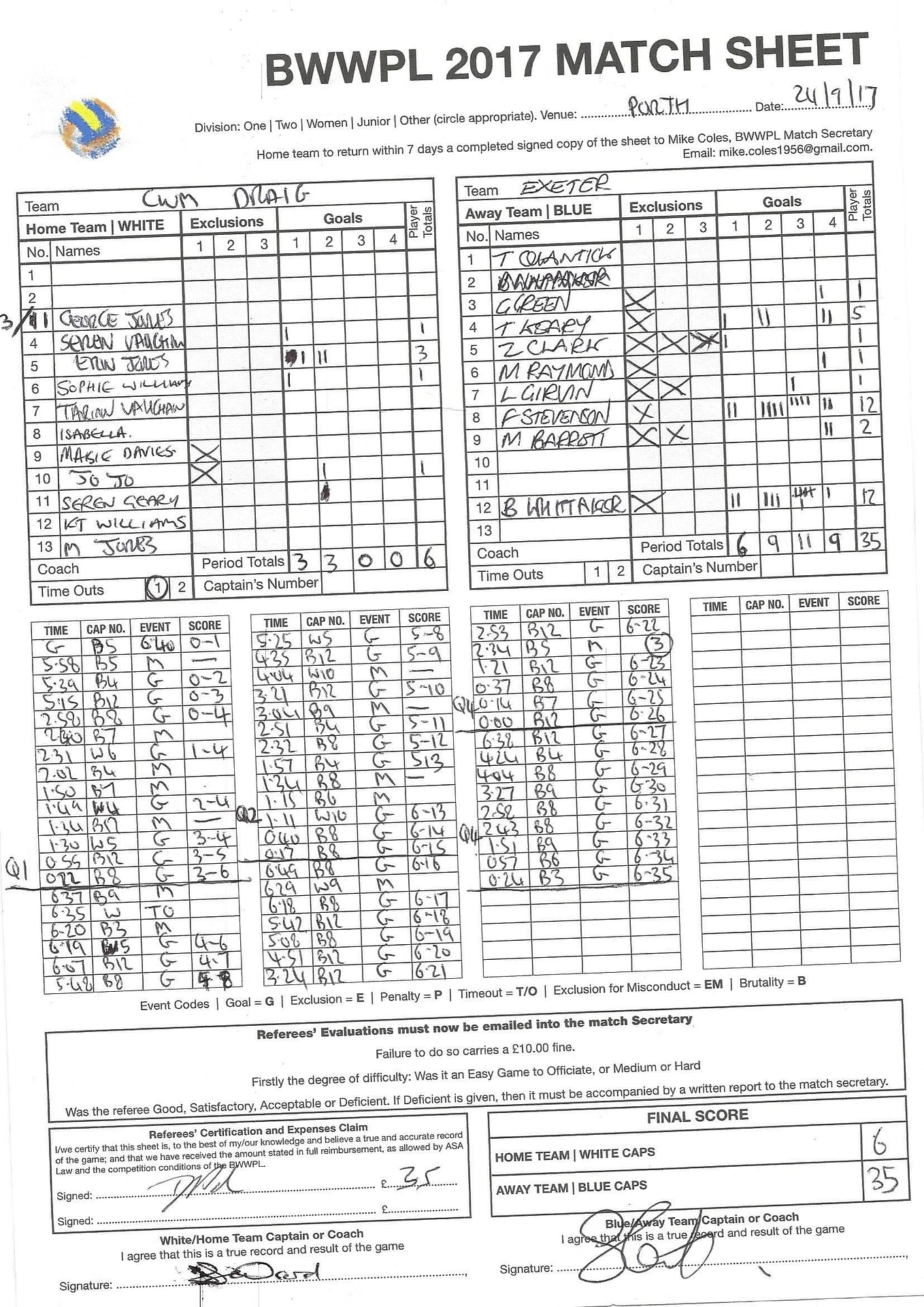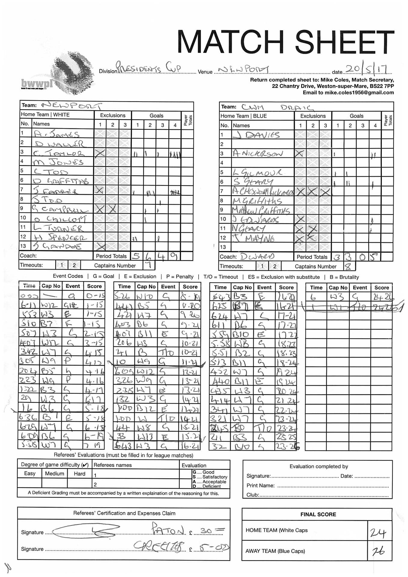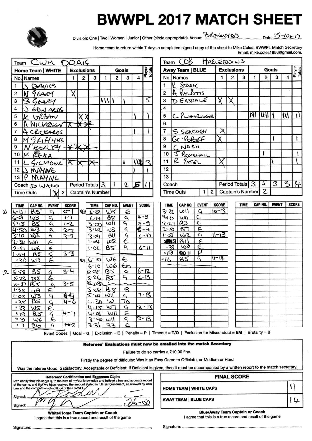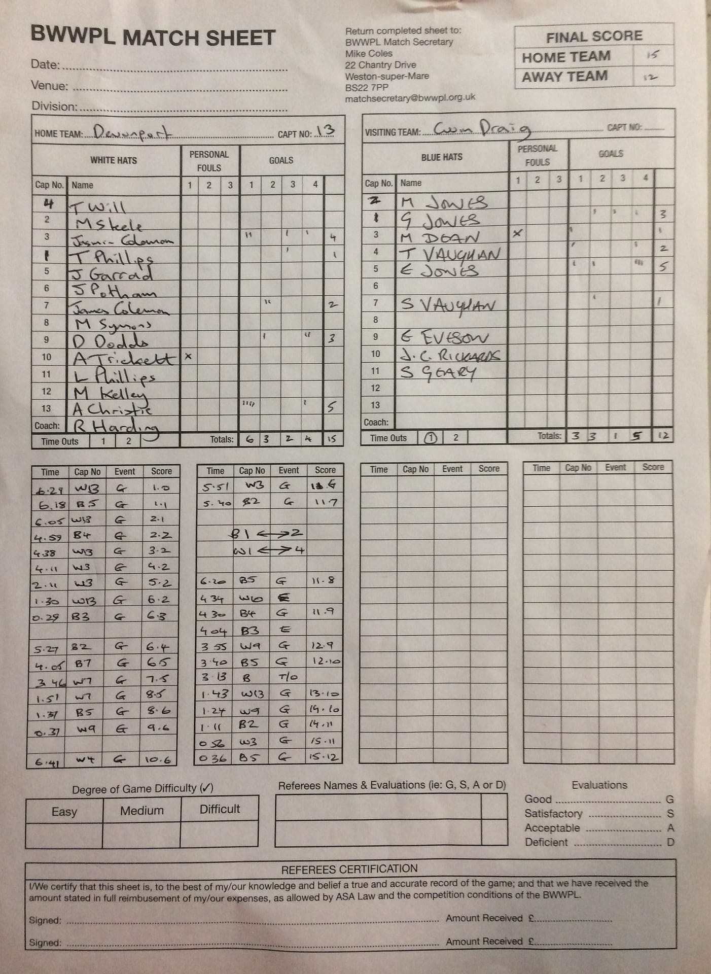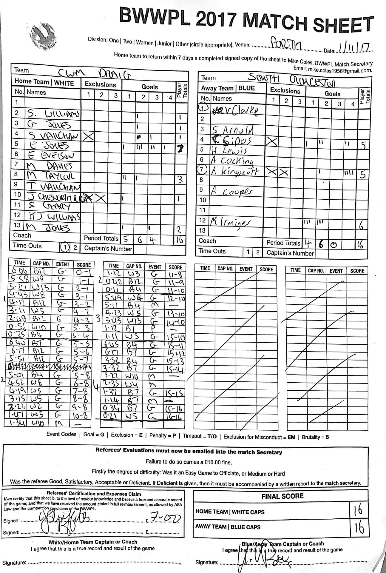 Points deducted. Two points awarded to Cwm Draig as a 0-0 score as per Rule 16.9.