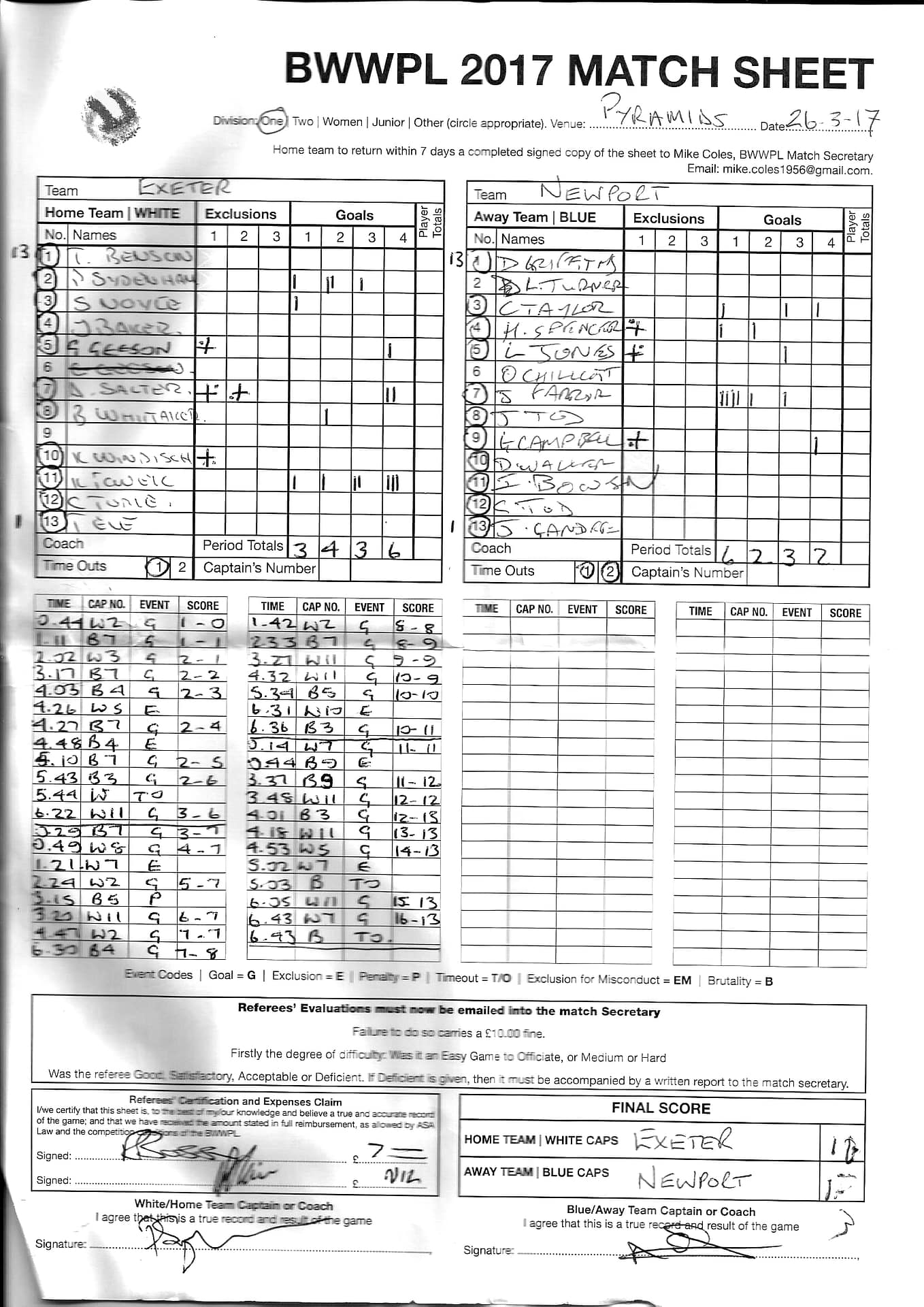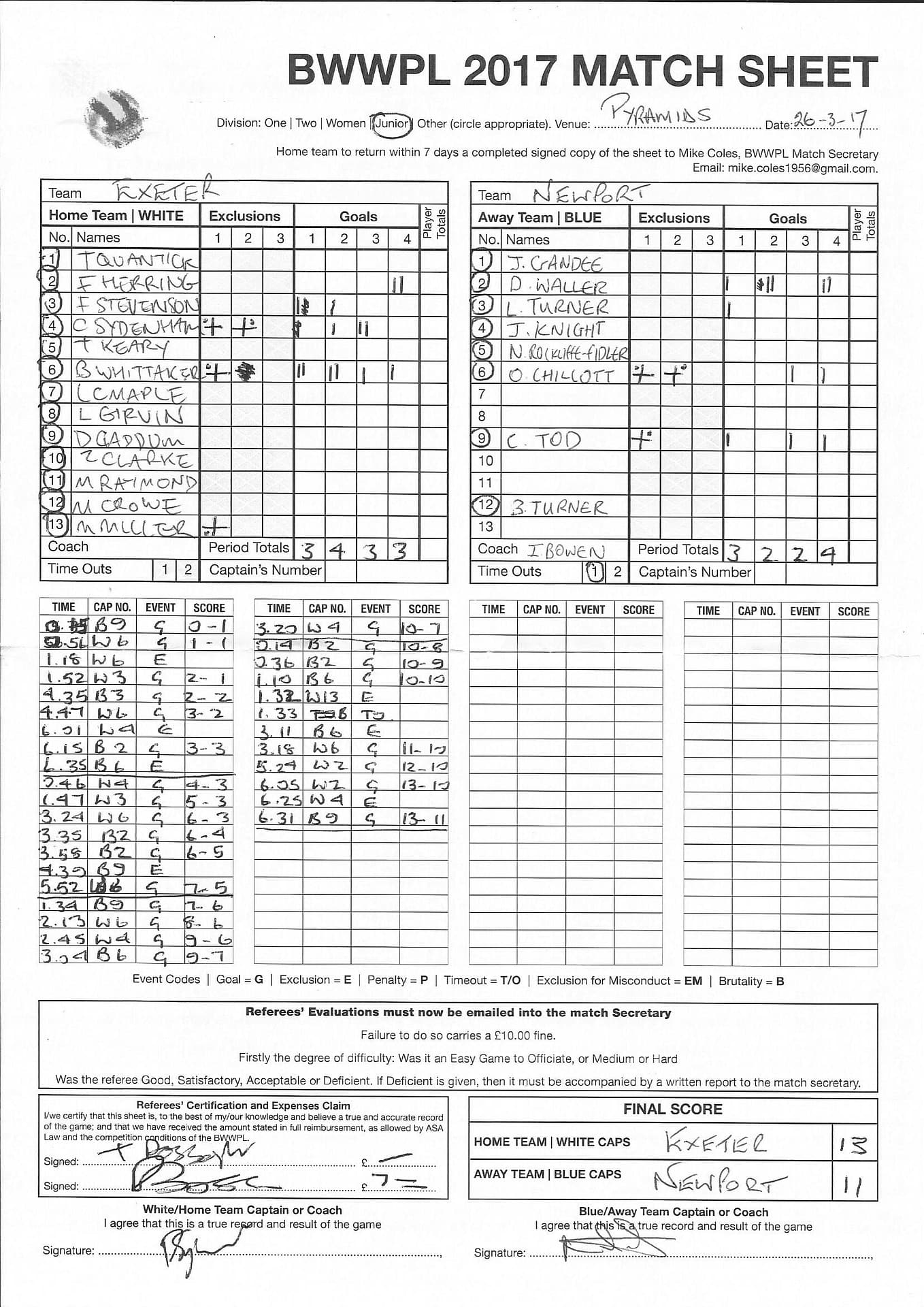 **Exeter cancelled a second time away to Newport, therefore Newport awarded two points on a 2-0 win
