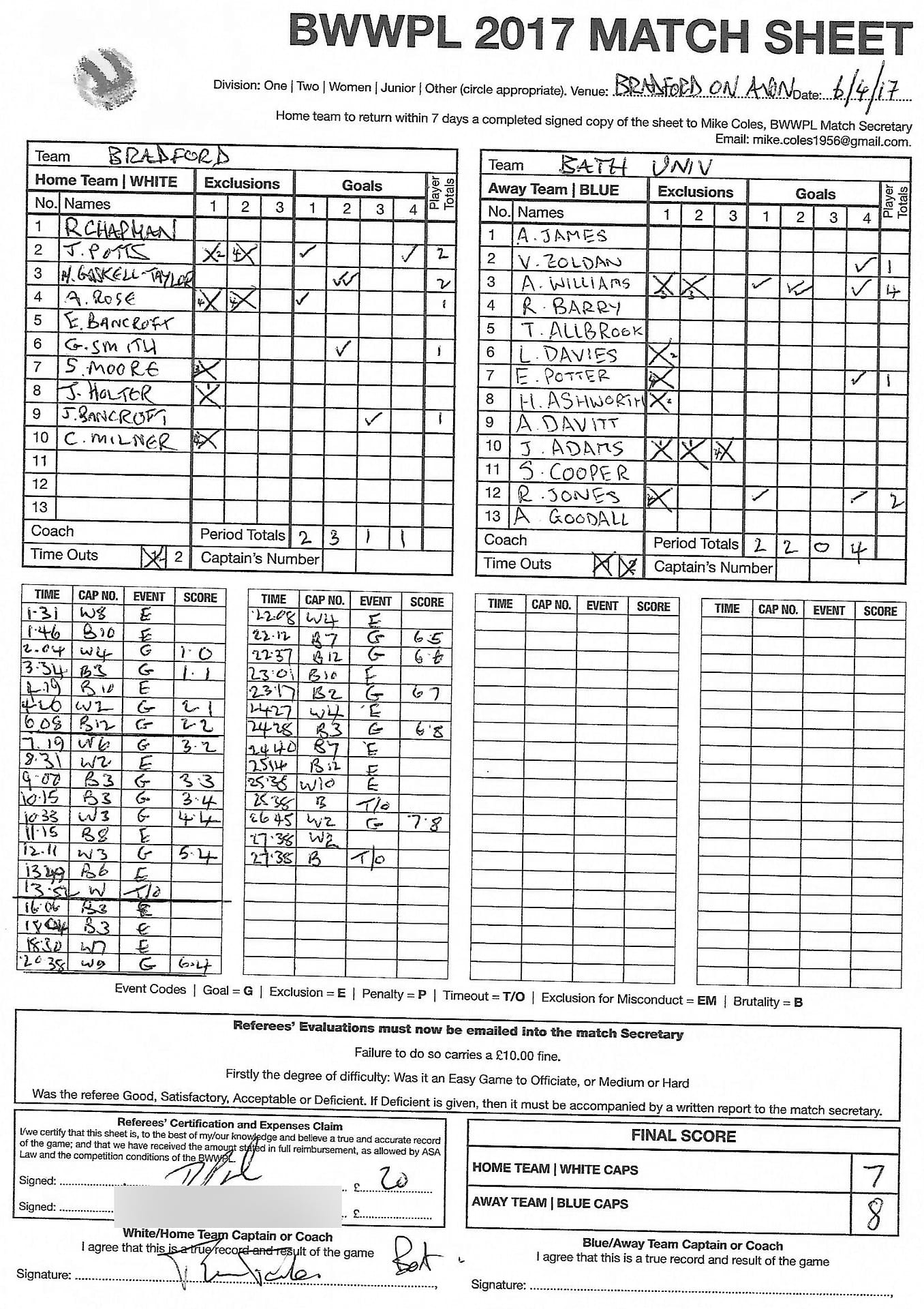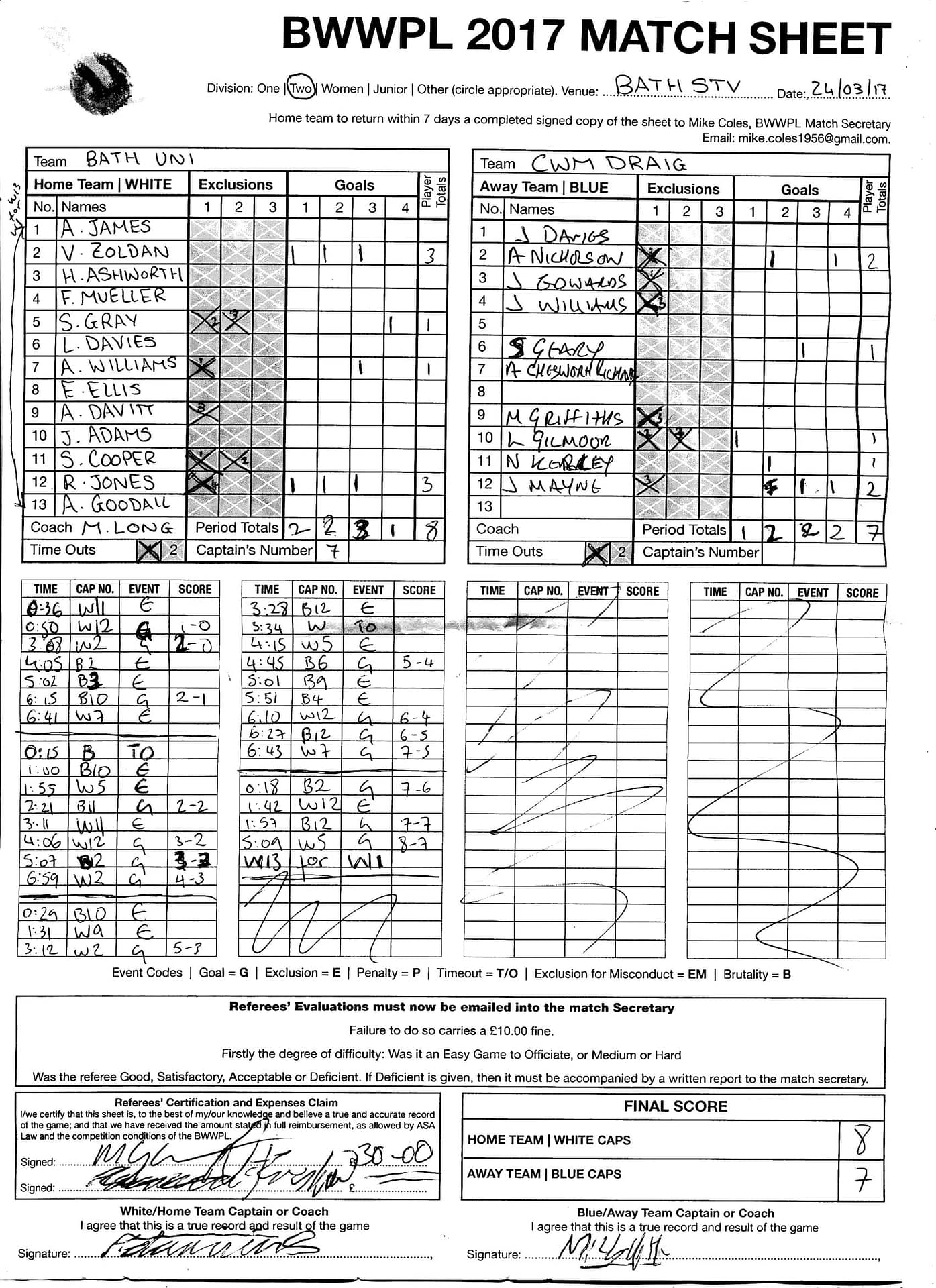 | 6 | Bath University | 12 | 5 | 6 | 1 | 114 | 154 | -40 |