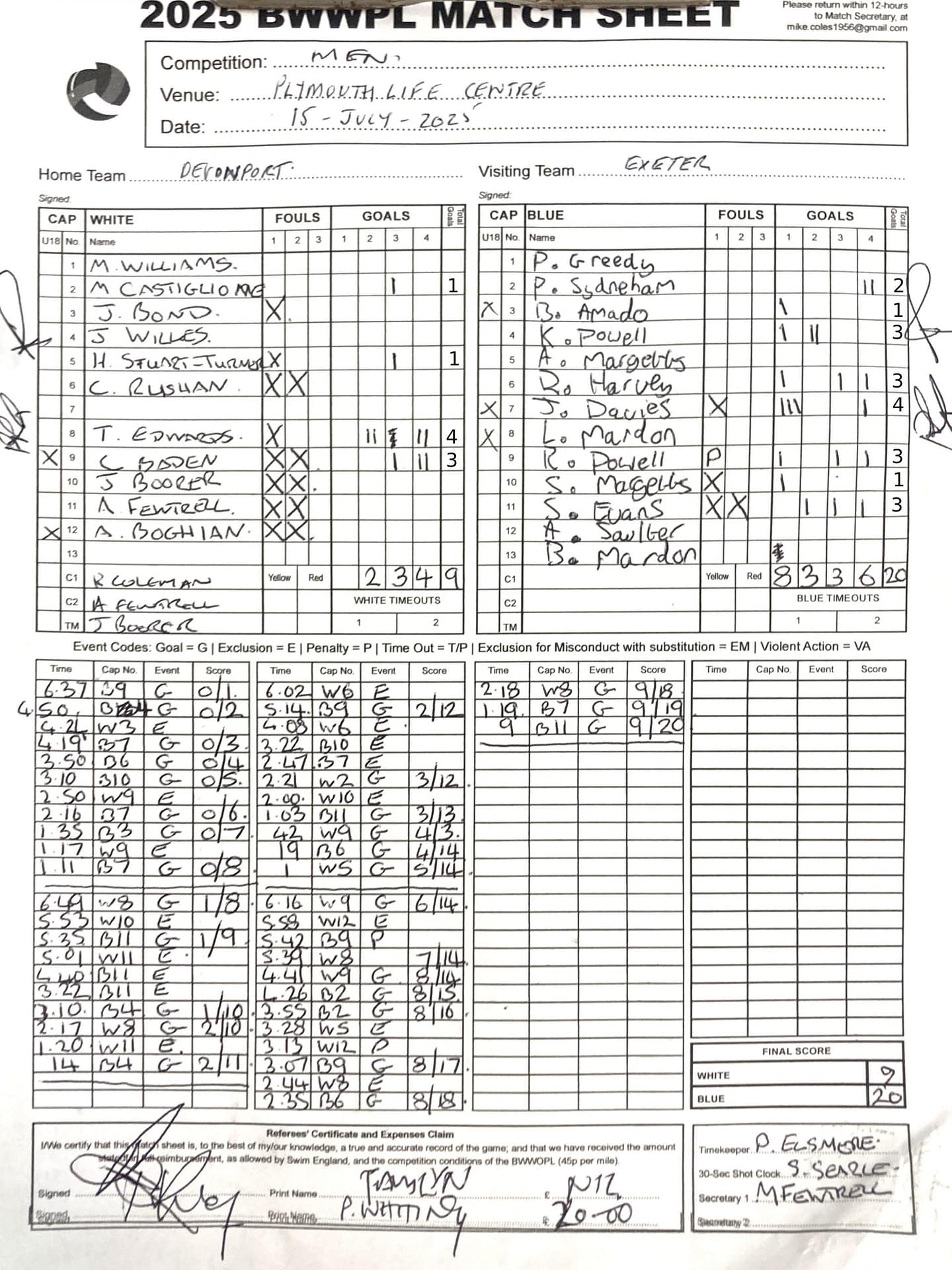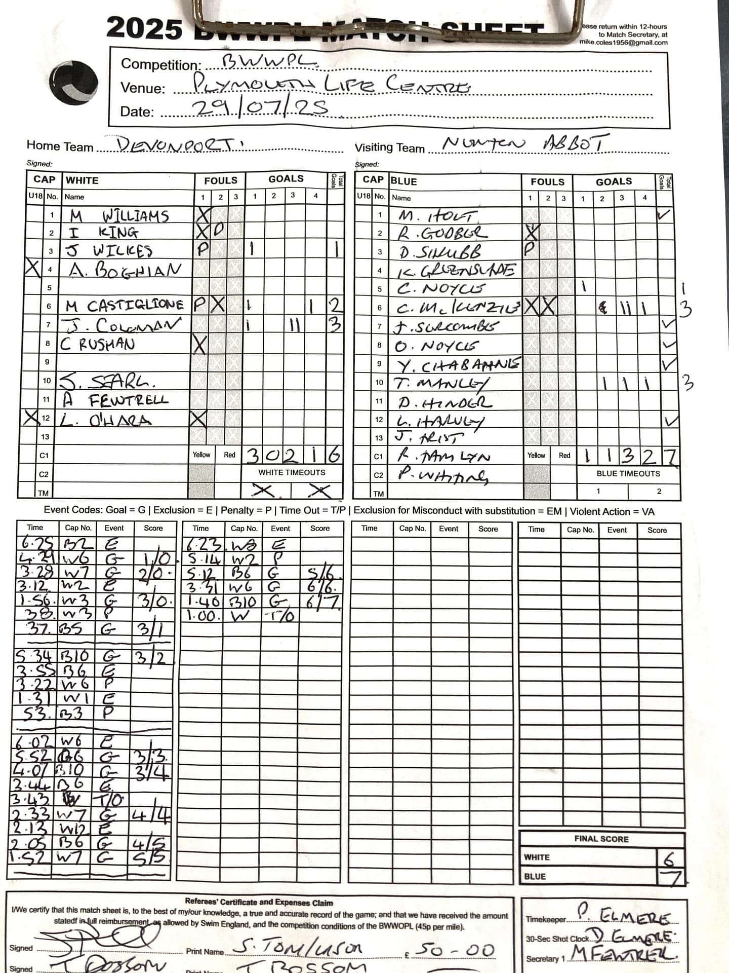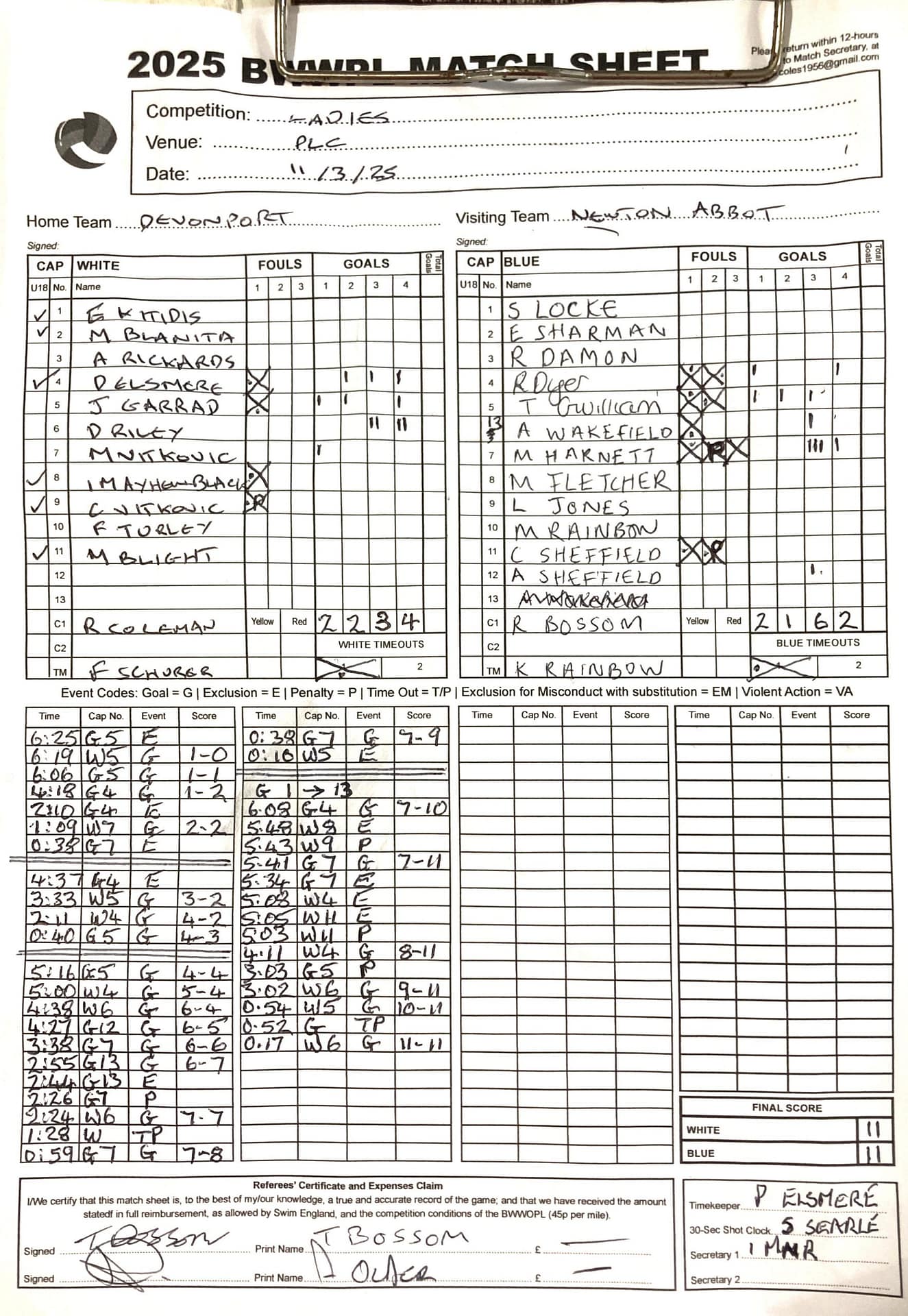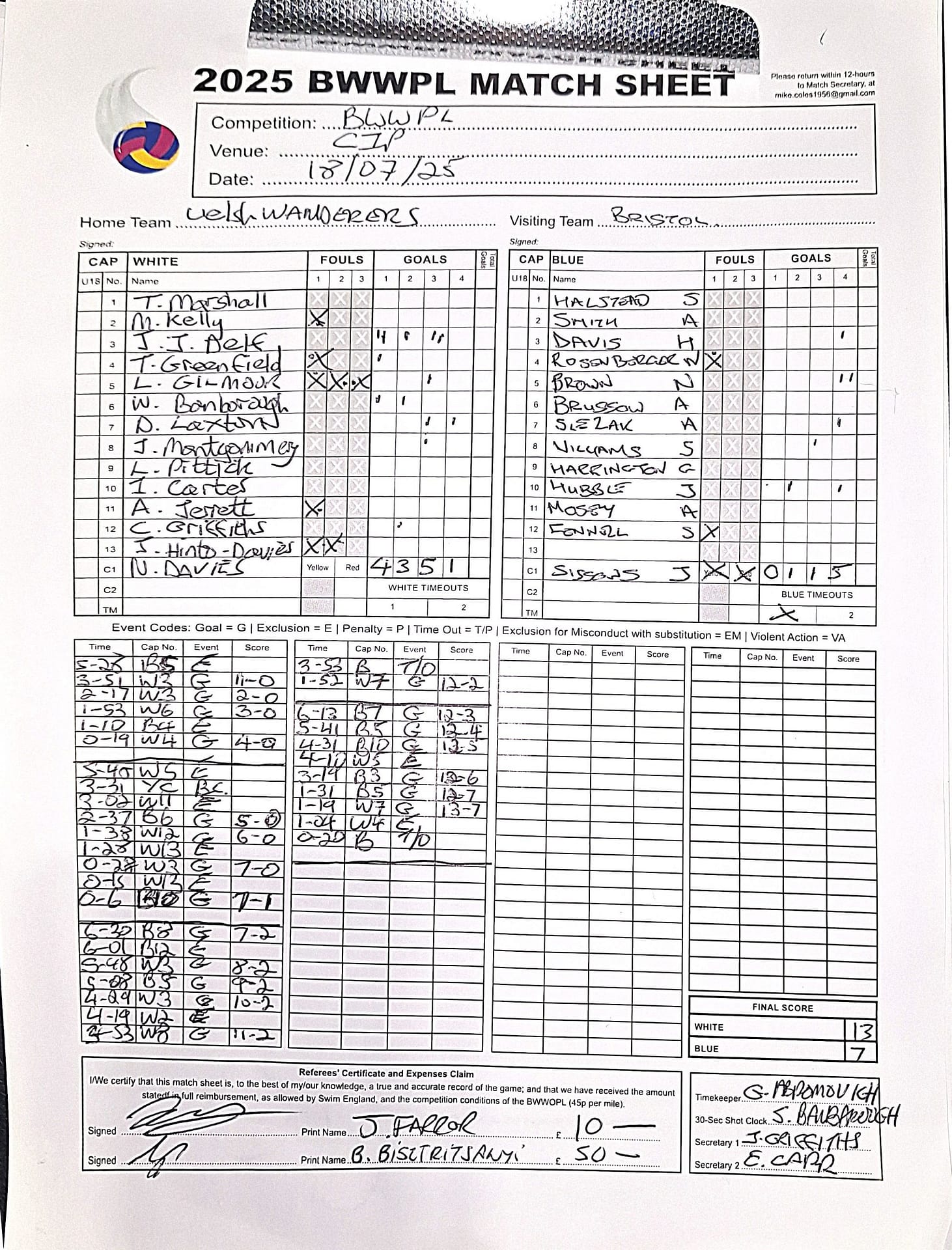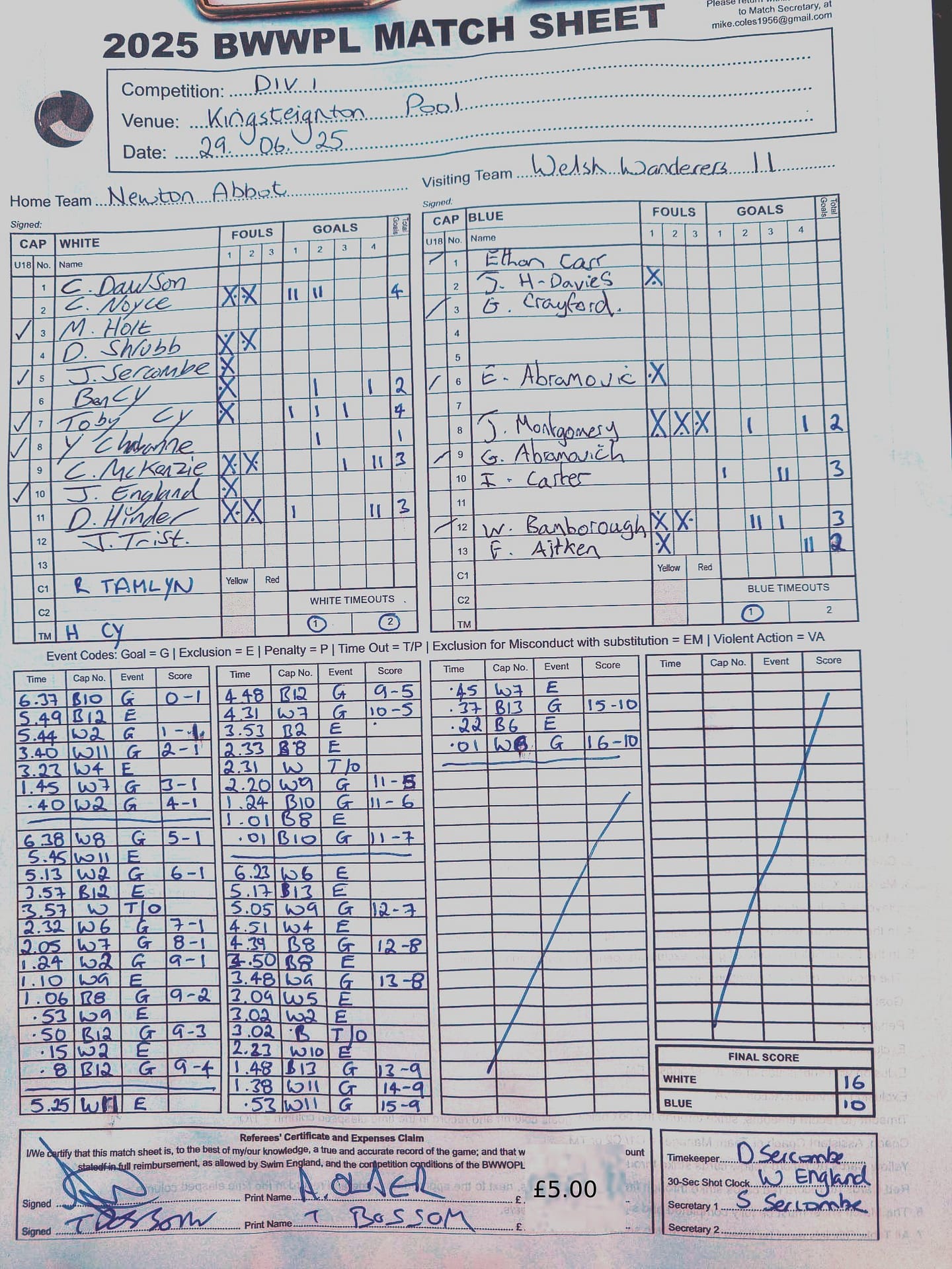 | Date | Home | Away | Time/Score | Pool | Division/Refs/Sheet | Mon, 24 Feb 25 | Bradford on Avon | Swansea | 11-8 | Bradford on Avon Swimming Pool | Match Sheet | Mon, 3 Mar 25 | Bradford on Avon | Swindon Dolphin | 12-12 | Bradford on Avon Swimming Pool | Match Sheet | Wed, 5 Mar 25 | Exeter Women | Welsh Wanderers Women | 14-8 | St Sidwell’s Point Leisure Centre, Exeter | Match Sheet | Wed, 5 Mar 25 | City of Newport | Welsh Wanderers | 8-30 | Newport International Pool | Match Sheet | Thr, 6 Mar 25 | City of Bristol | City of Bristol Barbarians | 18-9 | Hengrove Leisure Centre | Match Sheet | Tue, 11 Mar 25 | Devonport Royal Woman | Newton Abbot Women | 11-11 | Plymouth Life Centre | Match Sheet | Thr, 13 Mar 25 | City of Bristol Barbarians | City of Bristol | 11-12 | Hengrove Leisure Centre | Match Sheet | Tue, 18 Mar 25 | City of Bristol Women | City of Newport Women | 30-2 | Hengrove Leisure Centre | Match Sheet | Thr, 20 Mar 25 | City of Bristol Harlequins | Bradford on Avon | 12-5 | Hengrove Leisure Centre | Match Sheet | Sun, 23 Mar 25 | Swindon Dolphin | Bradford on Avon | 11-10 | Marlborough College Swimming Pool | Match Sheet | Sun, 23 Mar 25 | Weston-super-Mare | Newton Abbot | 10-8 | Hutton Moor Leisure Centre | Match Sheet | Mon, 24 Mar 25 | Bradford on Avon | City of Newport II | 5-0 | Bradford on Avon Swimming Pool | Cancelled by City of Newport II | Tue, 25 Mar 25 | Swansea | City of Bristol | 43 (32) - 25 | Wales National Pool, Swansea | Match Sheet | Tue, 25 Mar 25 | City of Bristol Women | Welsh Wanderers Women | 12-3 | Hengrove Leisure Centre | Match Sheet | Thr, 27 Mar 25 | City of Bristol Barbarians | Welsh Wanderers | 9-17 | Hengrove Leisure Centre | Match Sheet | Thr, 27 Mar 25 | Exeter Women | City of Newport Women | 5-0 | St Sidwell’s Point Leisure Centre, Exeter | Cancelled by City of Newport | Tue, 1 Apr 25 | Welsh Wanderers Women | Exeter Women | 12-19 | Cardiff International Pool | Match Sheet | Wed, 2 Apr 25 | City of Newport | City of Bristol | 10-14 | Newport International Pool | Match Sheet | Thr, 3 Apr 25 | City of Bristol Harlequins | Swansea | 10-9 | Hengrove Leisure Centre | Match Sheet | Sun, 6 Apr 25 | Weston-super-Mare | Welsh Wanderers II | 16-11 | Hutton Moor Leisure Centre | Match Sheet | Tue, 8 Apr 25 | Exeter | Devonport Royal | 21-12 | St Sidwell’s Point Leisure Centre, Exeter | Match Sheet | Sat, 12 Apr 25 | City of Newport II | Swindon Dolphin | 13-15 | Newport International Pool | Match Sheet | Thr, 17 Apr 25 | Welsh Wanderers II | Devonport Royal | 20-19 | Cardiff International Pool | Match Sheet | Tue, 22 Apr 25 | Devonport Royal Woman | Exeter Women | 7-19 | Plymouth Life Centre | Match Sheet | Wed, 23 Apr 25 | City of Newport | City of Bristol Barbarians | 13-11 | Newport International Pool | Match Sheet | Thr, 24 Apr 25 | City of Bristol Women | Newton Abbot Women | 33-6 | Hengrove Leisure Centre | Match Sheet | Sat, 26 Apr 25 | Devonport Royal Woman | Welsh Wanderers Women | 5-27 | Plymouth Life Centre | Match Sheet | Sun, 27 Apr 25 | Swindon Dolphin | Bradford on Avon | 12-14 | Marlborough College Swimming Pool | Match Sheet | Wed, 30 Apr 25 | Exeter Women | Newton Abbot Women | 24-9 | St Sidwell’s Point Leisure Centre, Exeter | Match Sheet | Thr, 1 May 25 | Welsh Wanderers II | Exeter | 17-21 | Cardiff International Pool | Match Sheet | Thr, 1 May 25 | City of Bristol Harlequins | City of Newport II | 14-12 | Hengrove Leisure Centre | Match Sheet | Thr, 8 May 25 | Welsh Wanderers II | Weston-super-Mare | 15-10 | Cardiff International Pool | Match Sheet | Thr, 8 May 25 | Frome | City of Bristol | 12-17 | Frome Sports and Fitness Centre | Match Sheet | Sat, 10 May 25 | Devonport Royal Woman | City of Newport Women | 5-0 | Plymouth Life Centre | Match cancelled by City of Newport | Tue, 13 May 25 | Swansea | City of Newport II | 12-10 | Wales National Pool, Swansea | Match Sheet | Tue, 13 May 25 | Exeter | Frome | 22 - 20 (6) | St Sidwell’s Point Leisure Centre, Exeter | Match Sheet | Thr, 15 May 25 | City of Bristol Barbarians | City of Newport | 15-8 | Hengrove Leisure Centre | Match Sheet | Sun, 18 May 25 | Swindon Dolphin | Swansea | 6-17 | Marlborough College Swimming Pool | Match Sheet | Sun, 18 May 25 | Weston-super-Mare | Devonport Royal | 6-14 | Hutton Moor Leisure Centre | Match Sheet | Tue, 20 May 25 | Exeter | Newton Abbot | 14-1 | St Sidwell’s Point Leisure Centre, Exeter | Match Sheet | Thr, 22 May 25 | Frome | City of Bristol Barbarians | 11-13 | Frome Sports and Fitness Centre | Match Sheet | Sun, 1 Jun 25 | Weston-super-Mare | Exeter | 12-12 | Hutton Moor Leisure Centre | Match Sheet | Thr, 5 Jun 25 | City of Bristol | Frome | 25-11 | Hengrove Leisure Centre | Match Sheet | Tue, 10 Jun 25 | Welsh Wanderers Women | City of Newport Women | 5-0 | Cardiff International Pool | Cancelled by City of Newport | Thr, 12 Jun 25 | City of Bristol Harlequins | Swindon Dolphin | 10-9 | Hengrove Leisure Centre | Match Sheet | Mon, 16 Jun 25 | Welsh Wanderers II | Newton Abbot | 25-11 | Cardiff International Pool | Match Sheet | Tue, 17 Jun 25 | Devonport Royal | Welsh Wanderers II | 16-14 | Plymouth Life Centre | Match Sheet | Thr, 19 Jun 25 | City of Bristol Barbarians | Frome | 19-13 | Hengrove Leisure Centre | Match Sheet | Sat, 21 Jun 25 | City of Newport II | Swansea | 3-10 | Newport International Pool | Match Sheet | Sun, 22 Jun 25 | Swindon Dolphin | City of Bristol Harlequins | 12-4 | Marlborough College Swimming Pool | Match Sheet | Sun, 22 Jun 25 | Newton Abbot Women | Welsh Wanderers Women | 8-17 | Kingsteignton Swimming Pool | Match Sheet | Sun, 22 Jun 25 | Newton Abbot | Exeter | 9-16 | Kingsteignton Swimming Pool | Match Sheet | Sun, 29 Jun 25 | Swindon Dolphin | City of Newport II | 11-10 | Marlborough College Swimming Pool | Match Sheet | Sun, 29 Jun 25 | Newton Abbot | Welsh Wanderers II | 16-10 | Kingsteignton Swimming Pool | Match Sheet | Sun, 29 Jun 25 | Weston-super-Mare | City of Newport | 14 (
