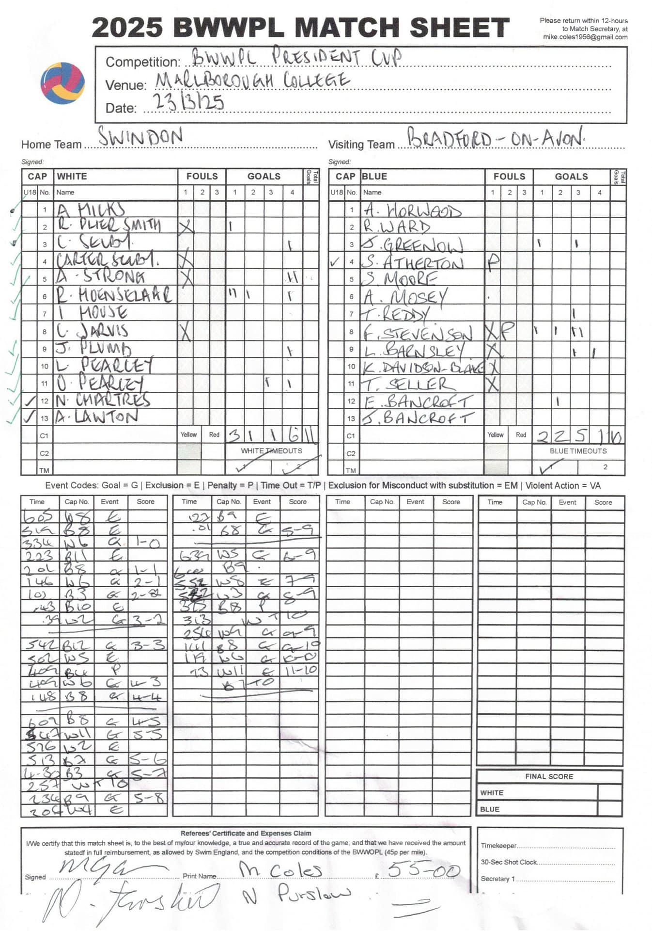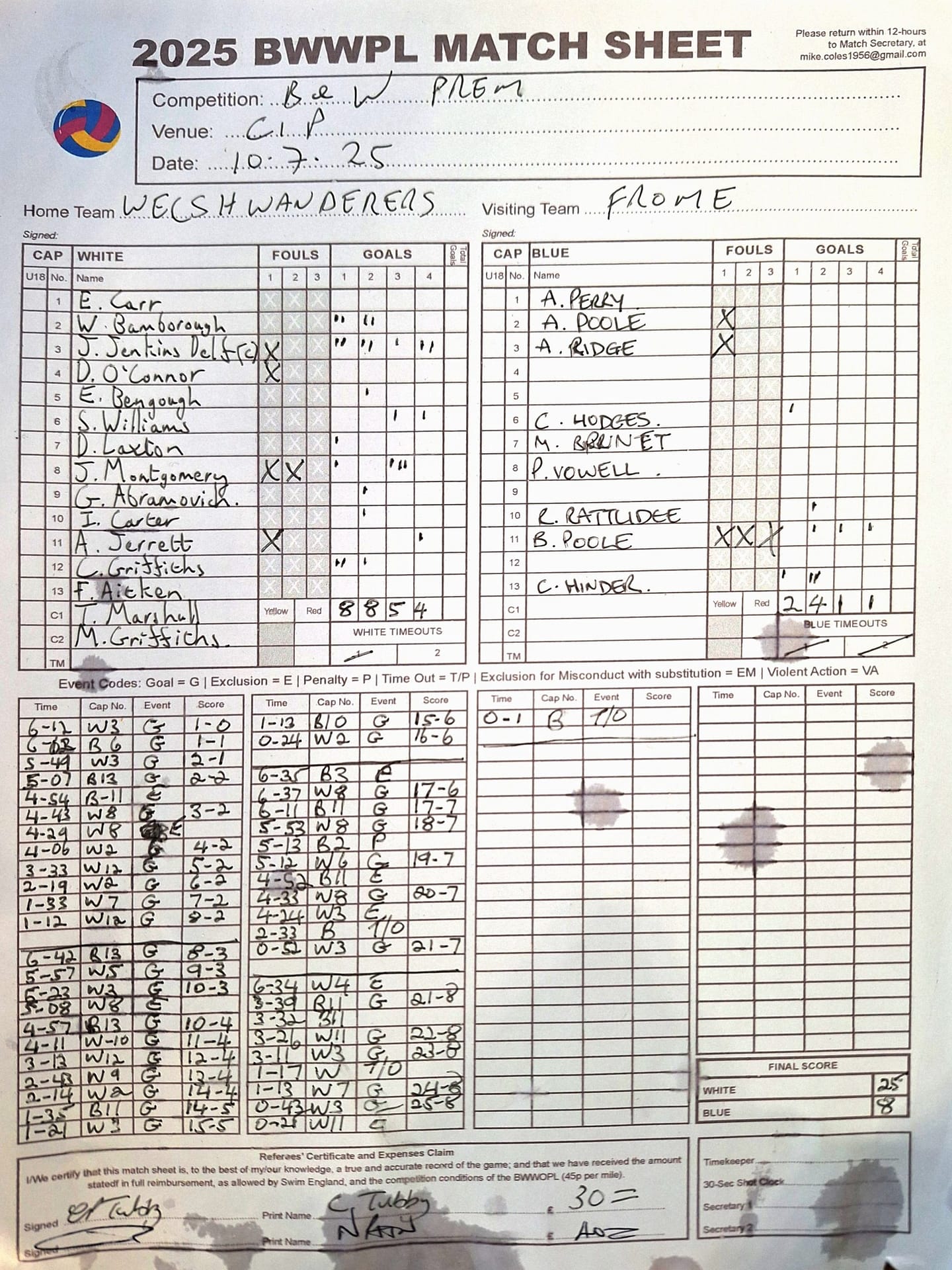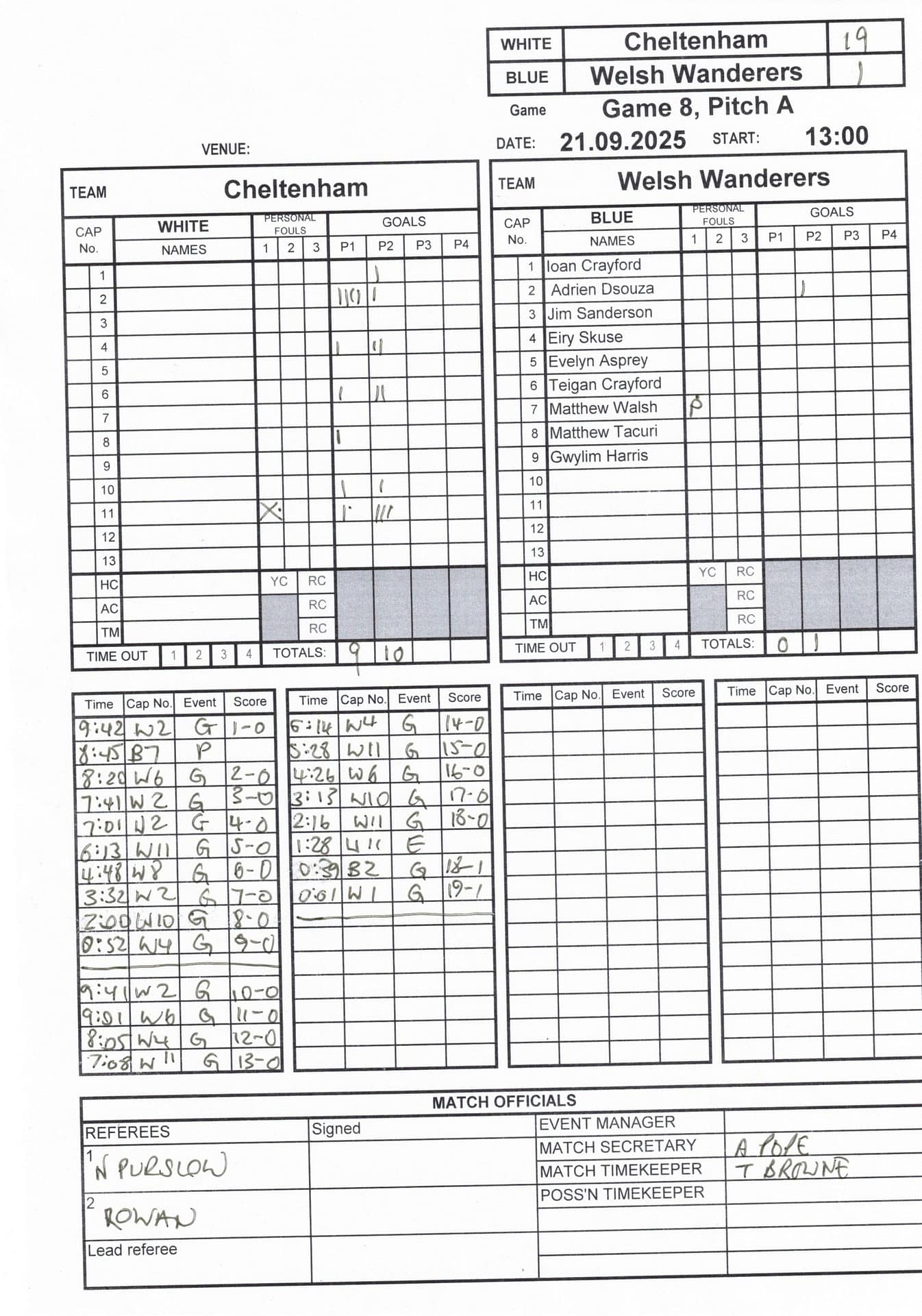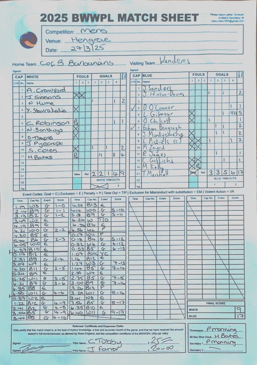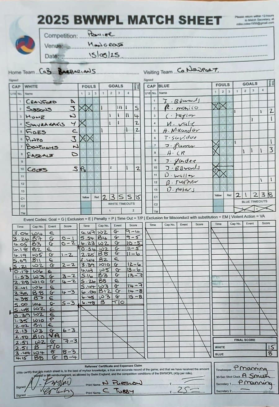 Match Sheets for 2025 can be downloaded here, or by clicking on the names of the referees below.