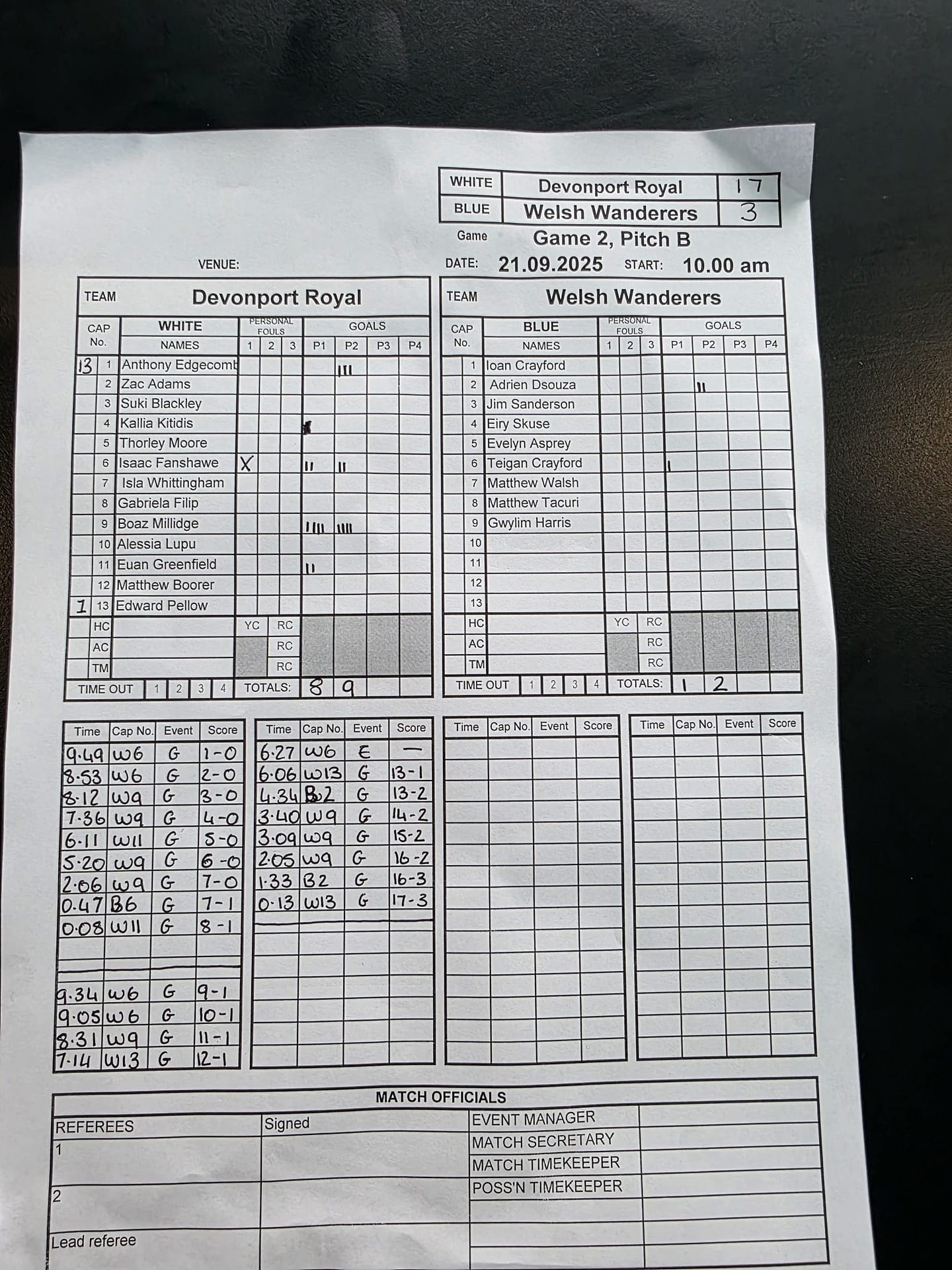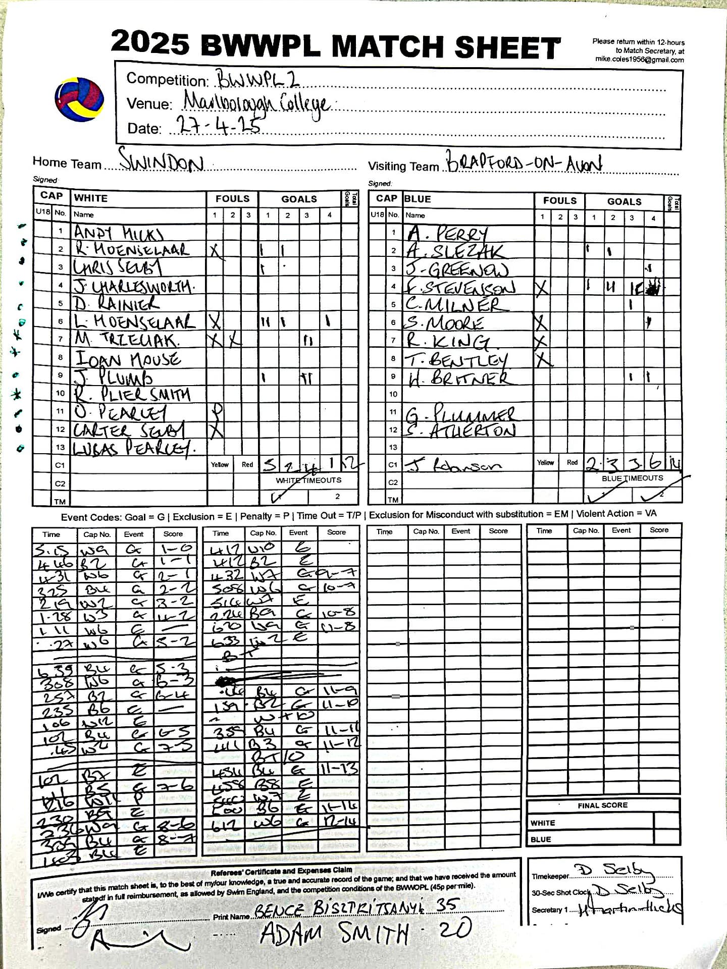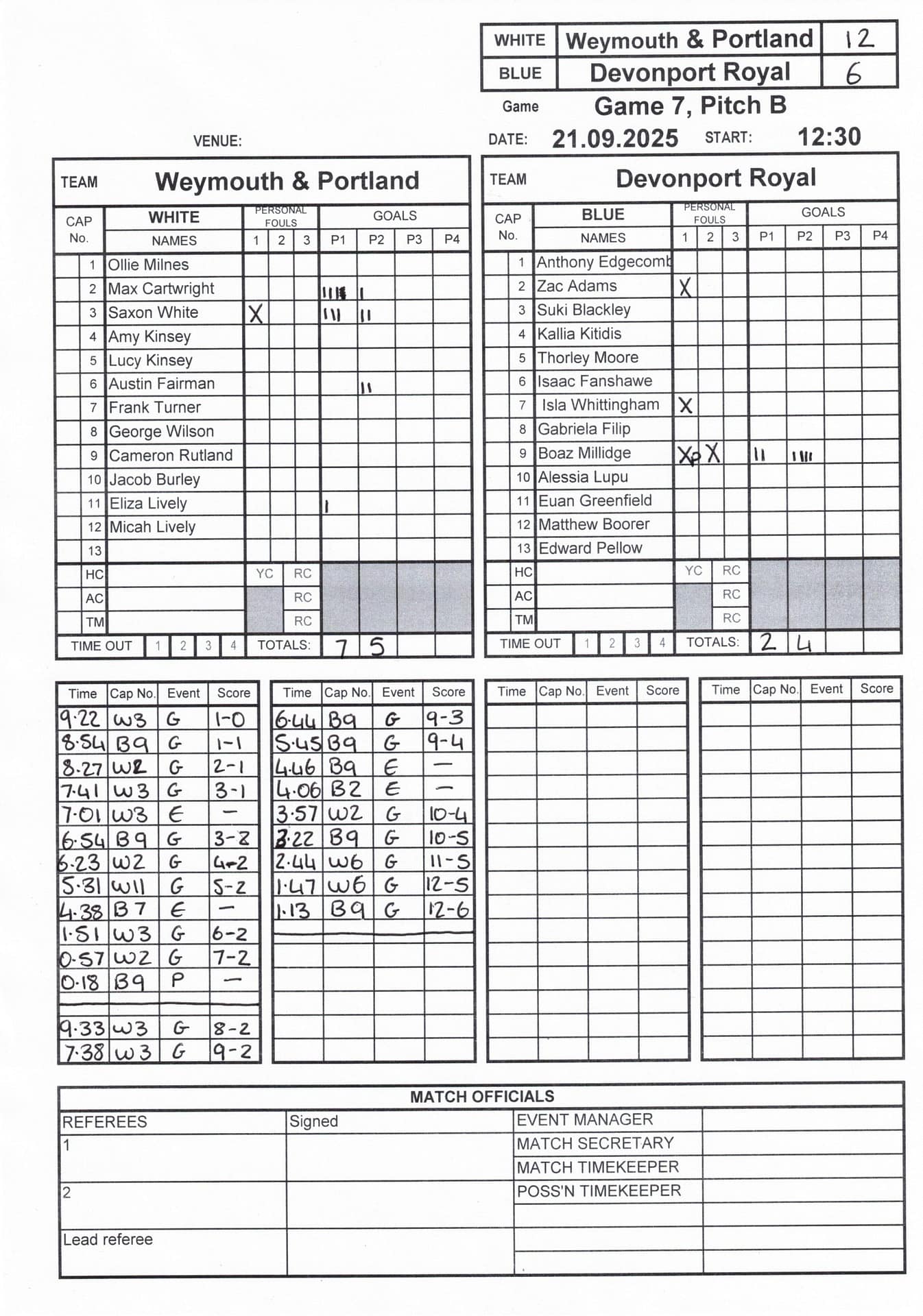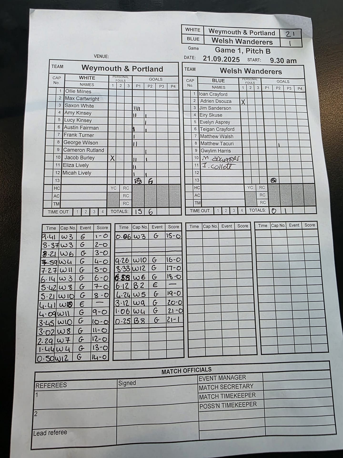 Match Sheets for 2025 can be downloaded here, or by clicking on the names of the referees below.