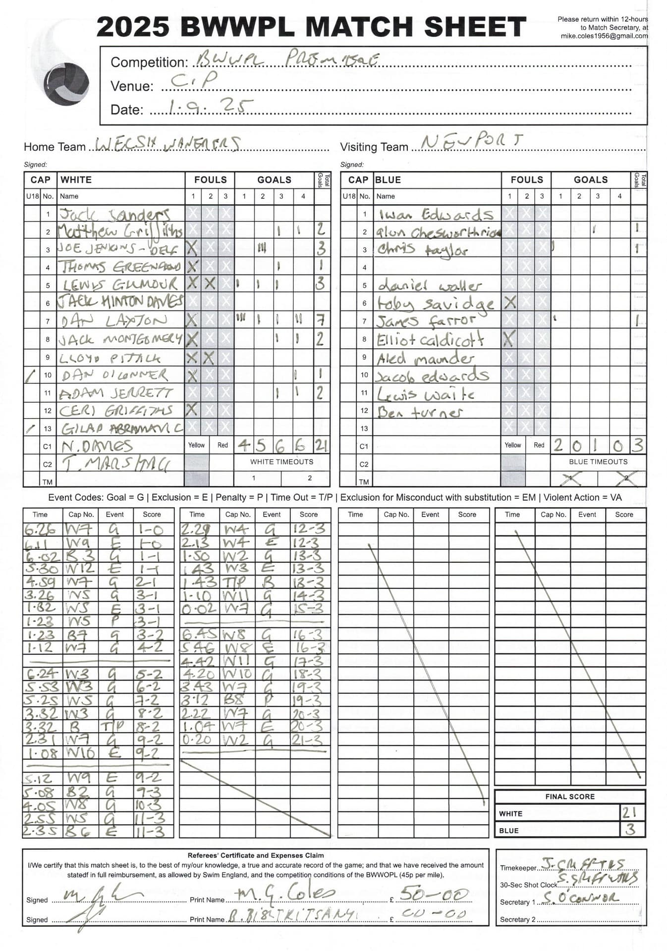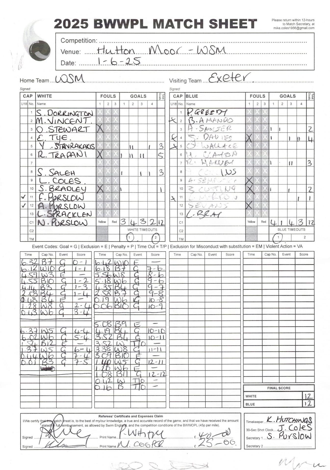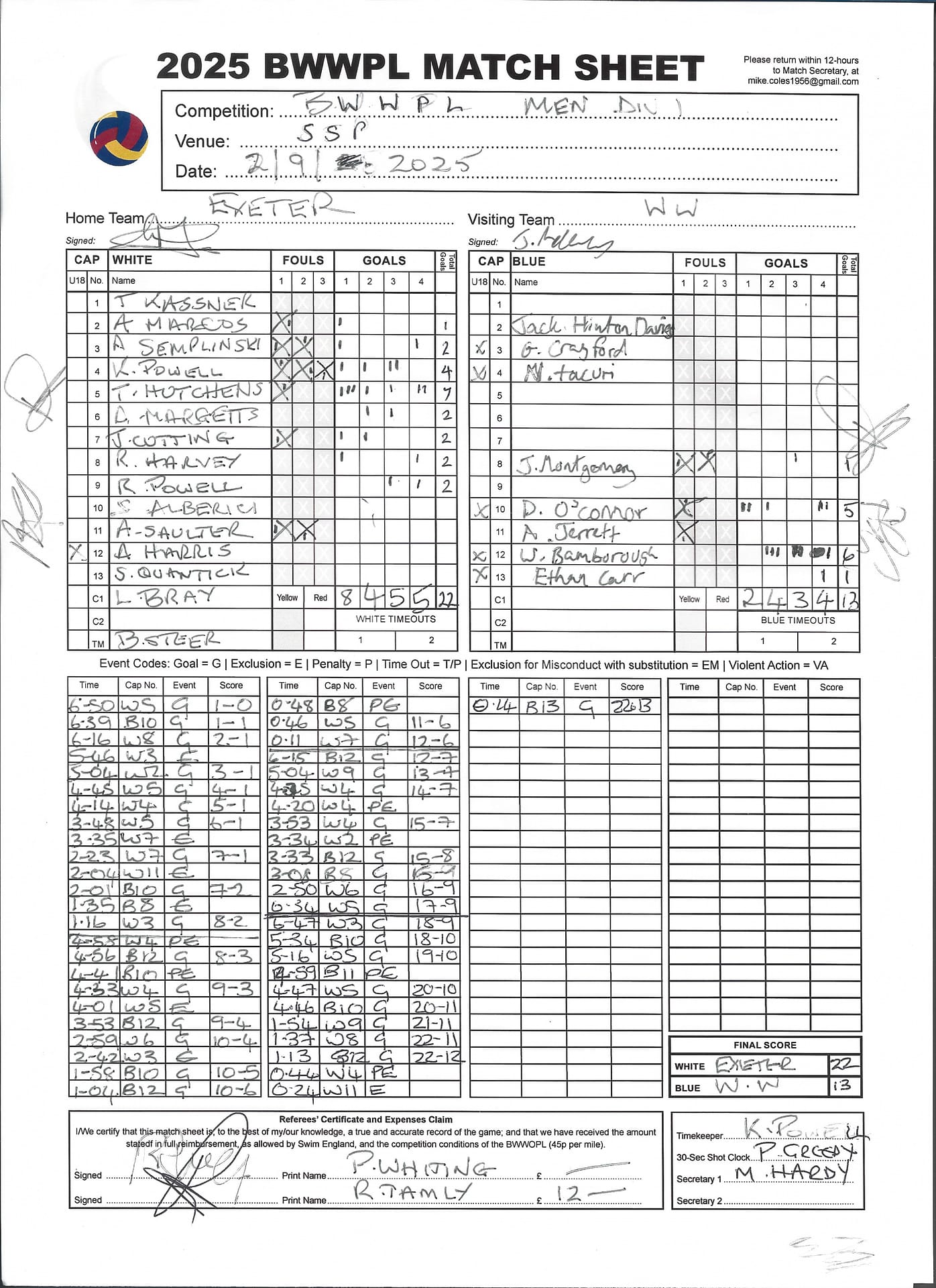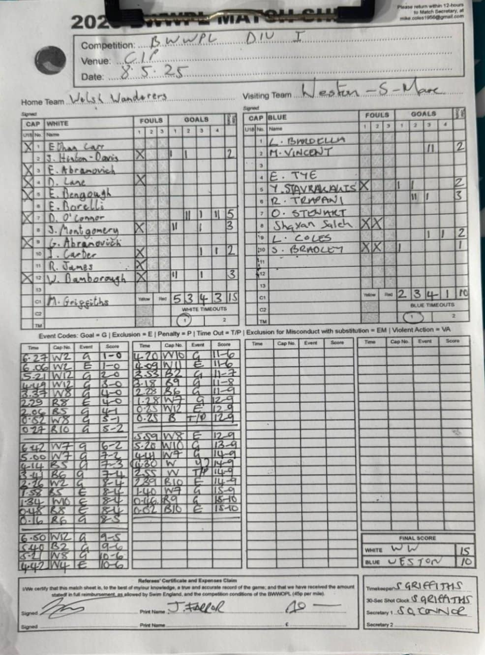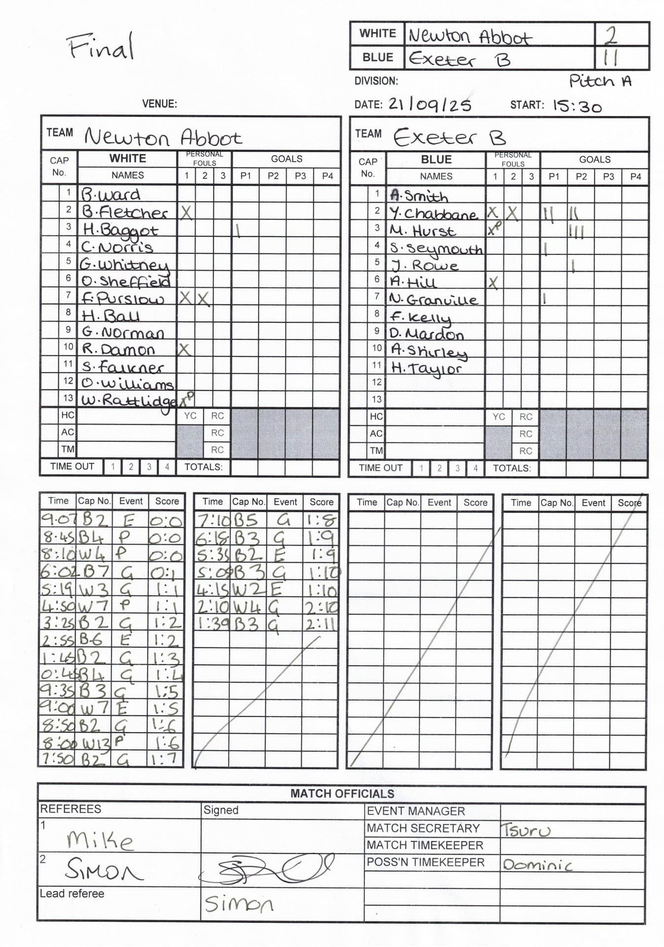 Match Sheets for 2025 can be downloaded here, or by clicking on the names of the referees below.