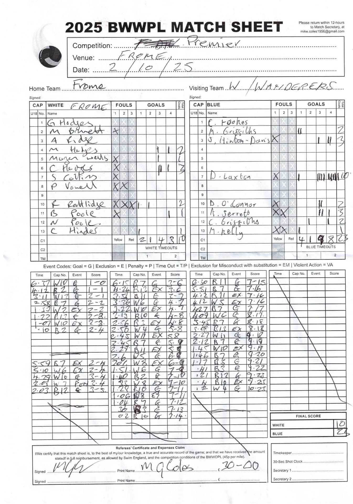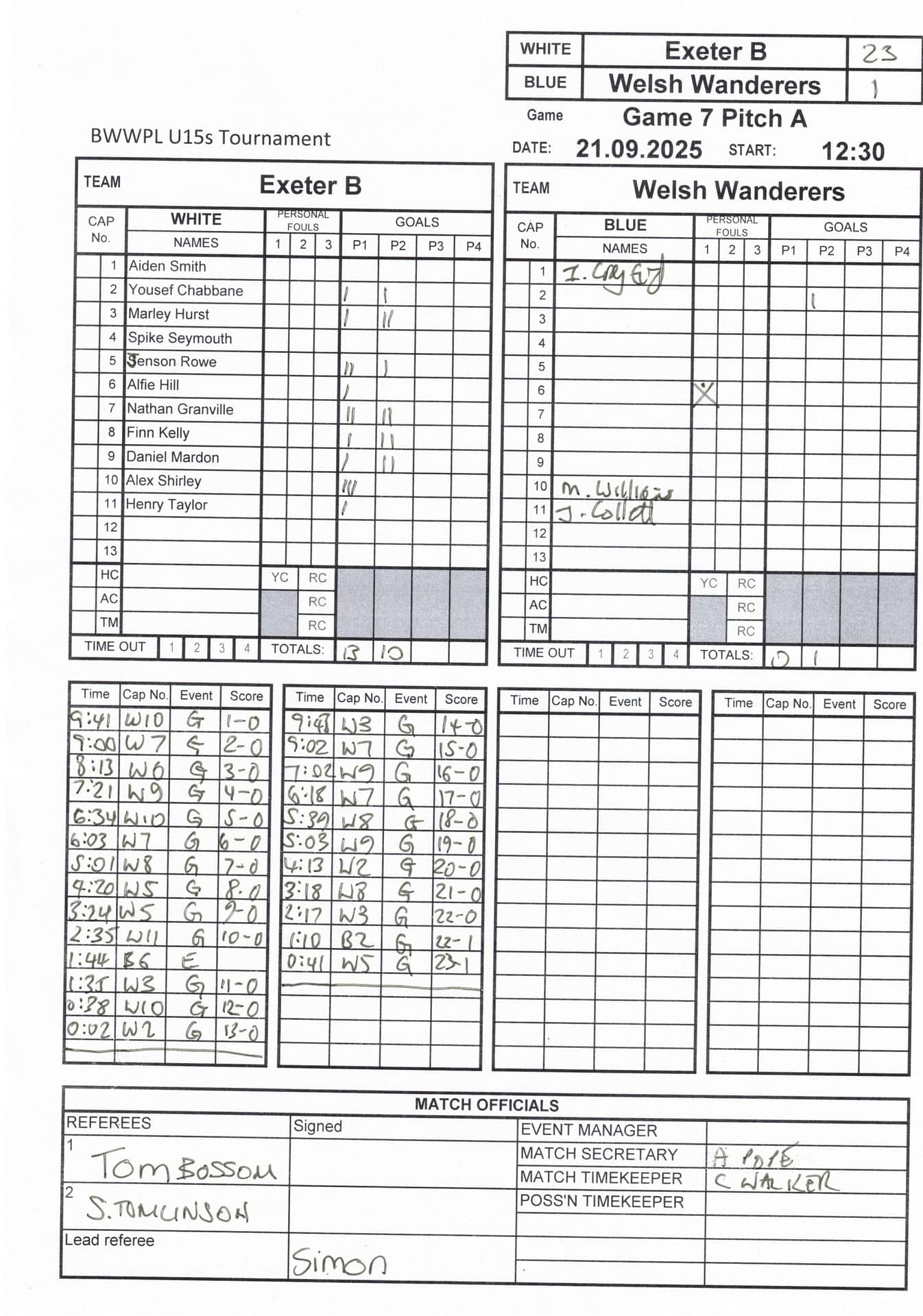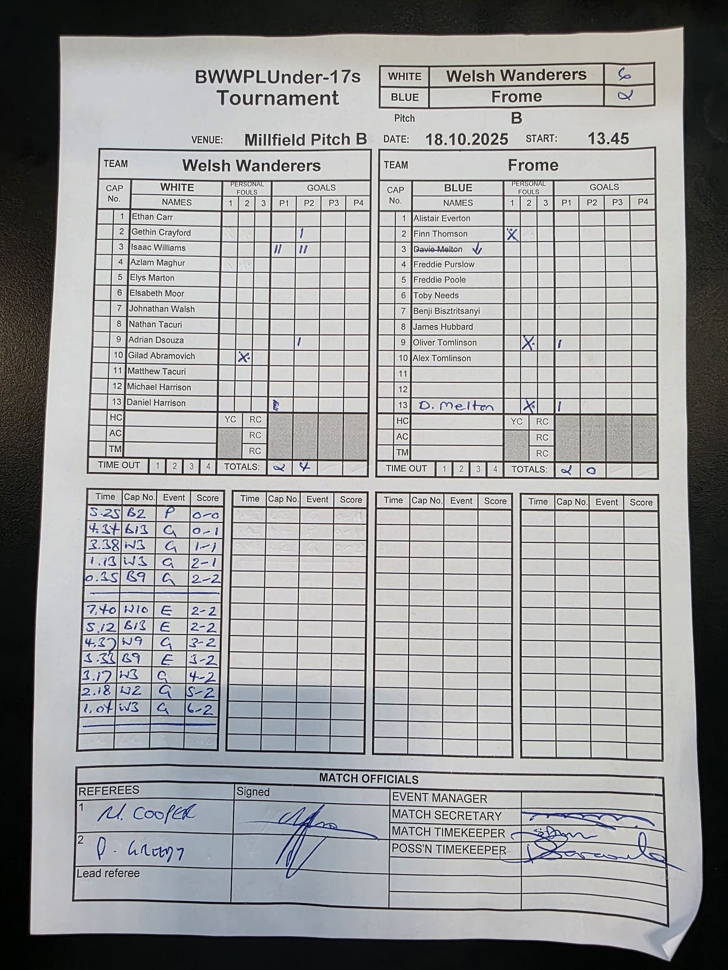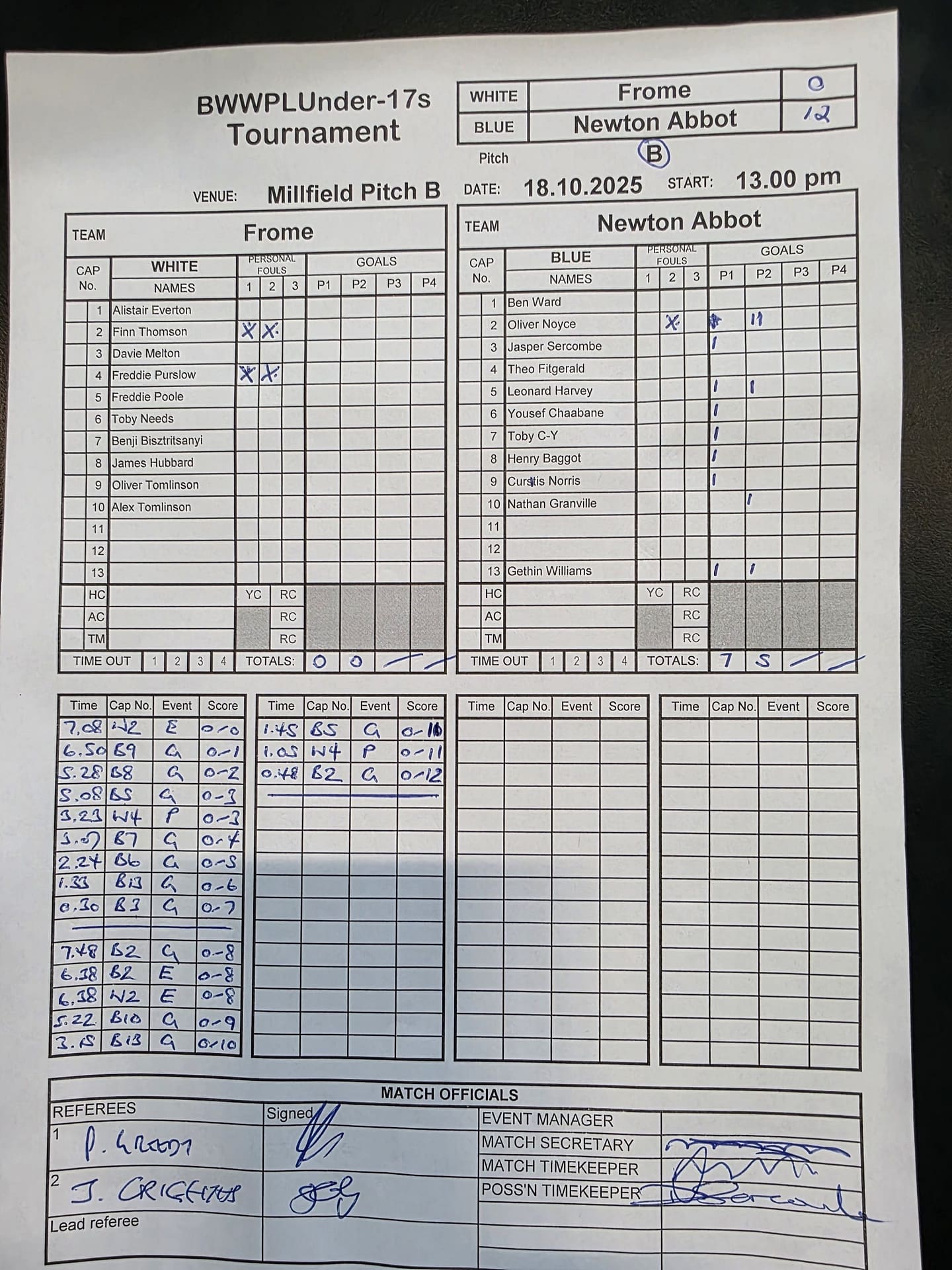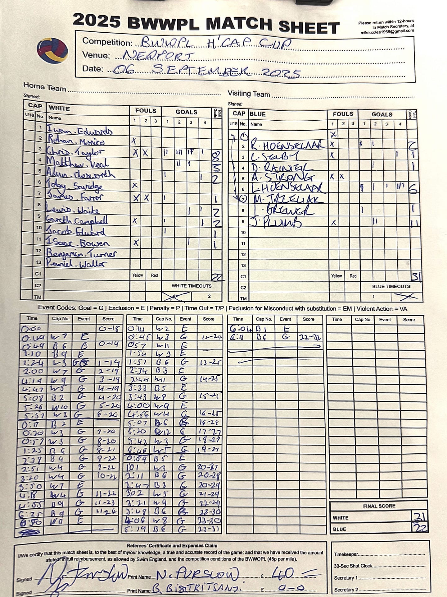 Match Sheets for 2025 can be downloaded here, or by clicking on the names of the referees below.