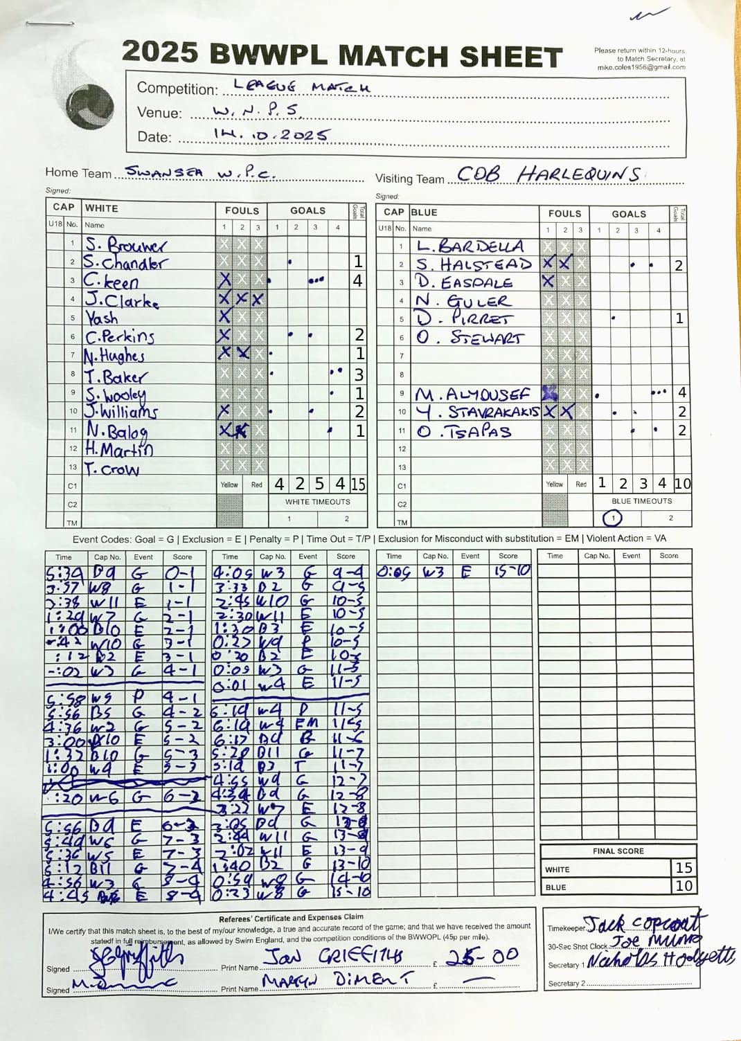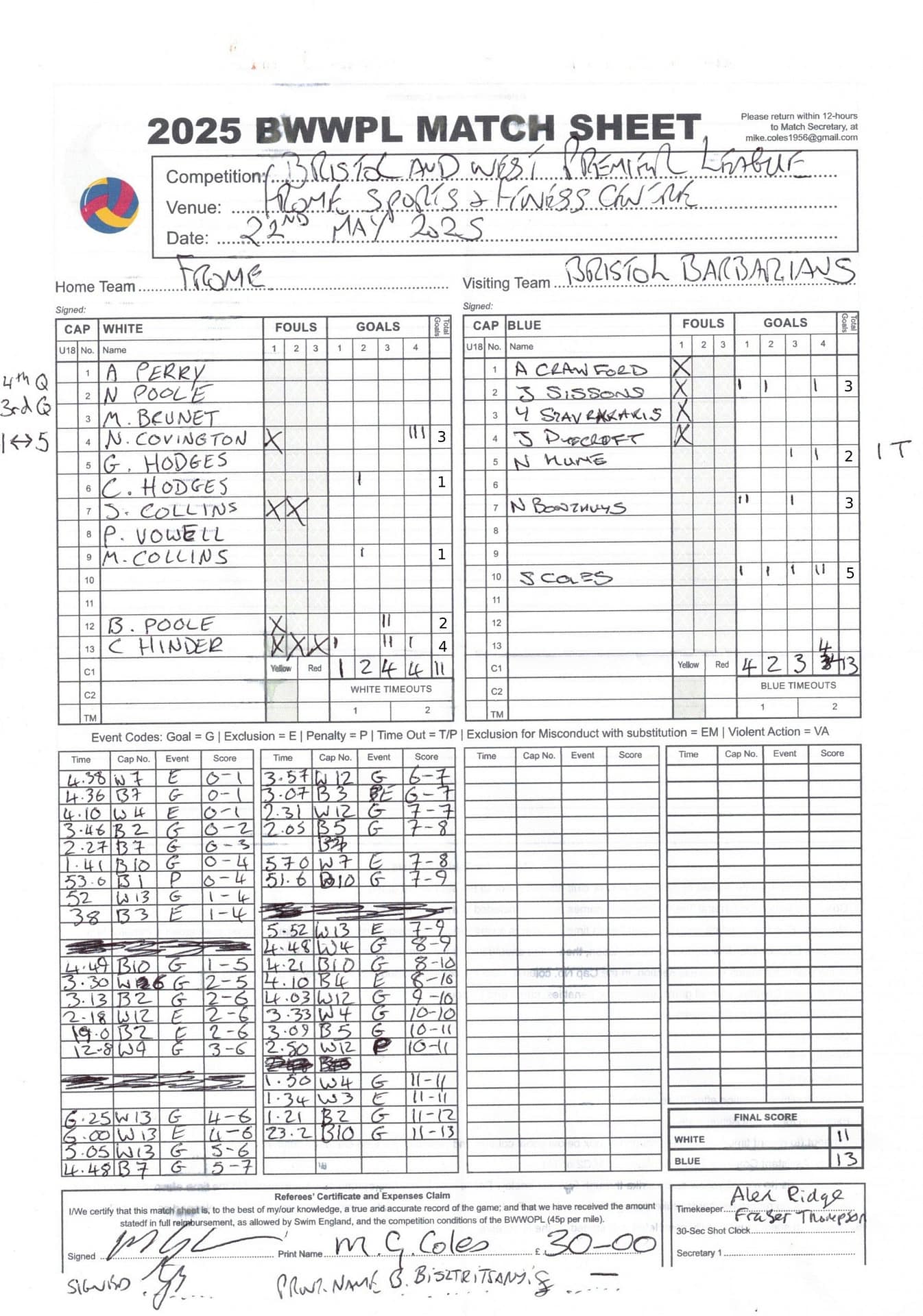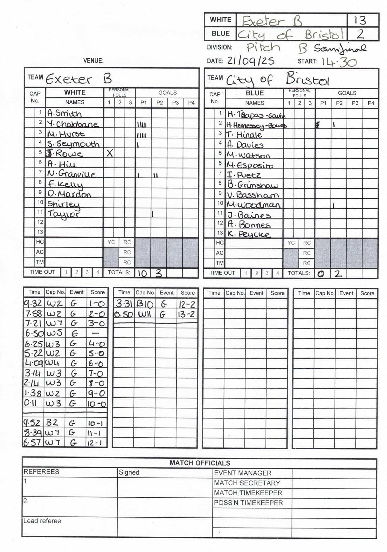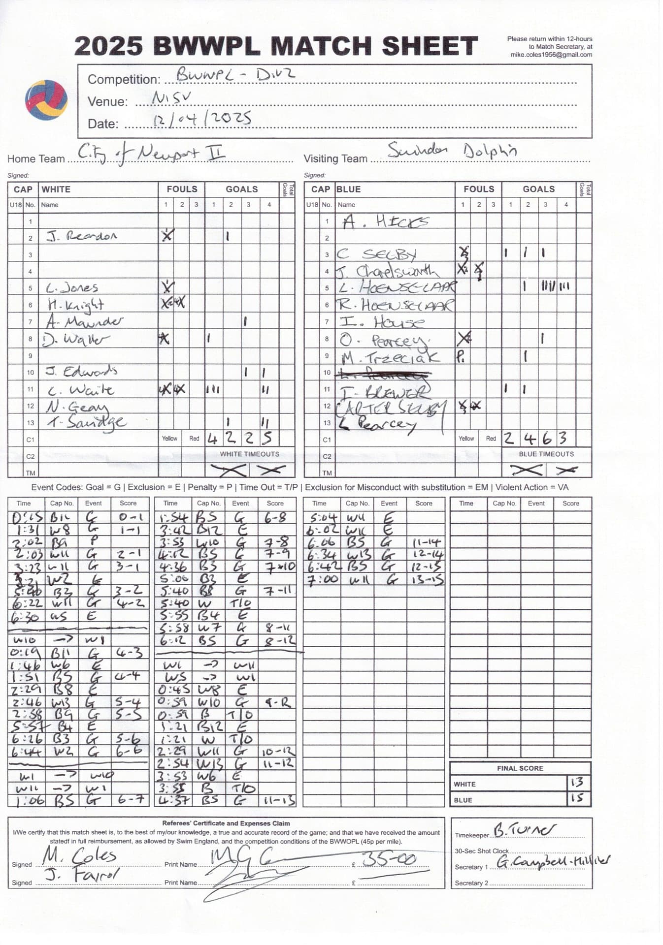 Match Sheets for 2025 can be downloaded here, or by clicking on the names of the referees below.