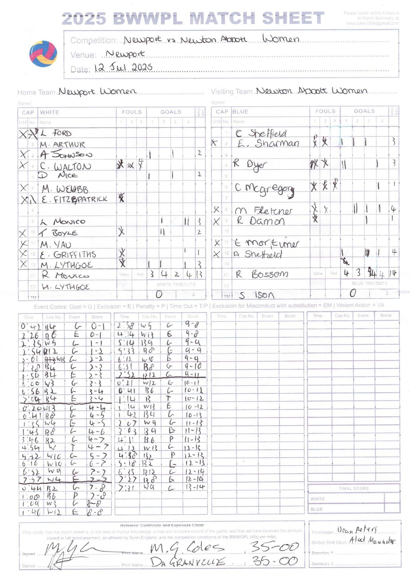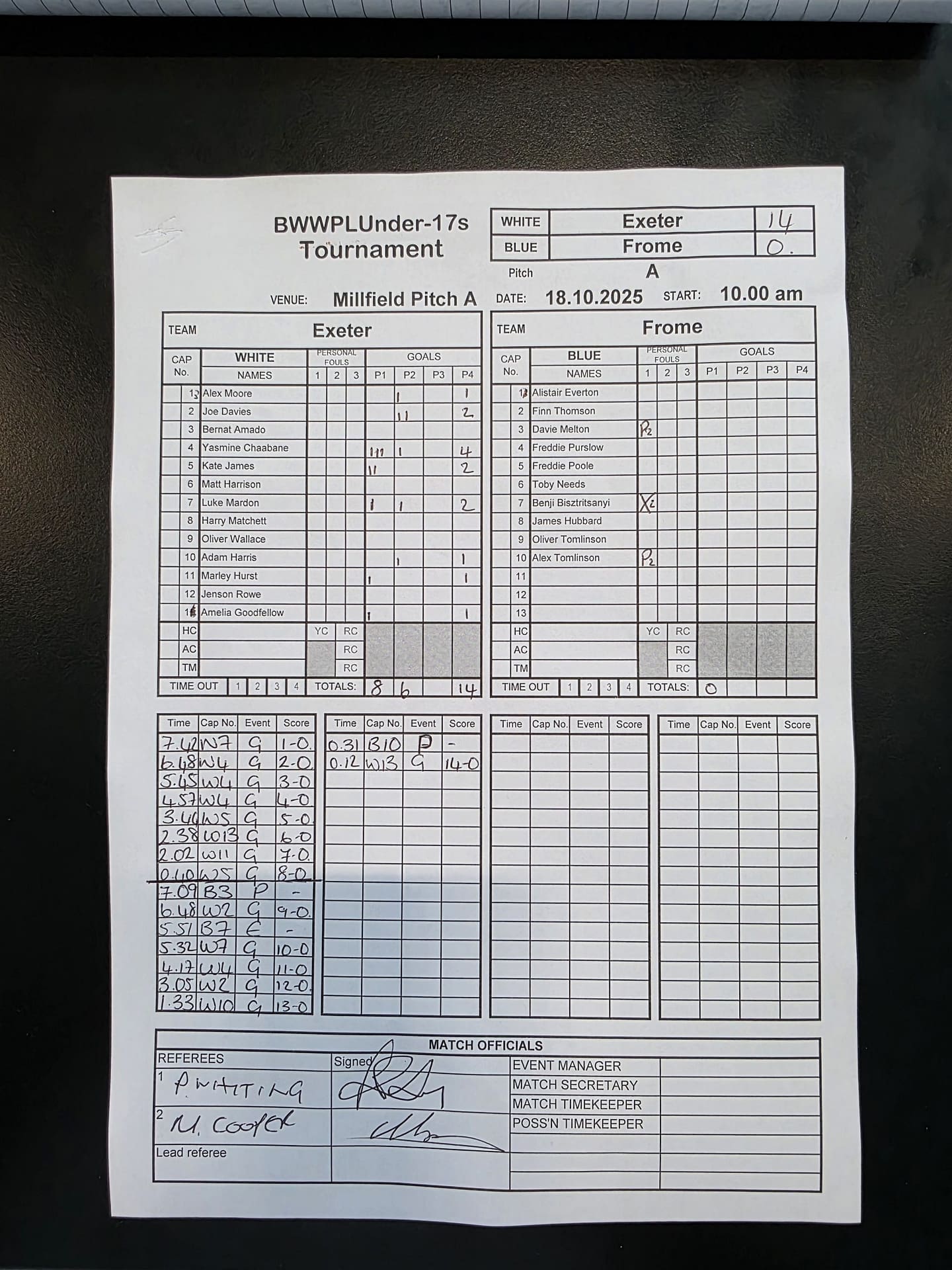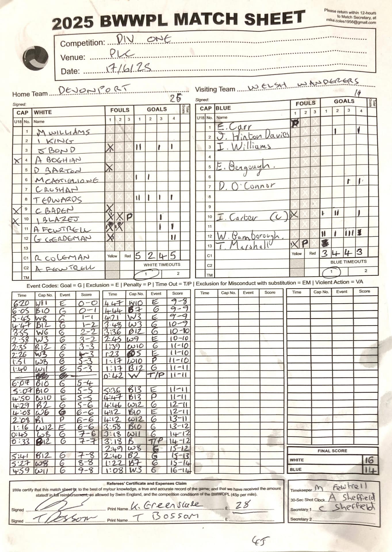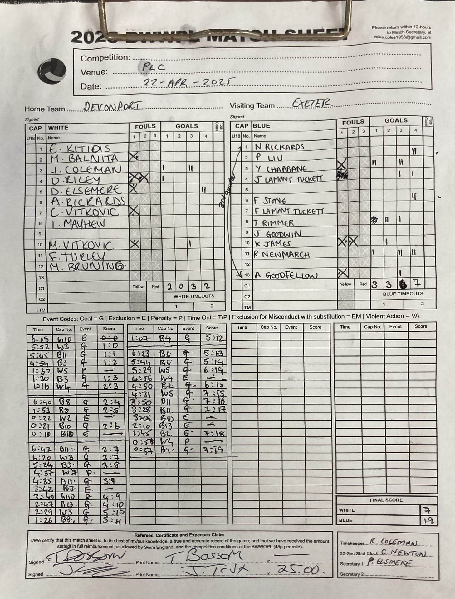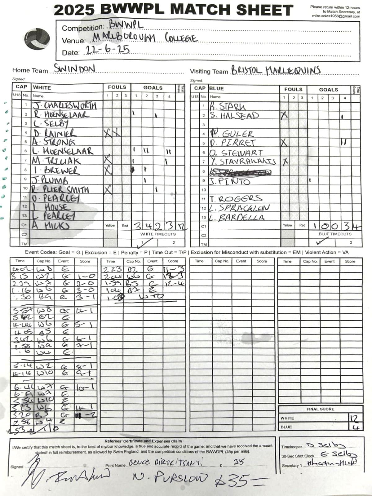 Match Sheets for 2025 can be downloaded here, or by clicking on the names of the referees below.