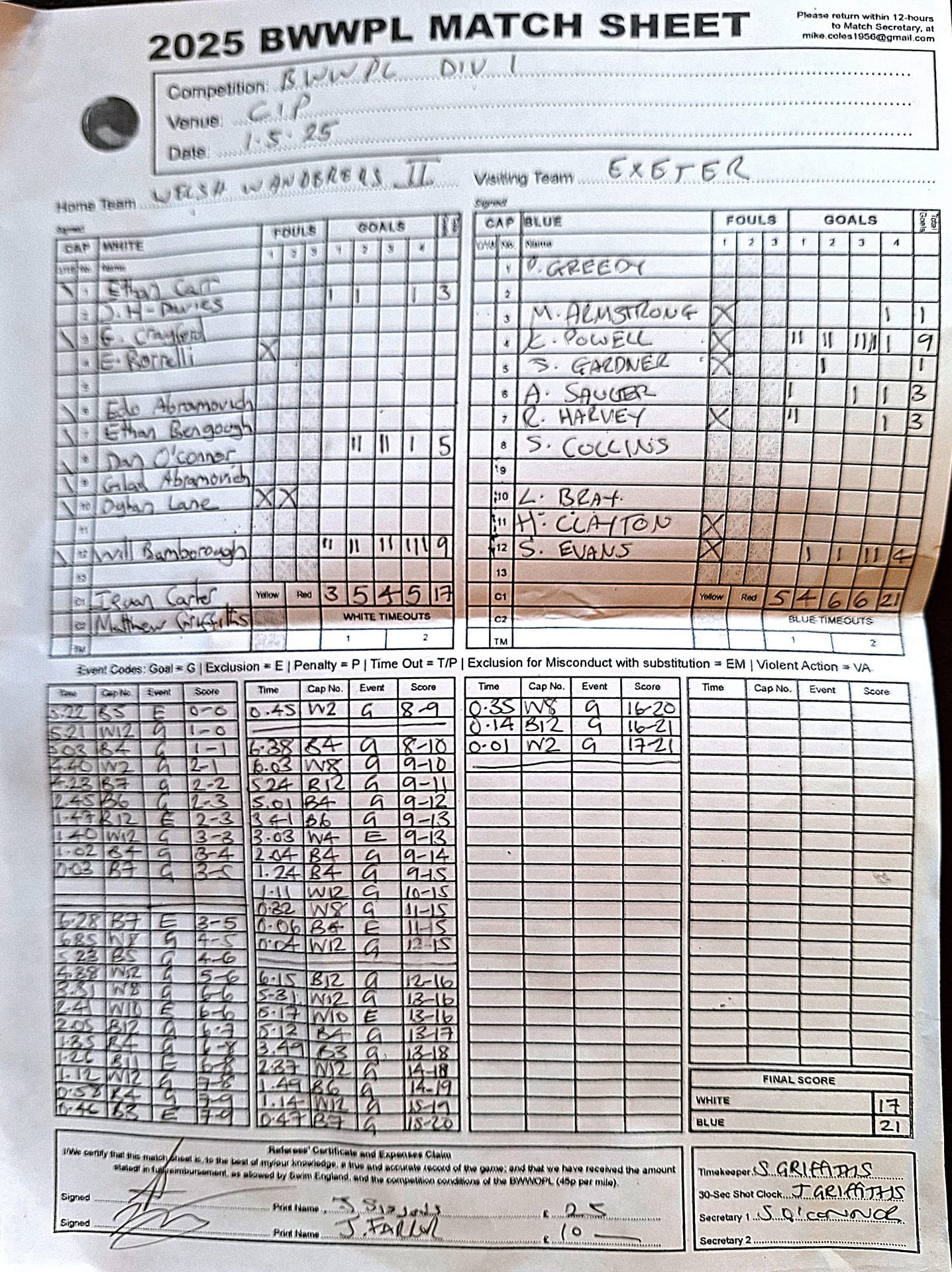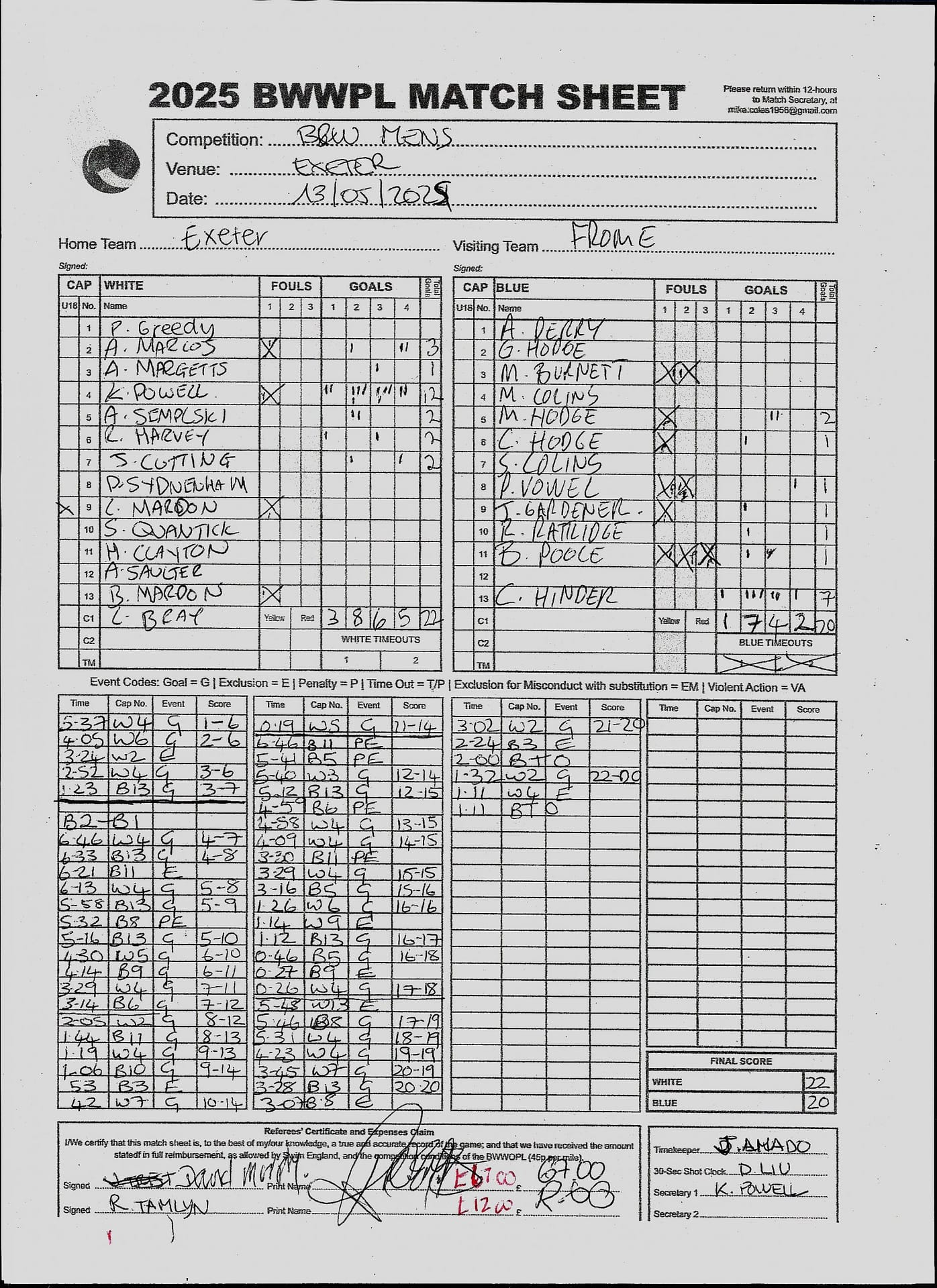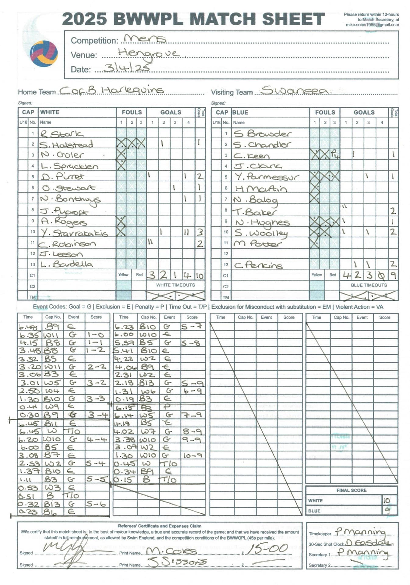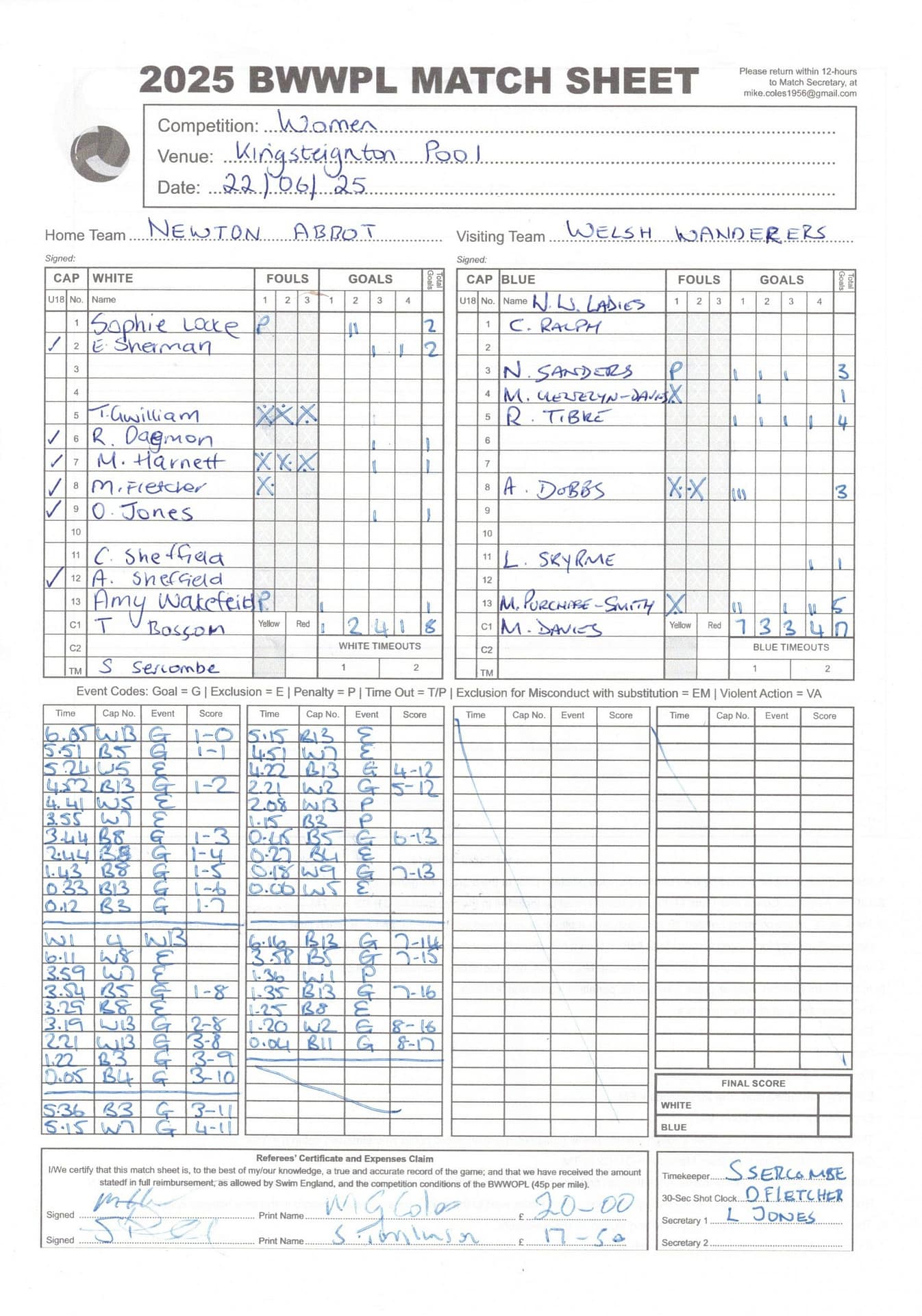 Match Sheets for 2025 can be downloaded here, or by clicking on the names of the referees below.