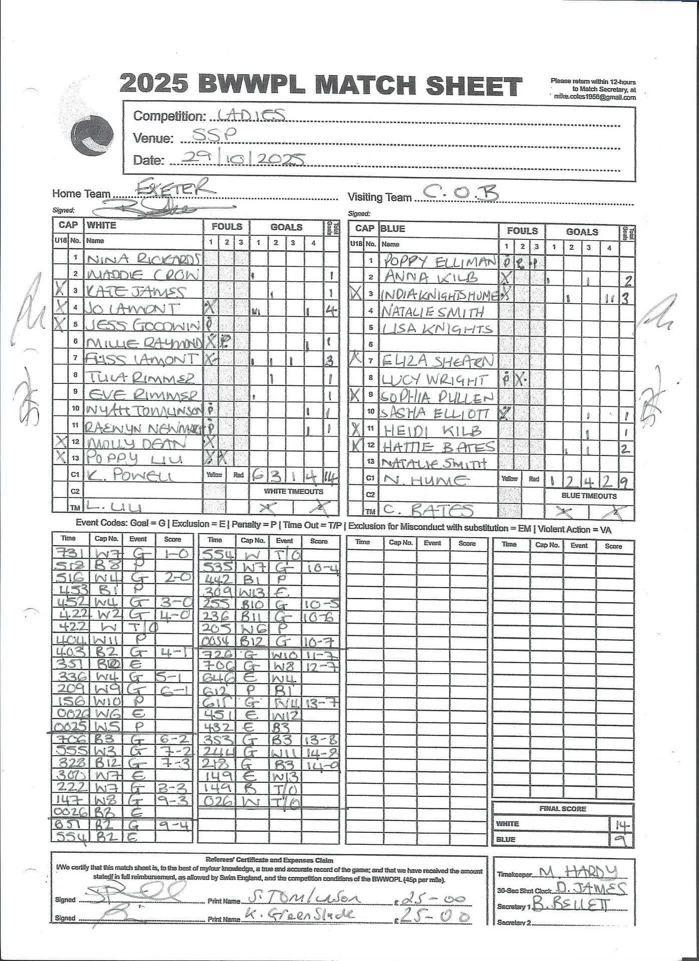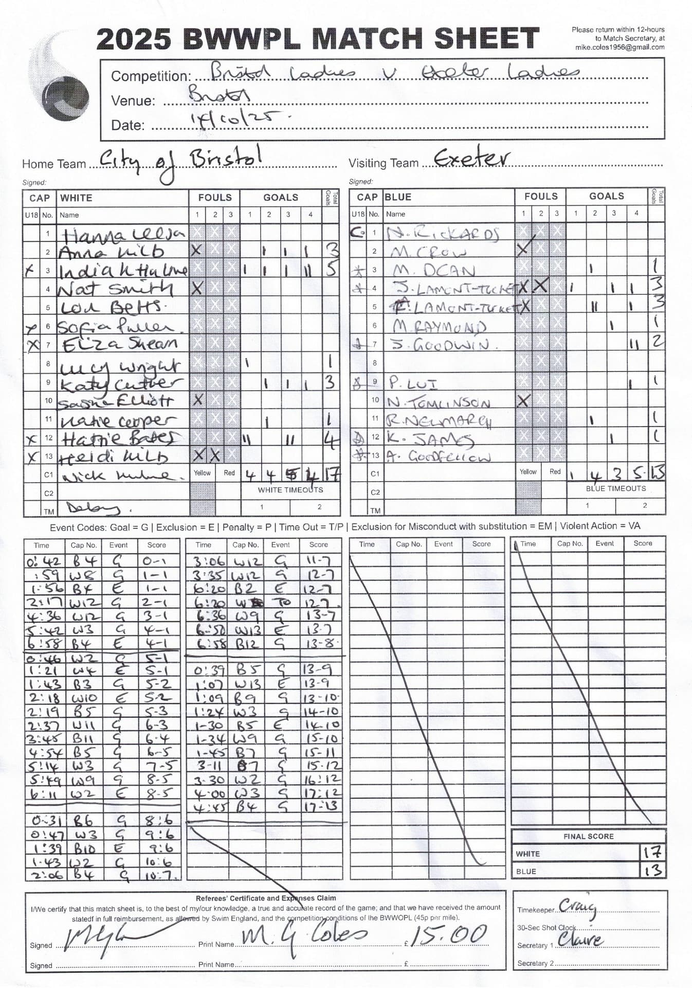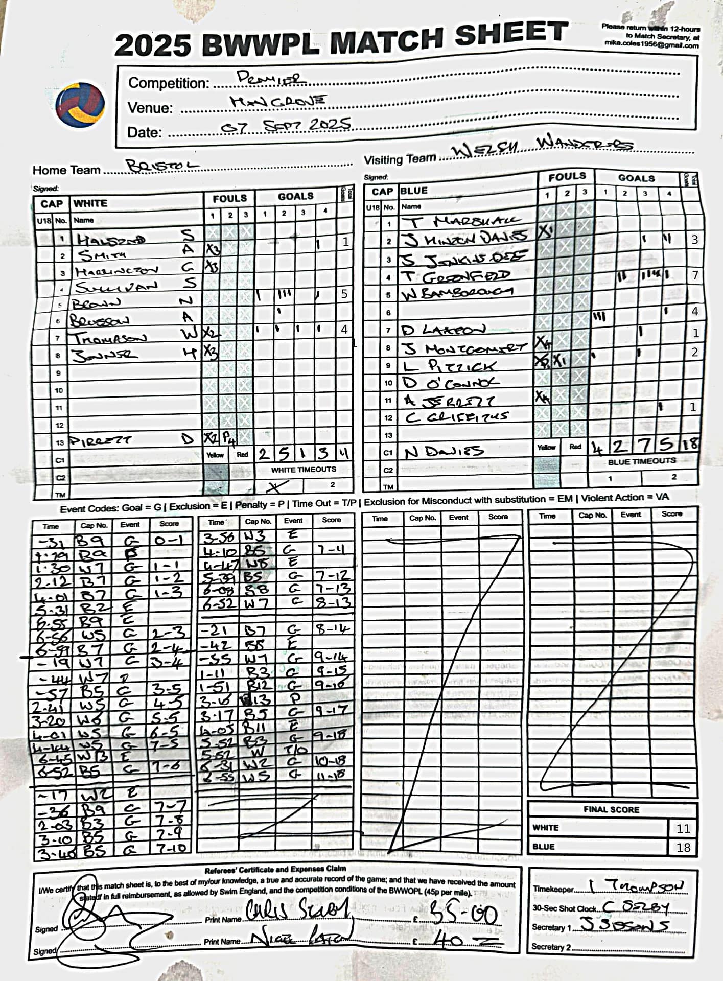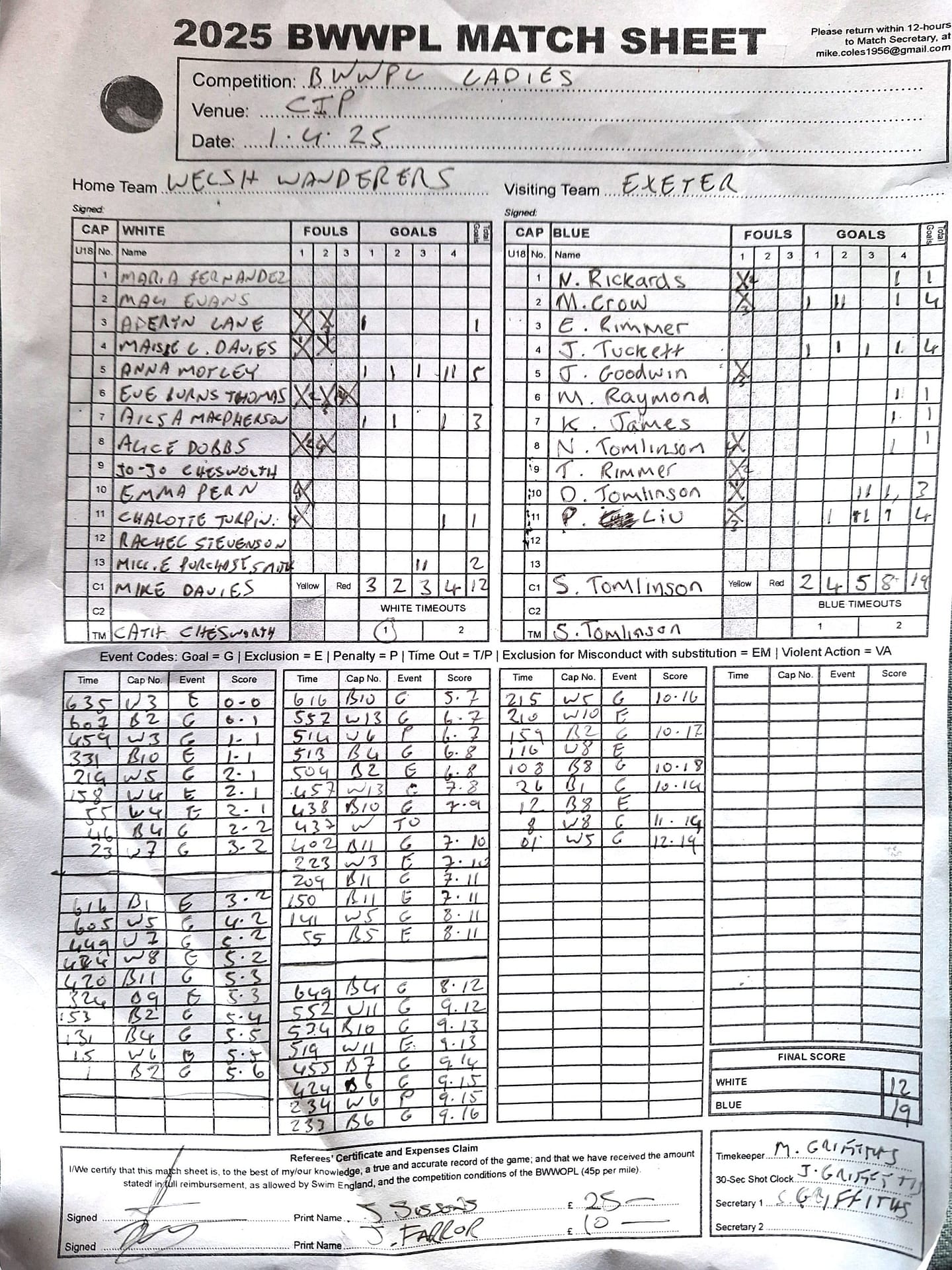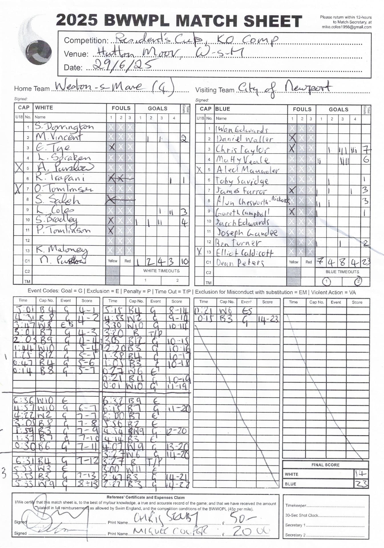 Match Sheets for 2025 can be downloaded here, or by clicking on the names of the referees below.