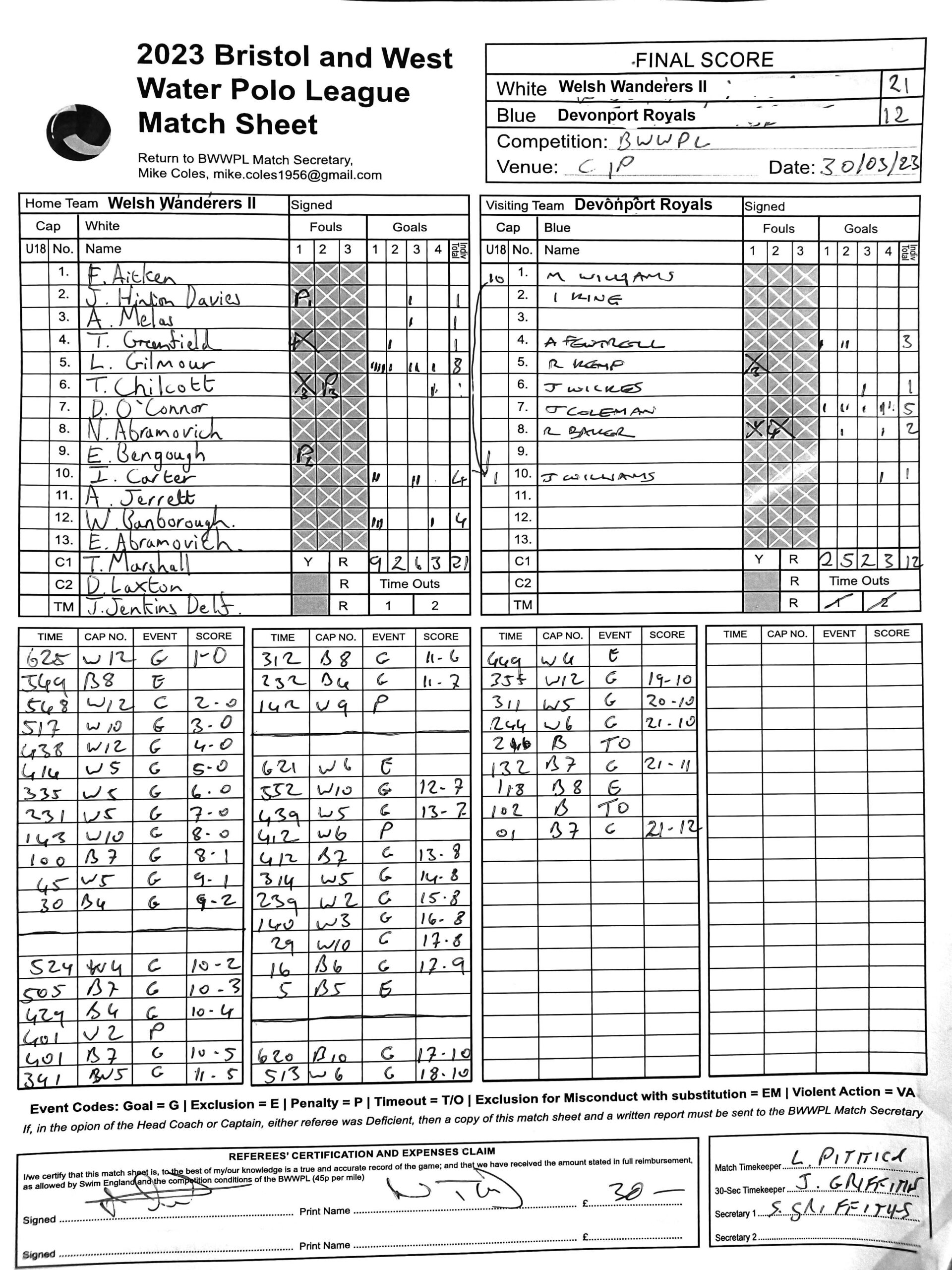 30032023 Welsh Wanderers II v Devonport D1