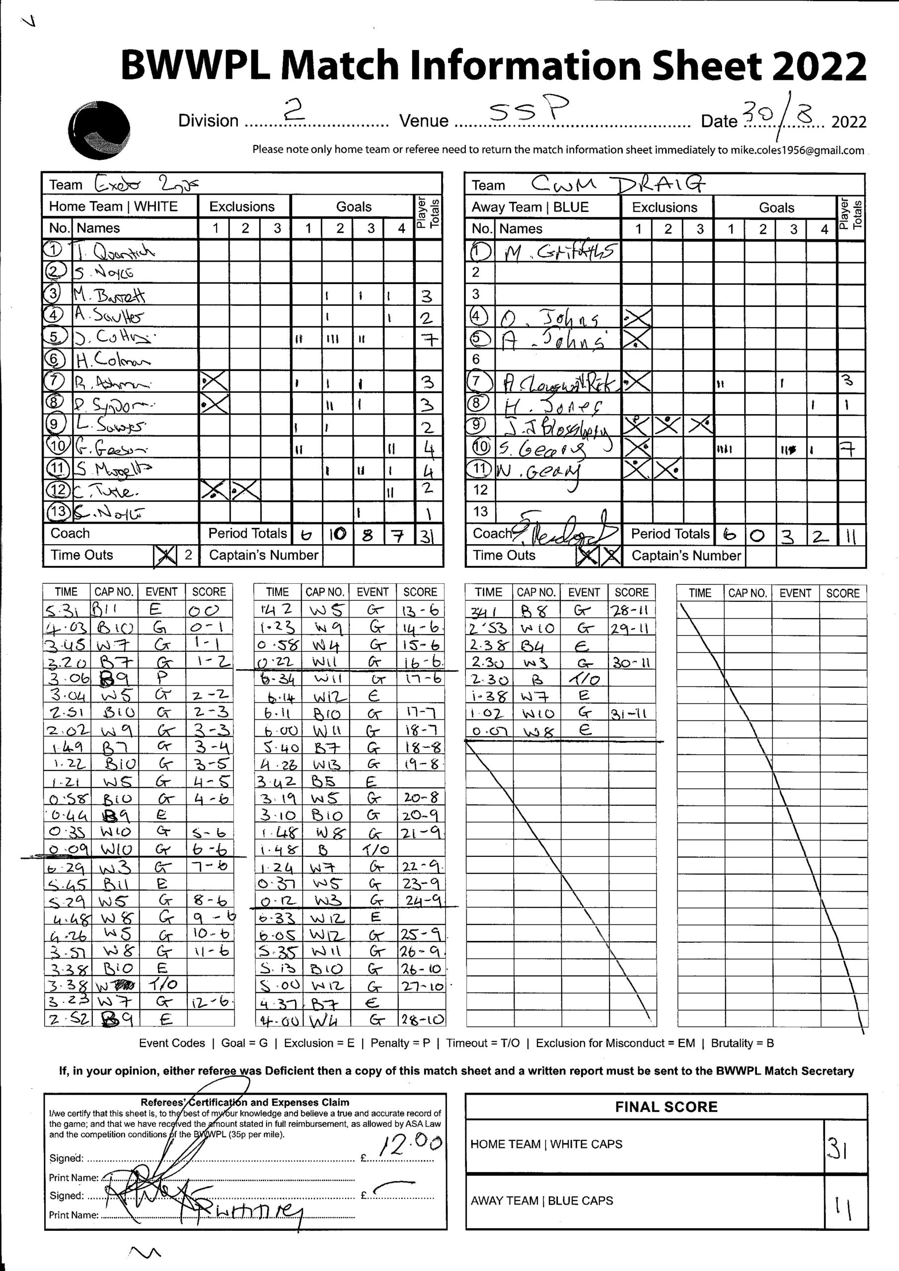 30082022 Exeter II v Cwm Draig